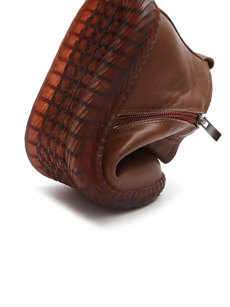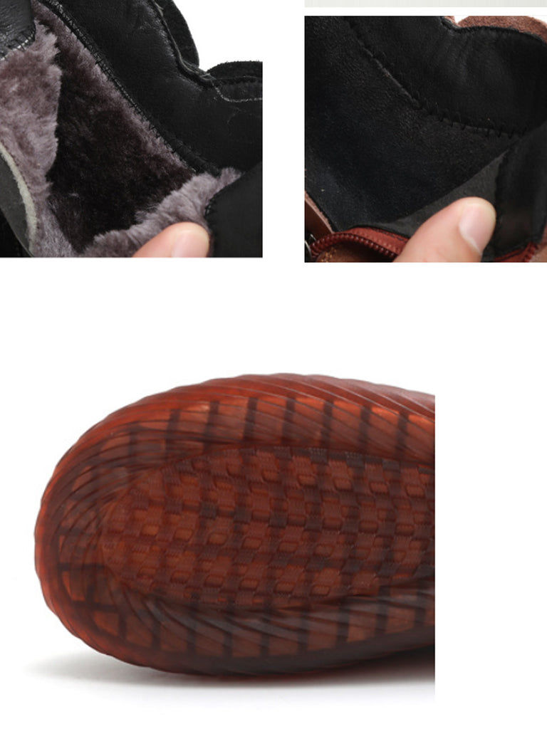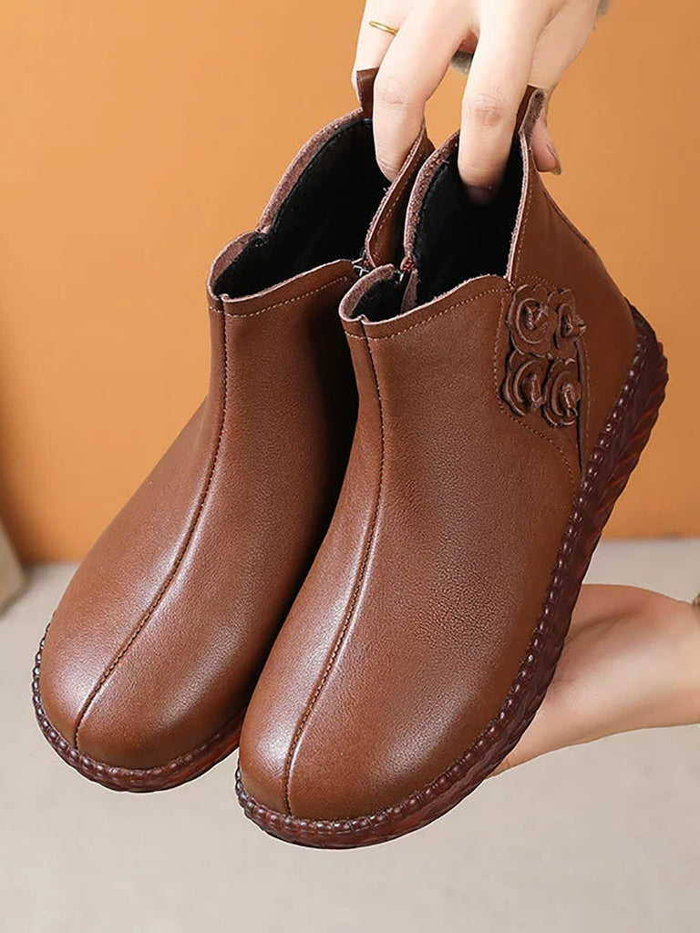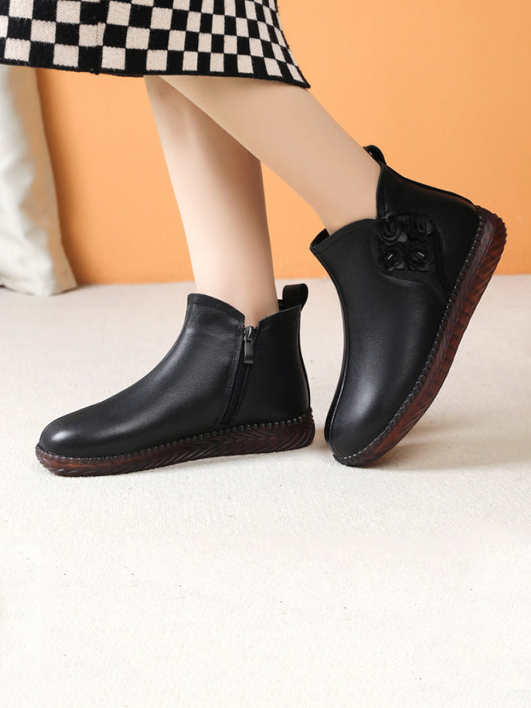 Stivali invernali da donna in pelle vintage con fodera in pile e fiori