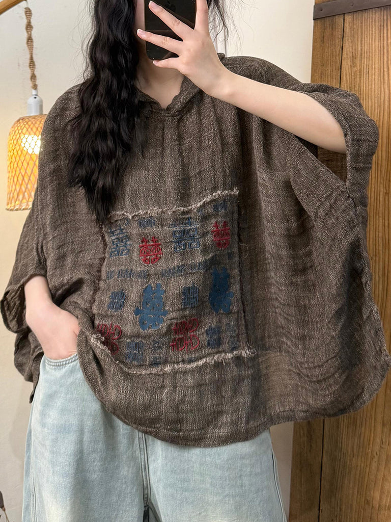 Camicia da donna in cotone 100% con ricamo autunnale artistico