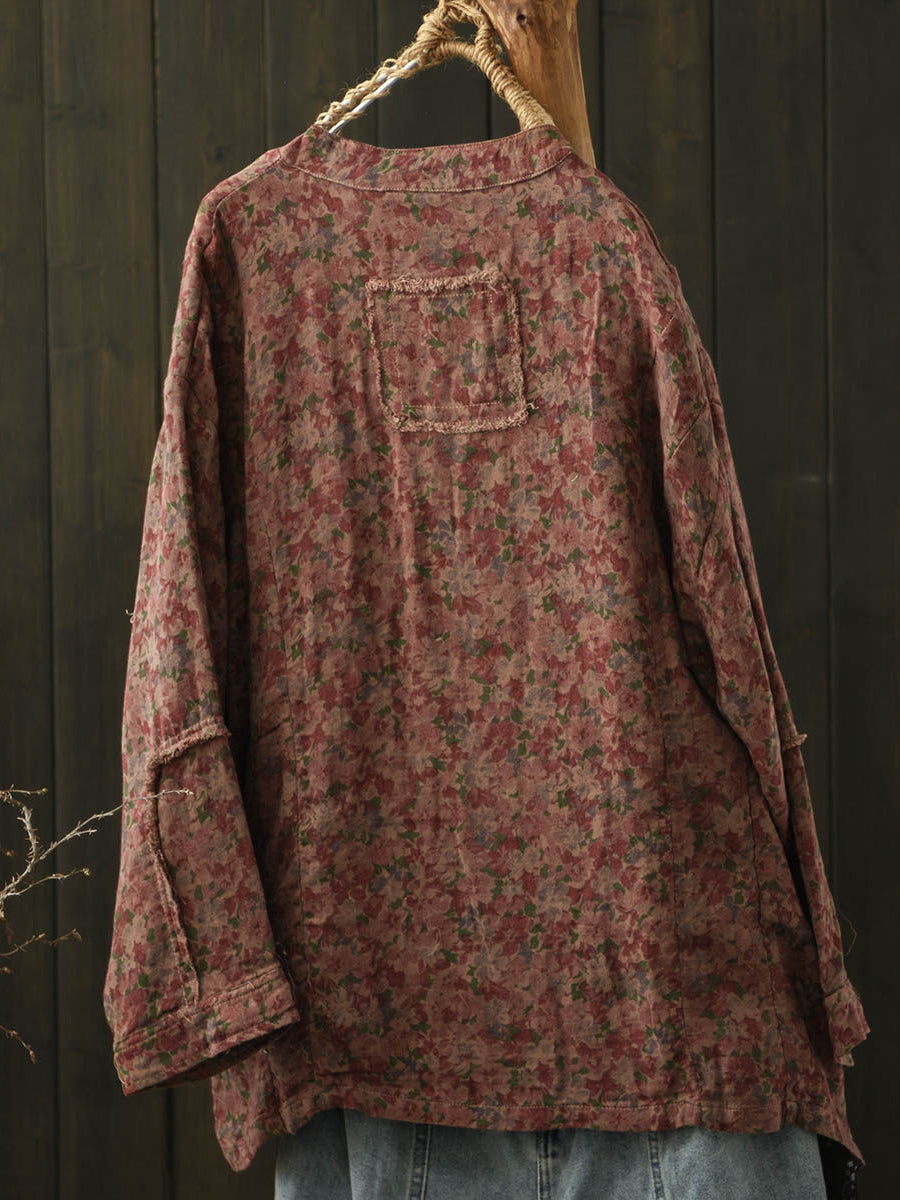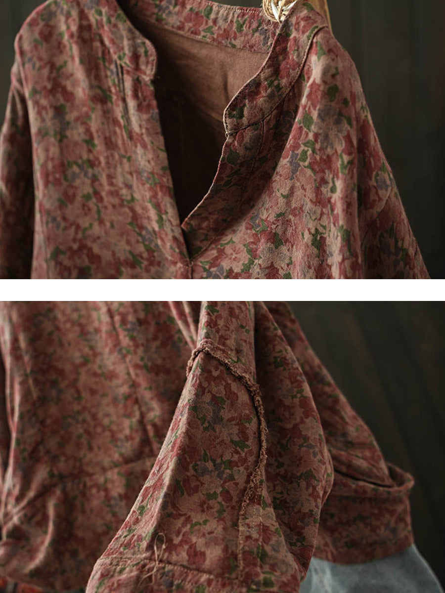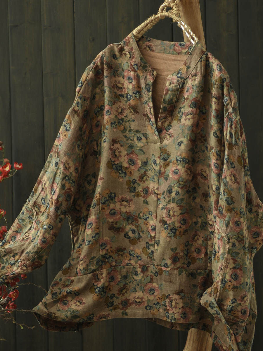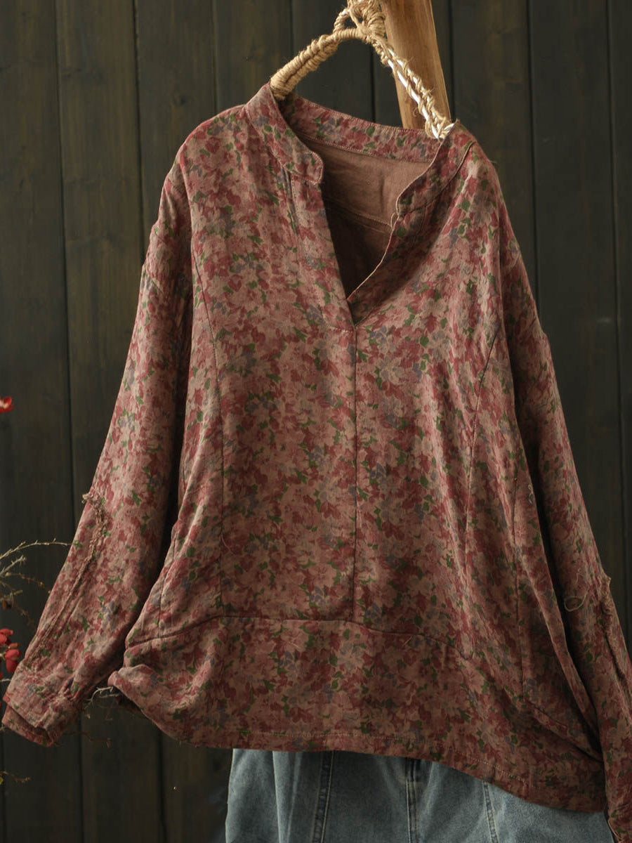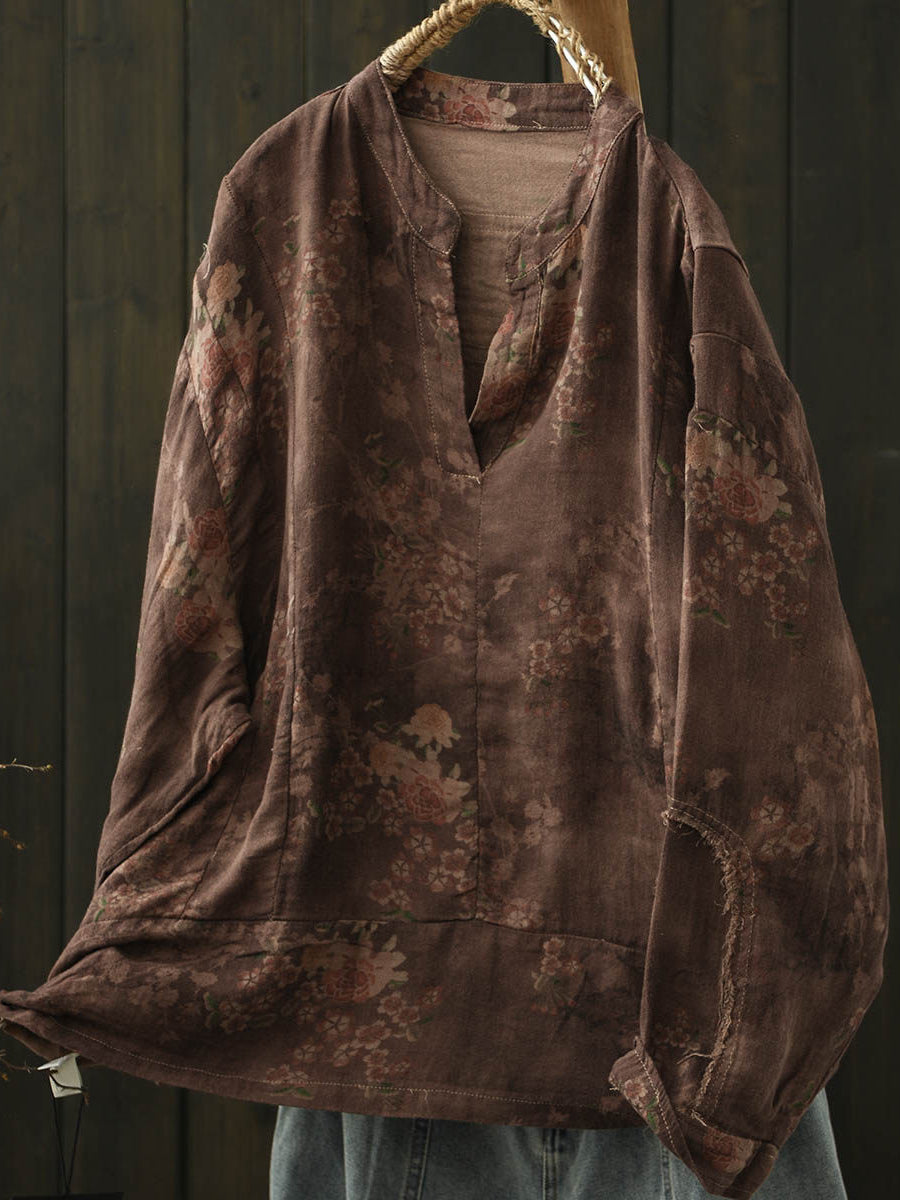 Camicetta da donna in cotone con scollo a V e motivo floreale autunnale