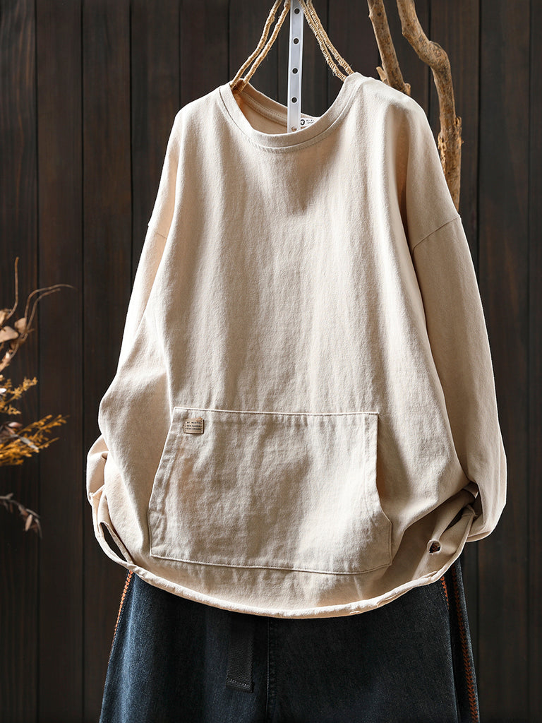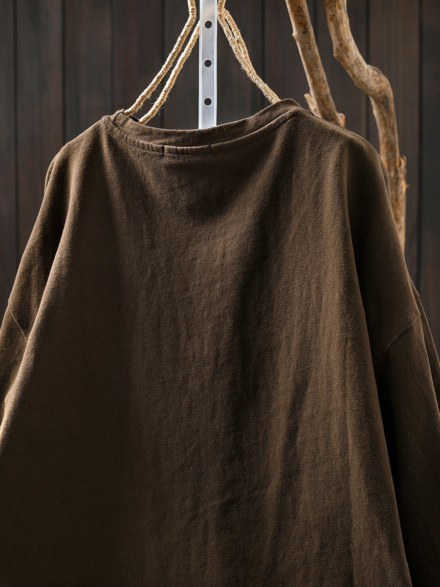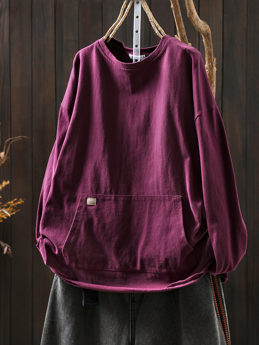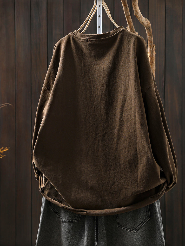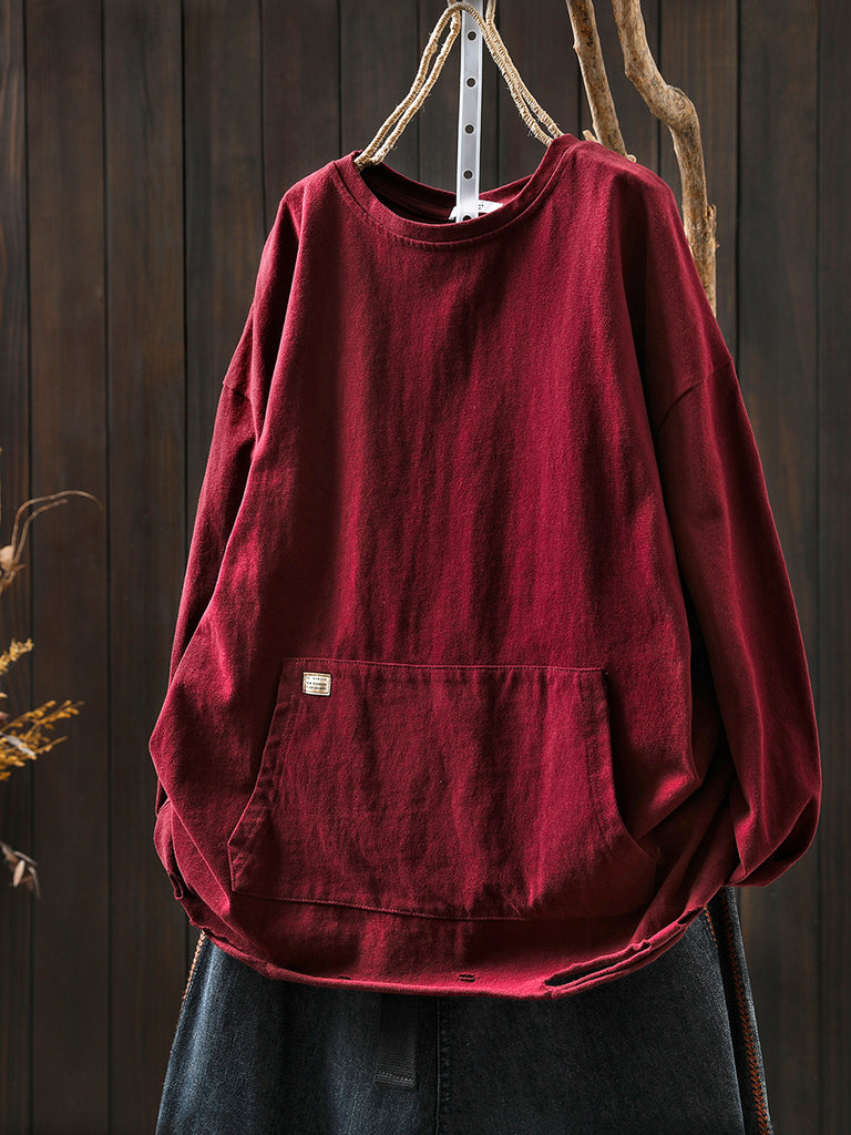 Blusa casual autunnale da donna con scollo a V e colori puri