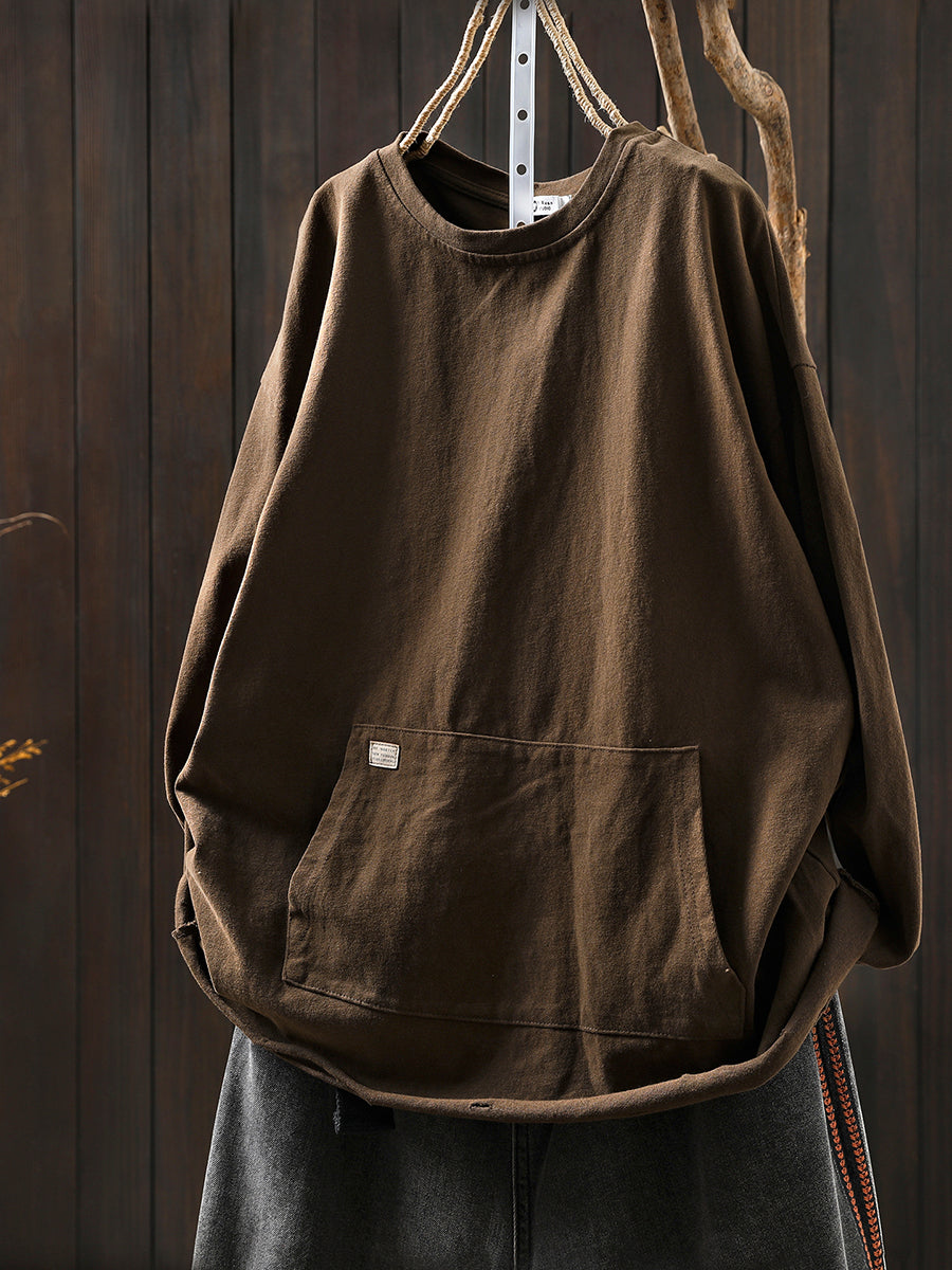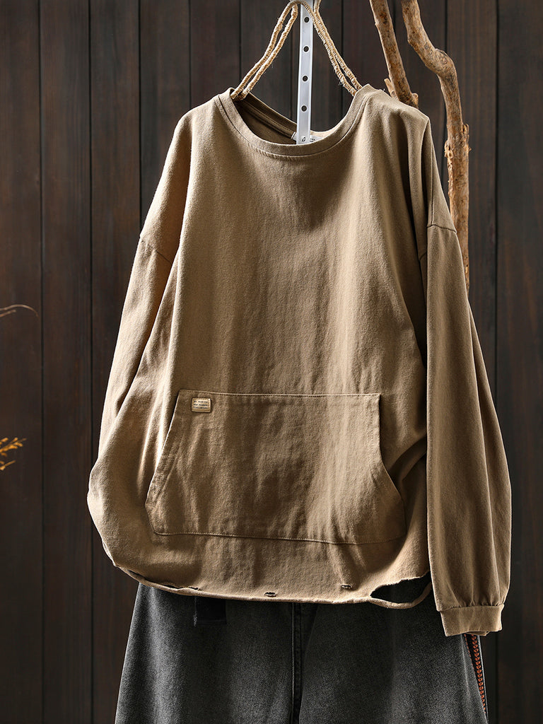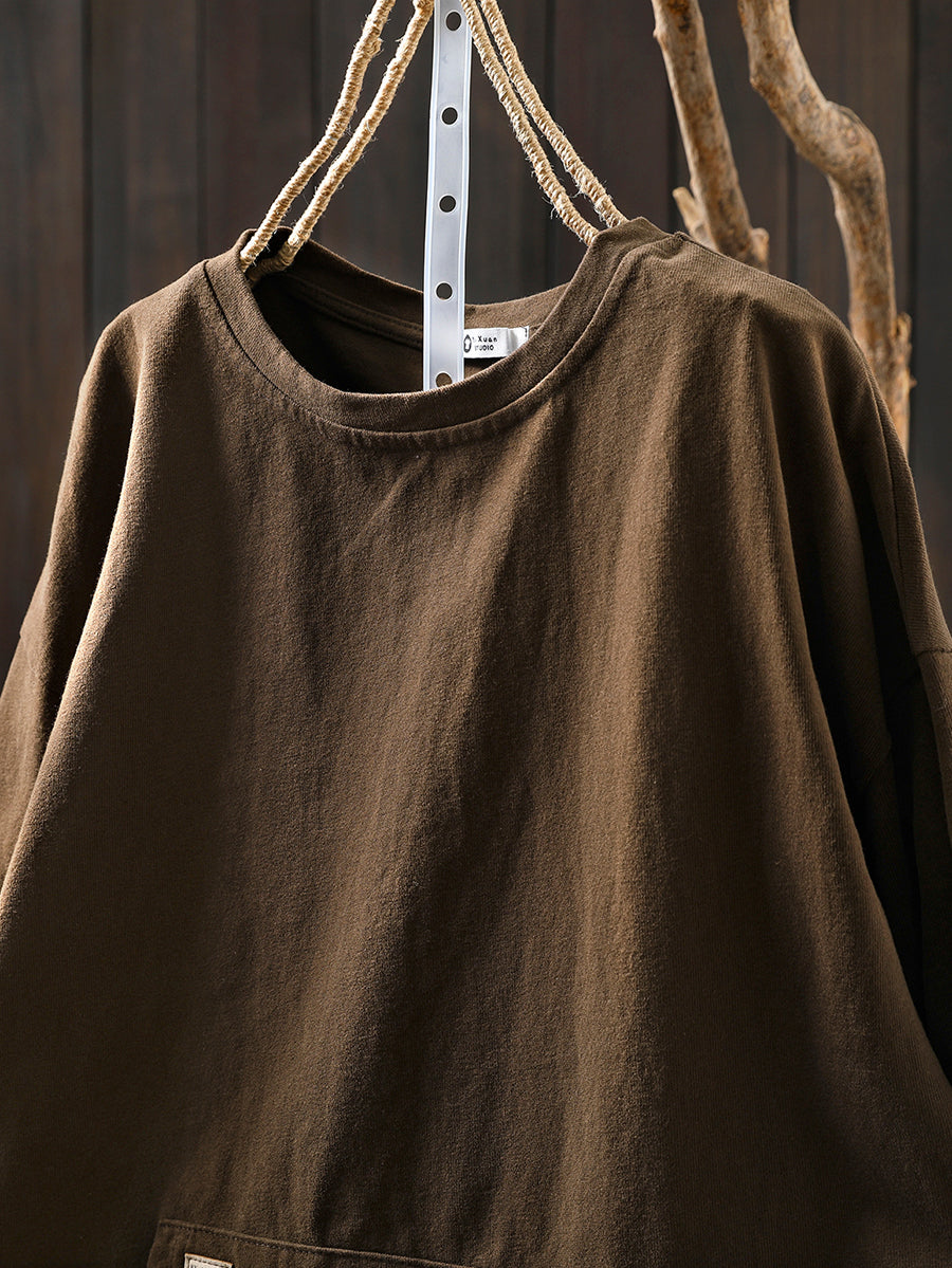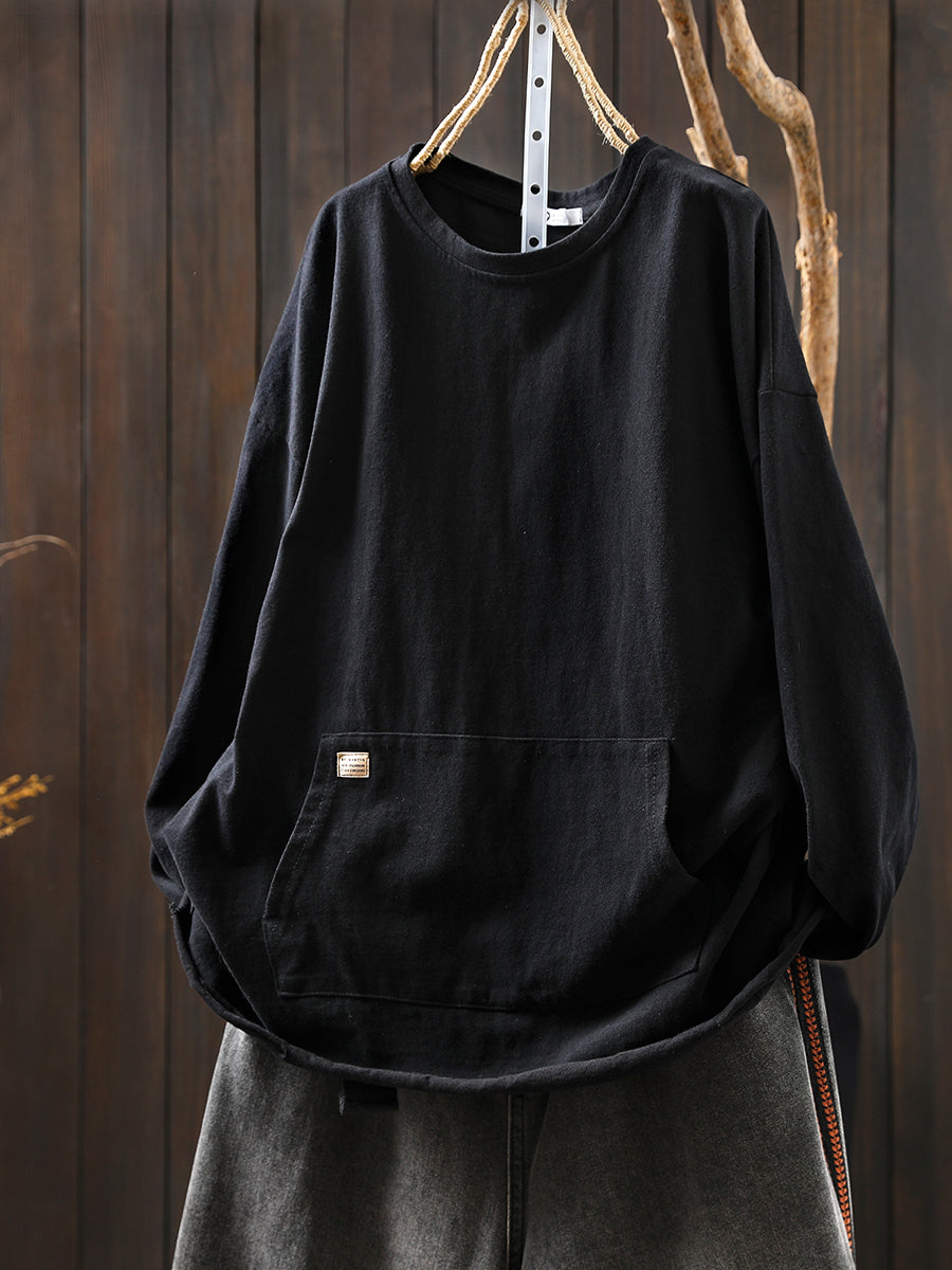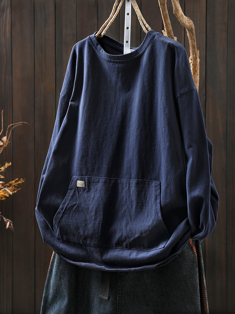 Blusa casual autunnale da donna con scollo a V e colori puri