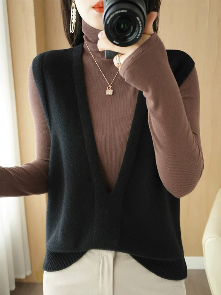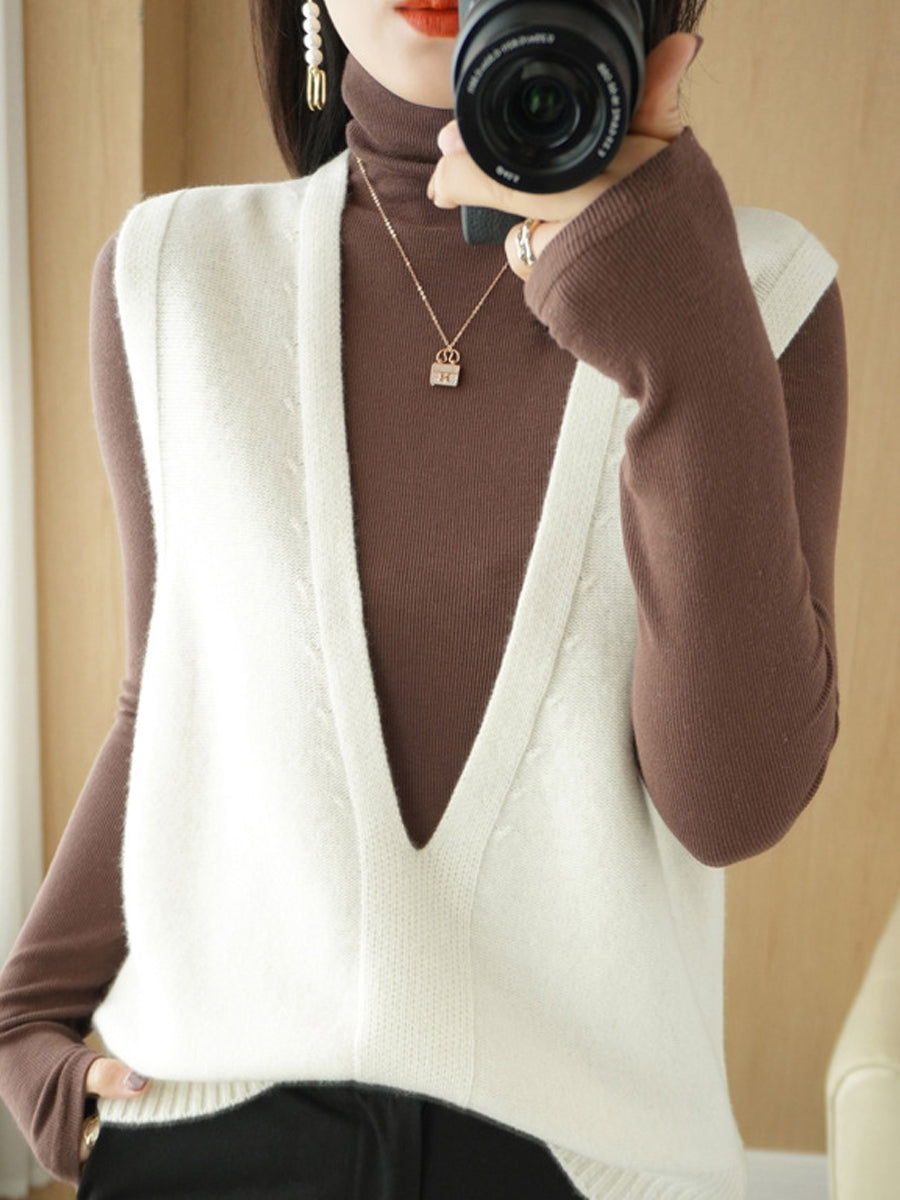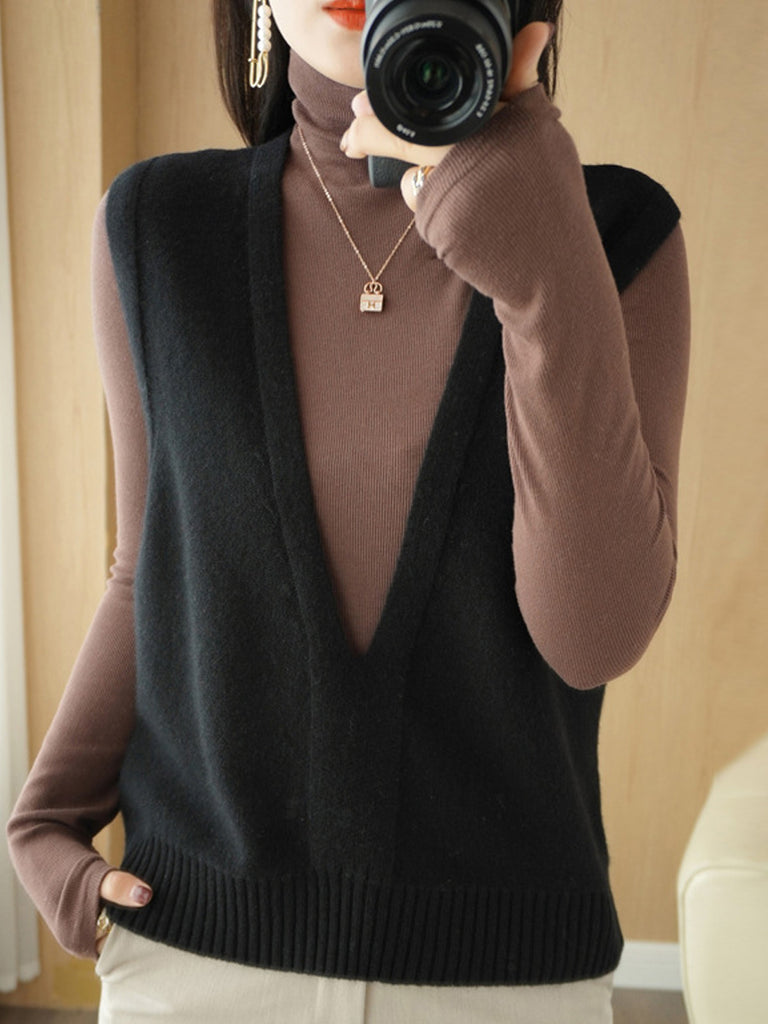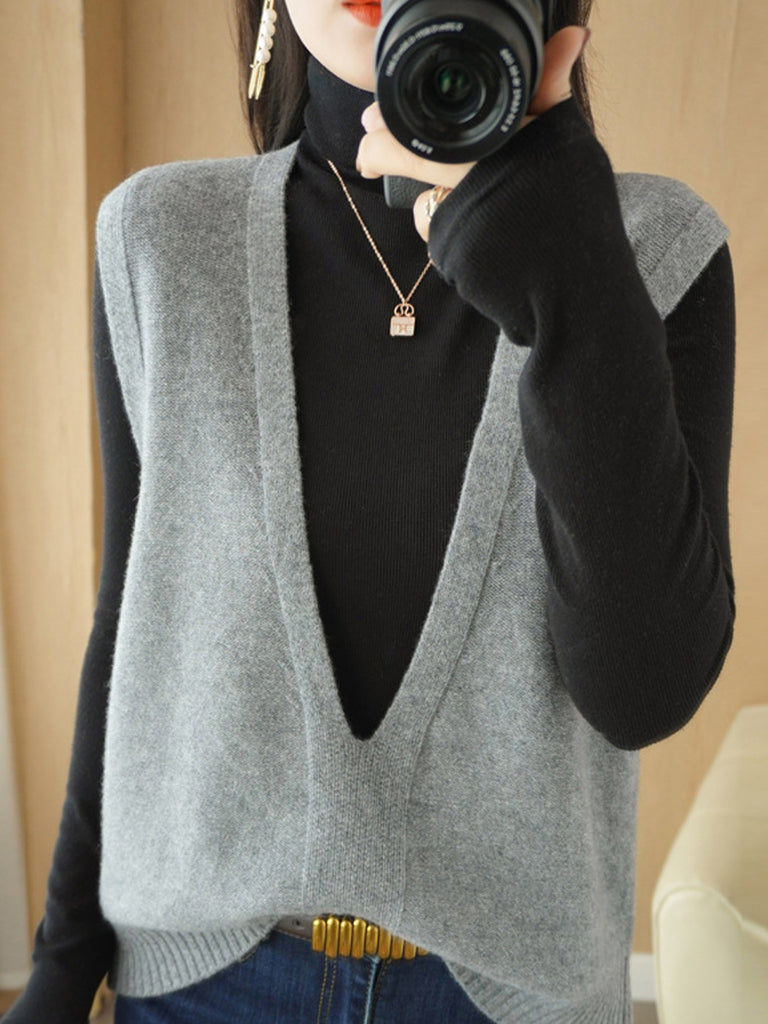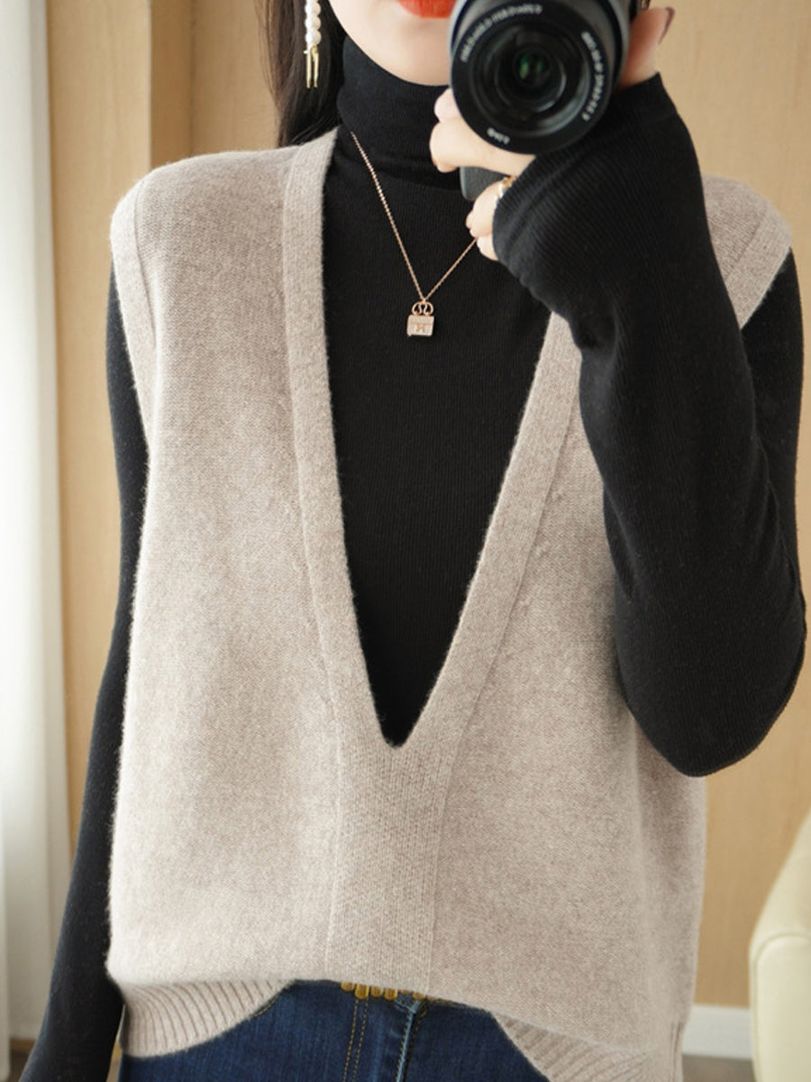 Gilet lavorato a maglia con scollo a V, casual, autunnale, da donna, in tinta unita