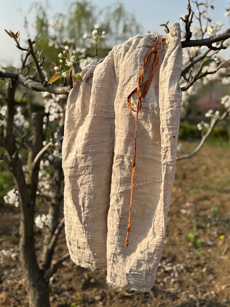 Pantaloni a gamba larga estivi da donna in 100% lino, colore puro