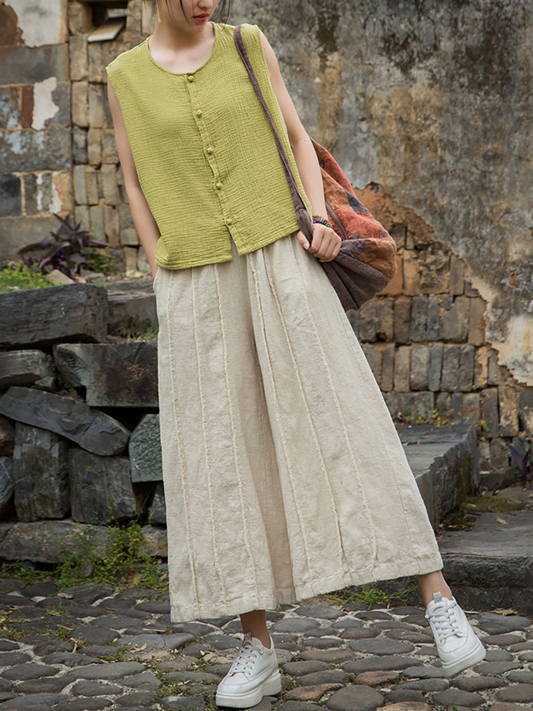 Pantaloni a gamba larga in ramia con bordo grezzo, da donna, estivi