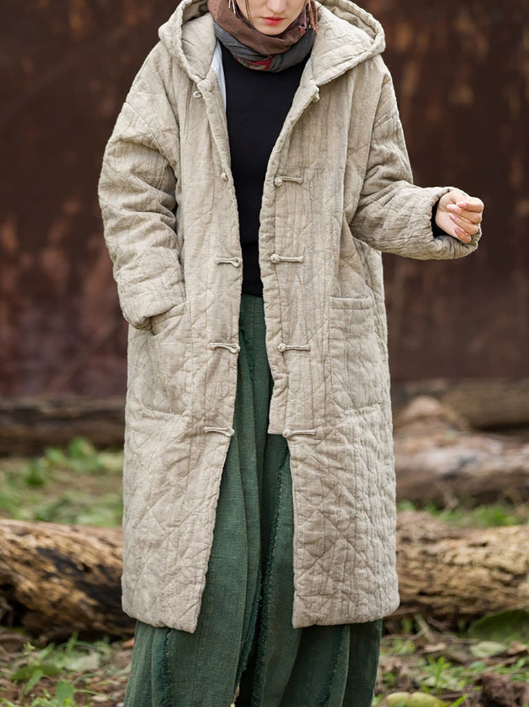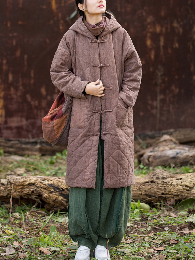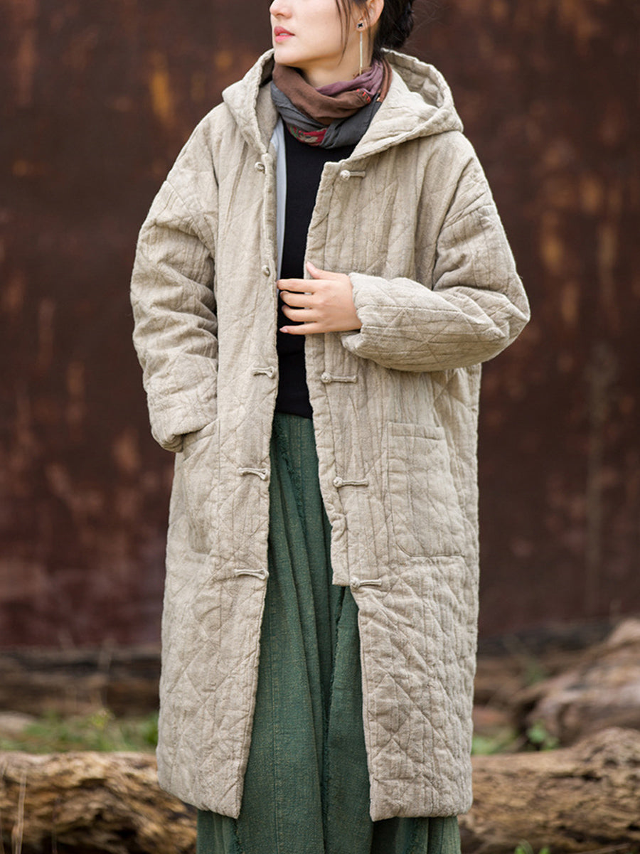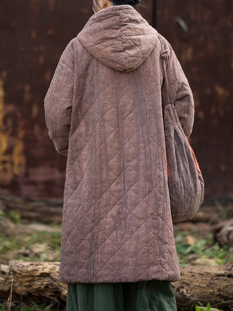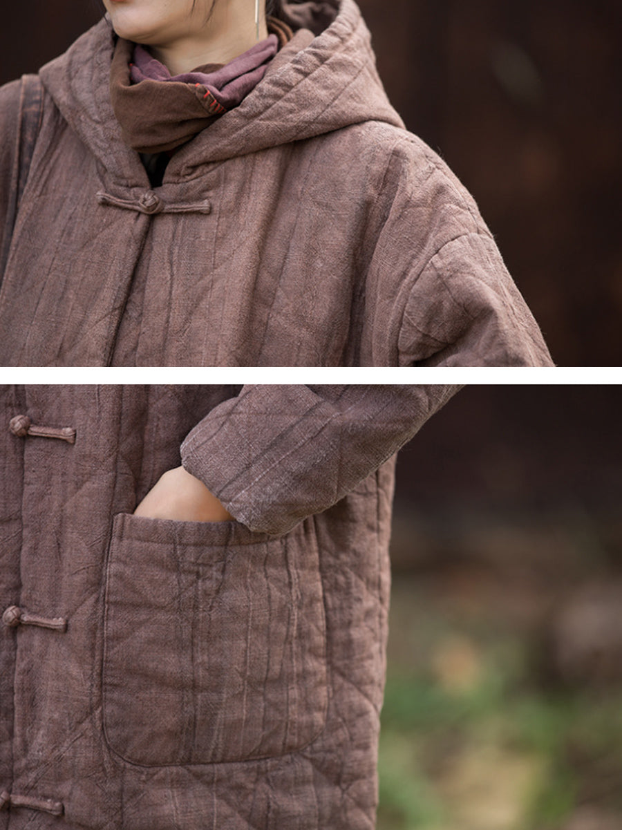 Cappotto invernale da donna in puro cotone con cappuccio e imbottitura in ramia