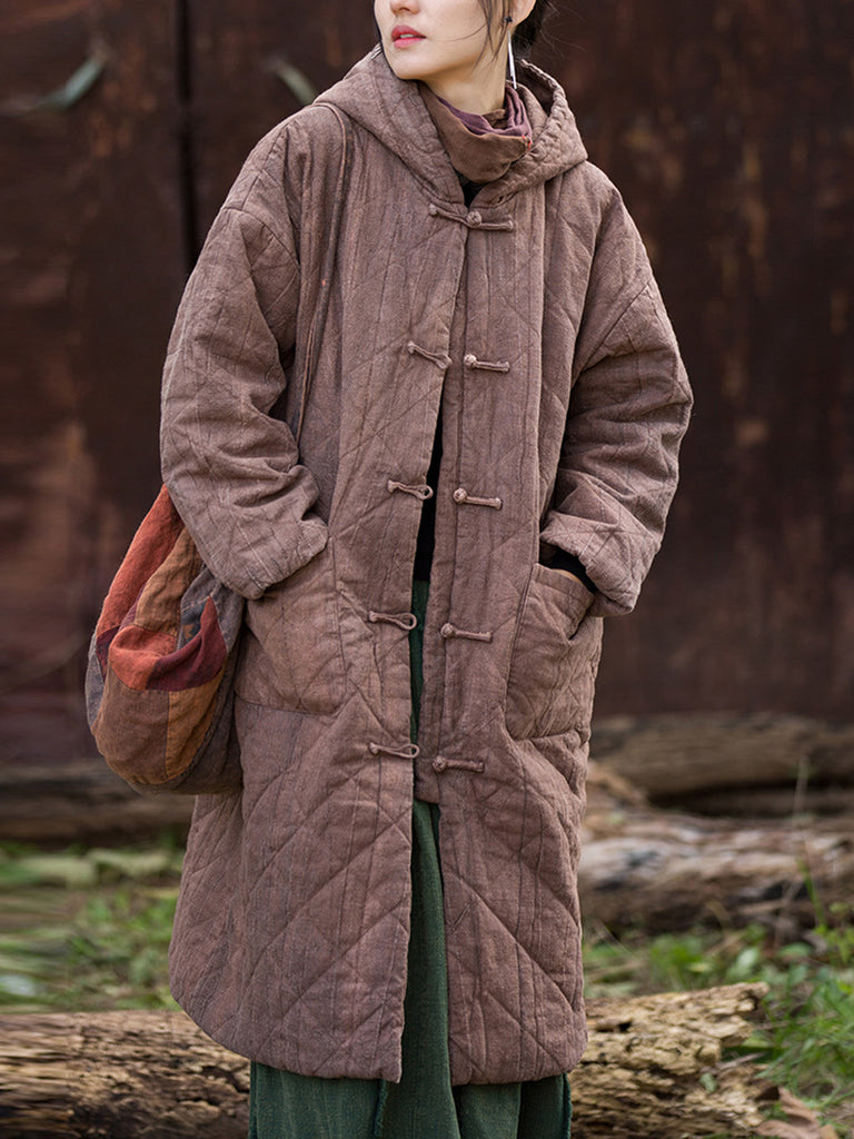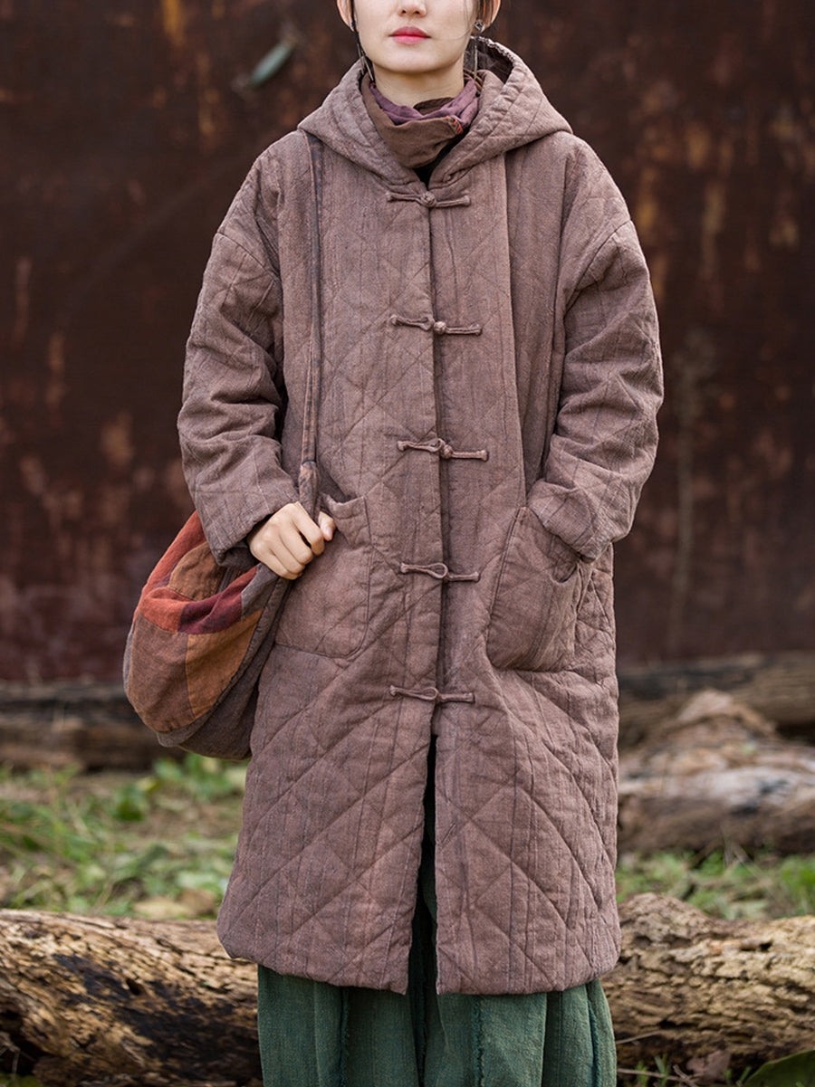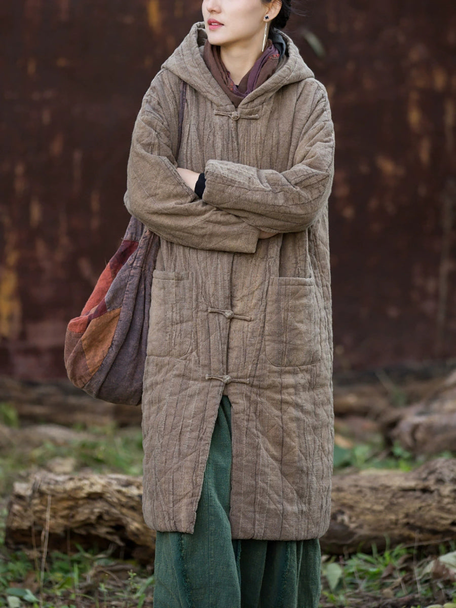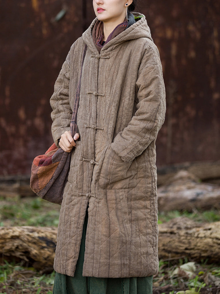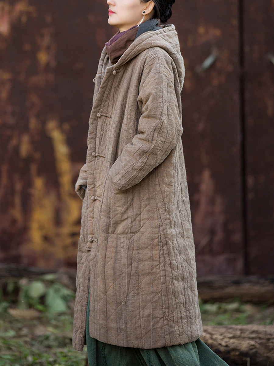 Cappotto invernale da donna in puro cotone con cappuccio e imbottitura in ramia