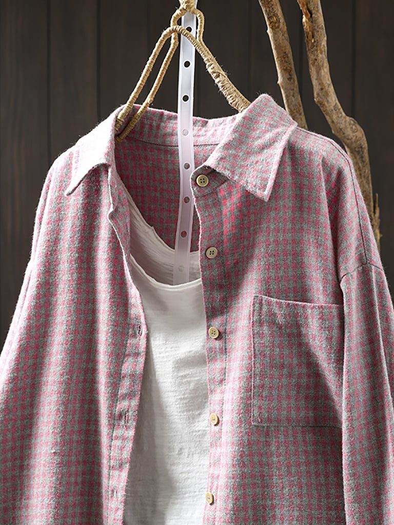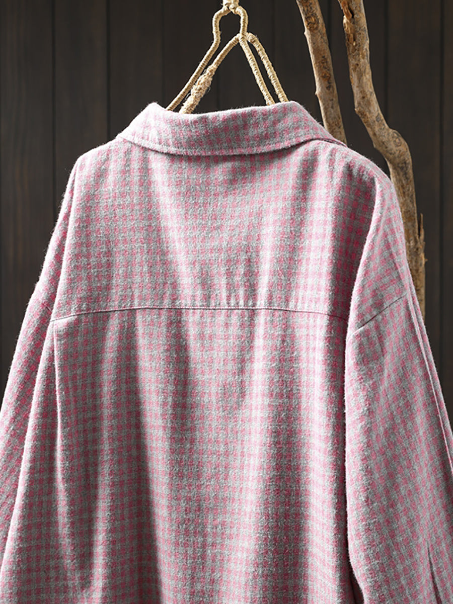 Camicia da donna autunnale a quadri con colletto rovesciato, 100% cotone