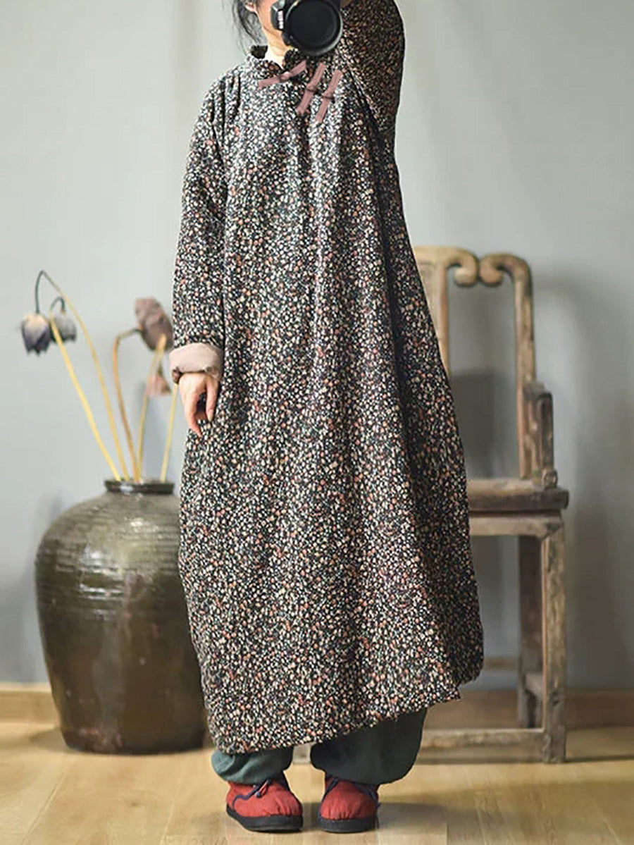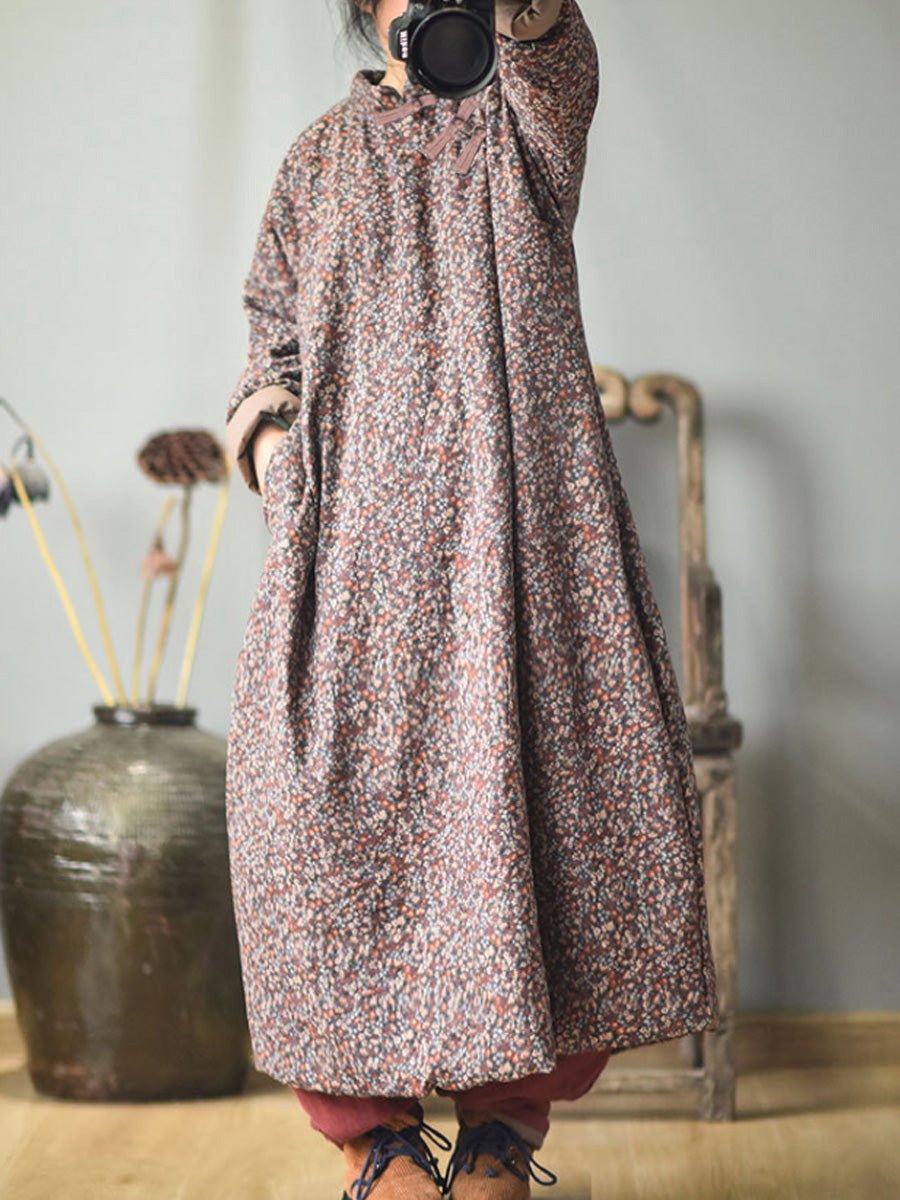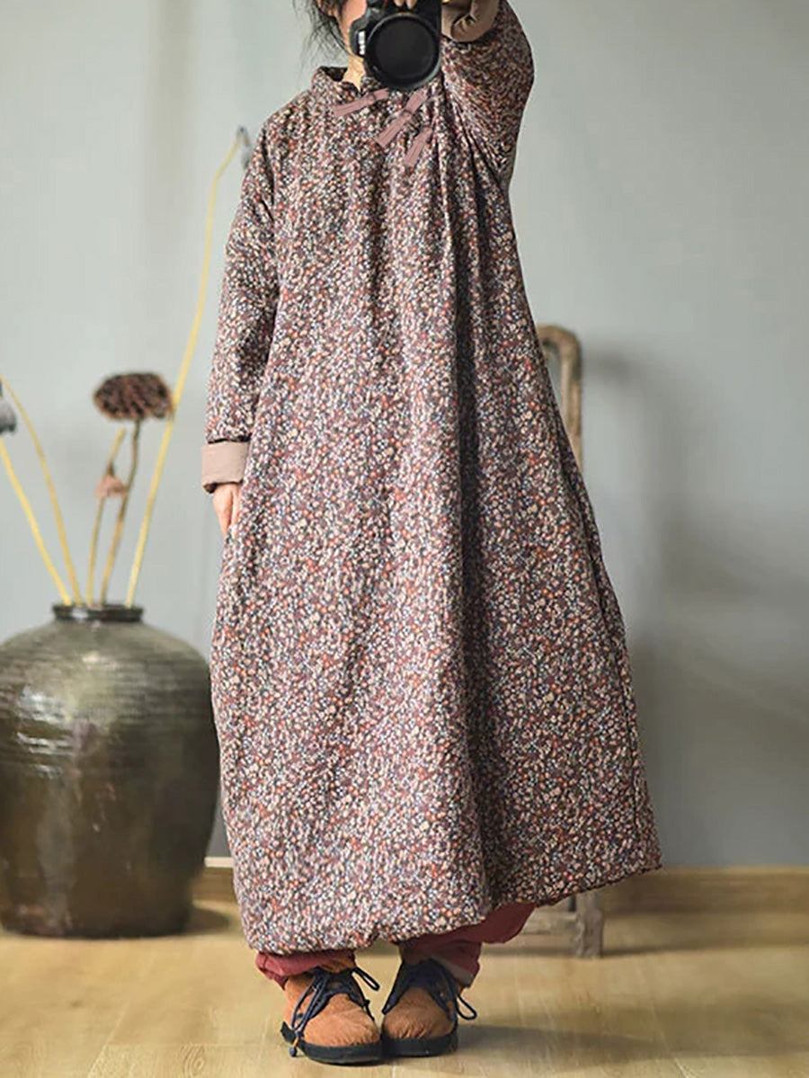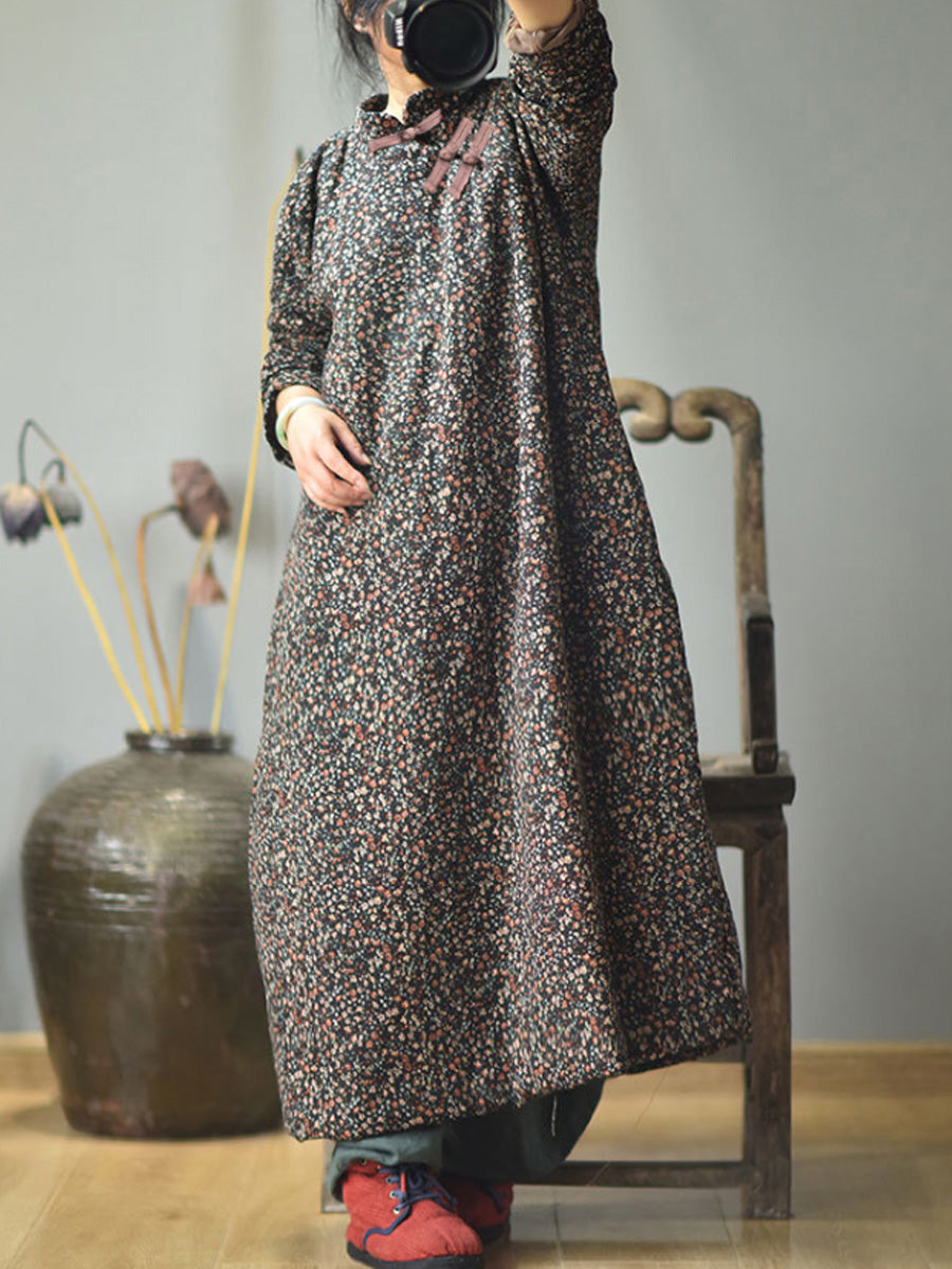 Taglie forti - Abito da donna in cotone floreale ampio autunno