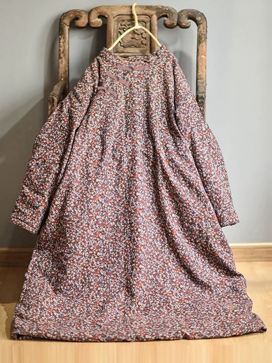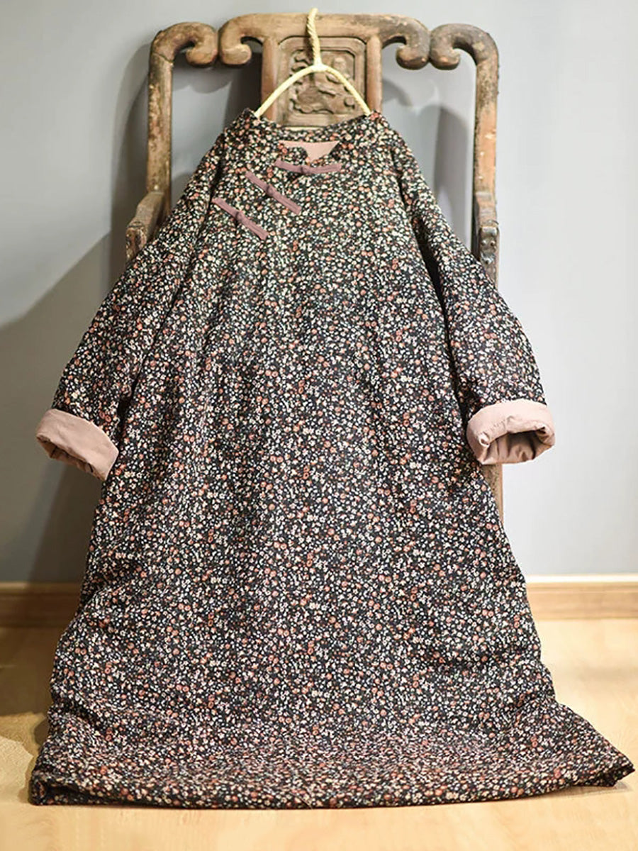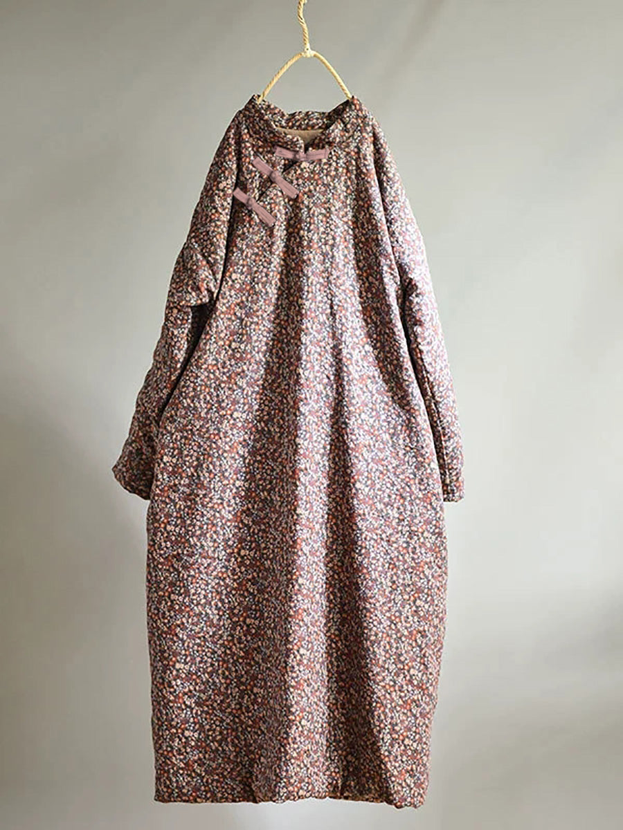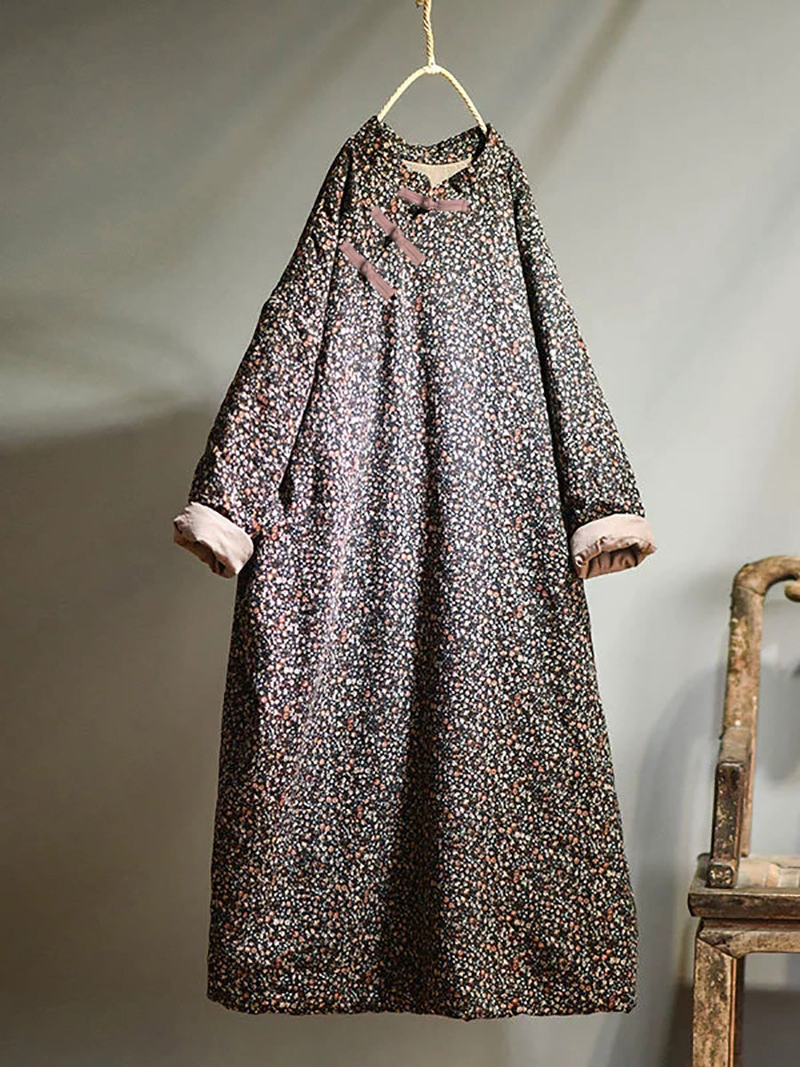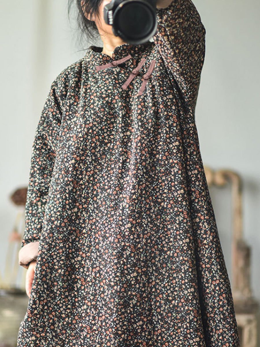 Taglie forti - Abito da donna in cotone floreale ampio autunno