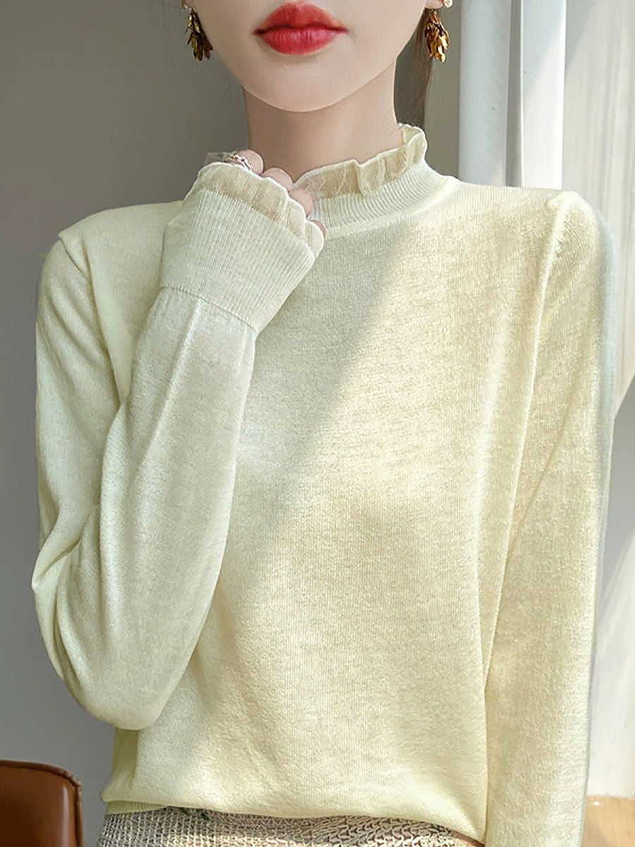 Maglione invernale da donna con colletto in pizzo color puro e artistico
