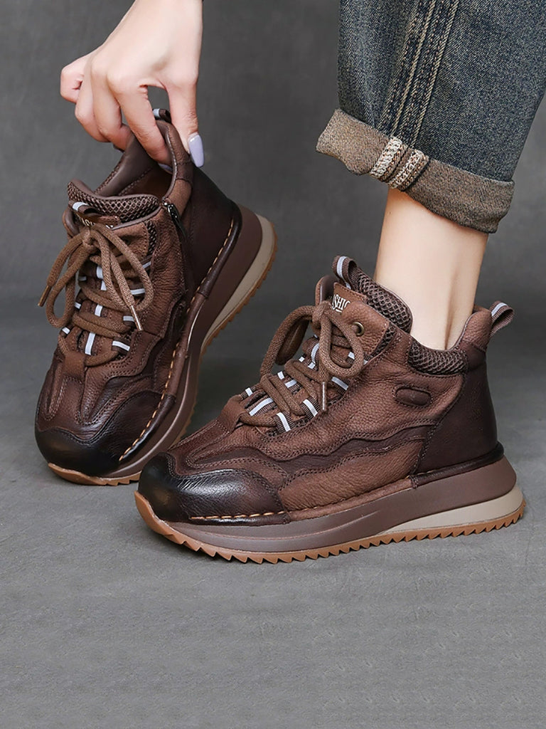 Stivali da donna vintage in vera pelle con fodera in pile e plateau