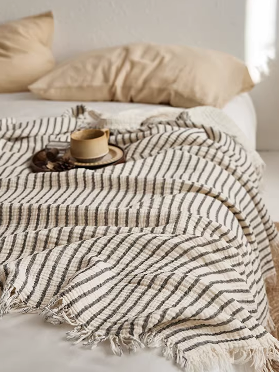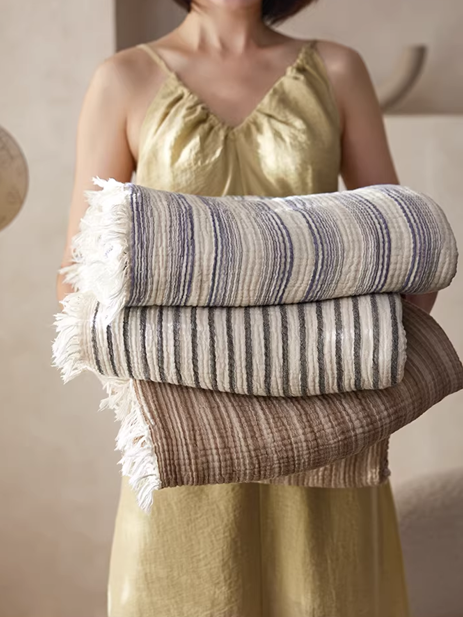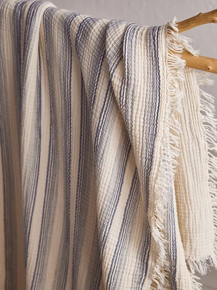 Coperta a righe in garza tinta in filo