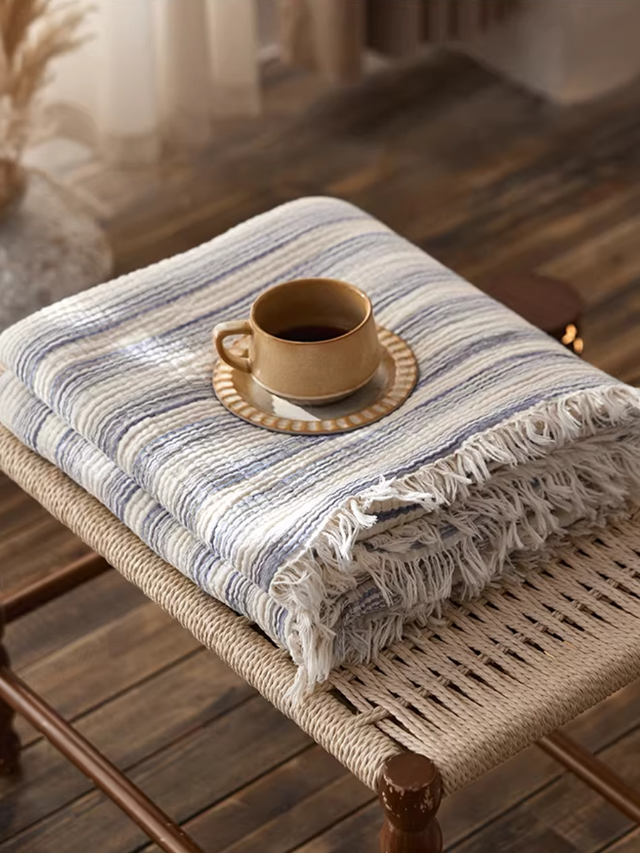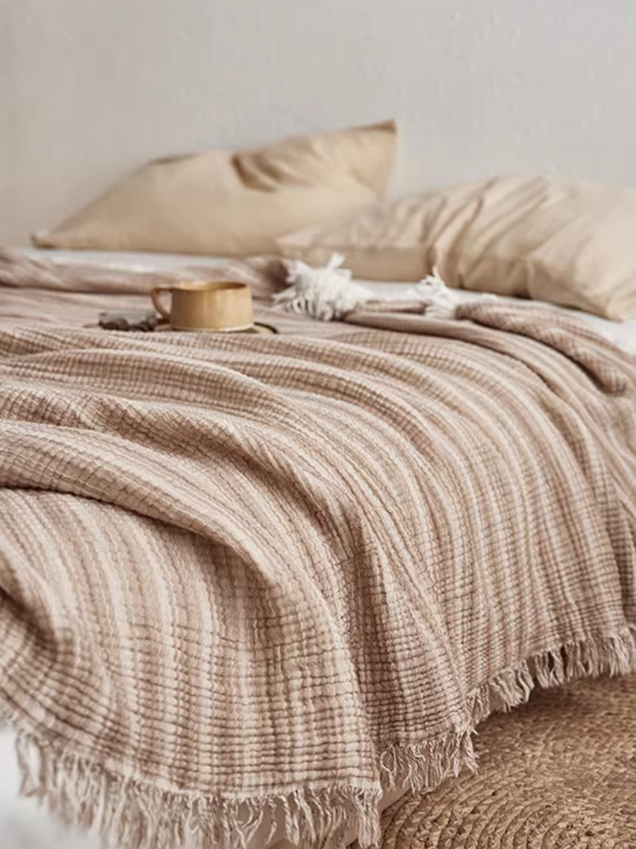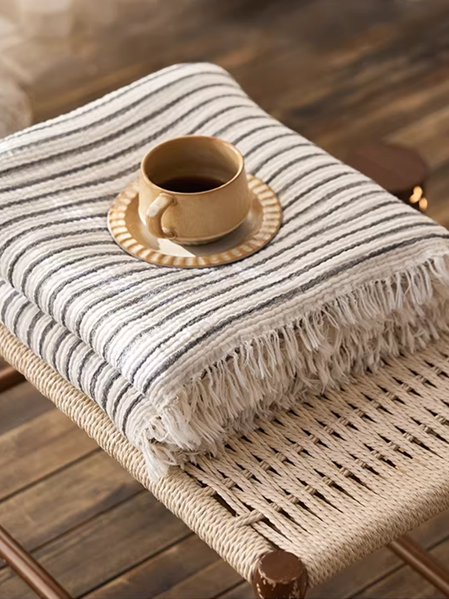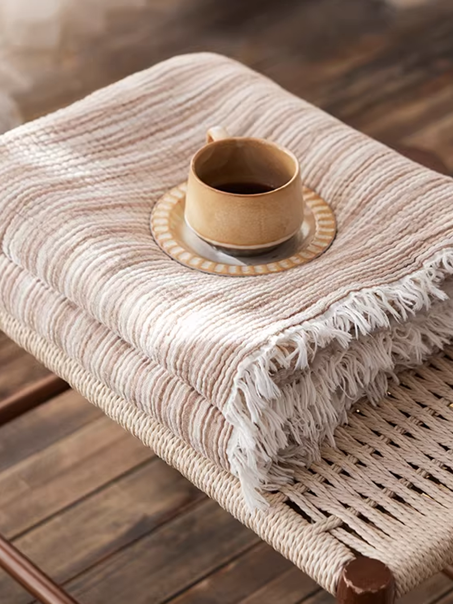 Coperta a righe in garza tinta in filo