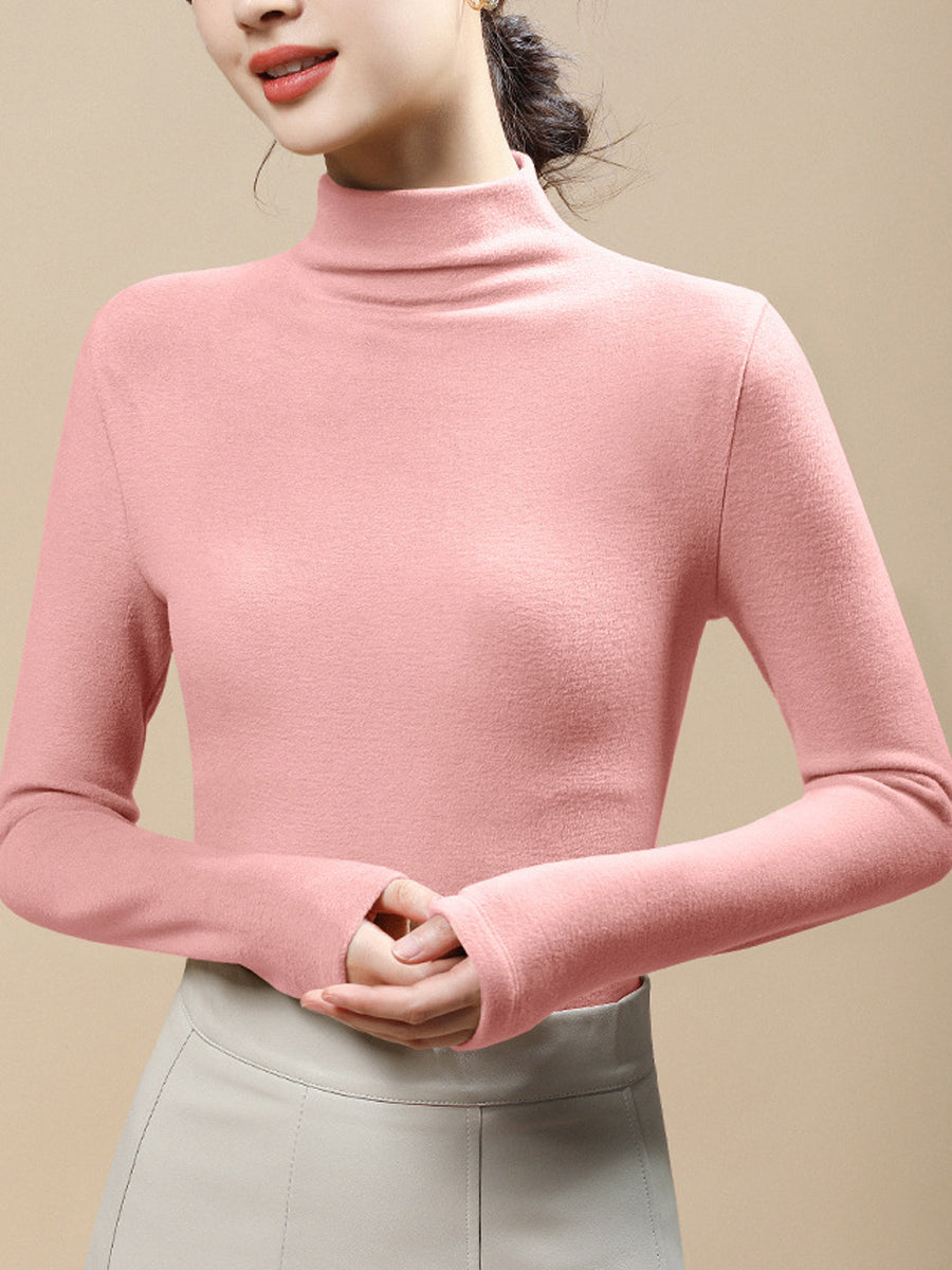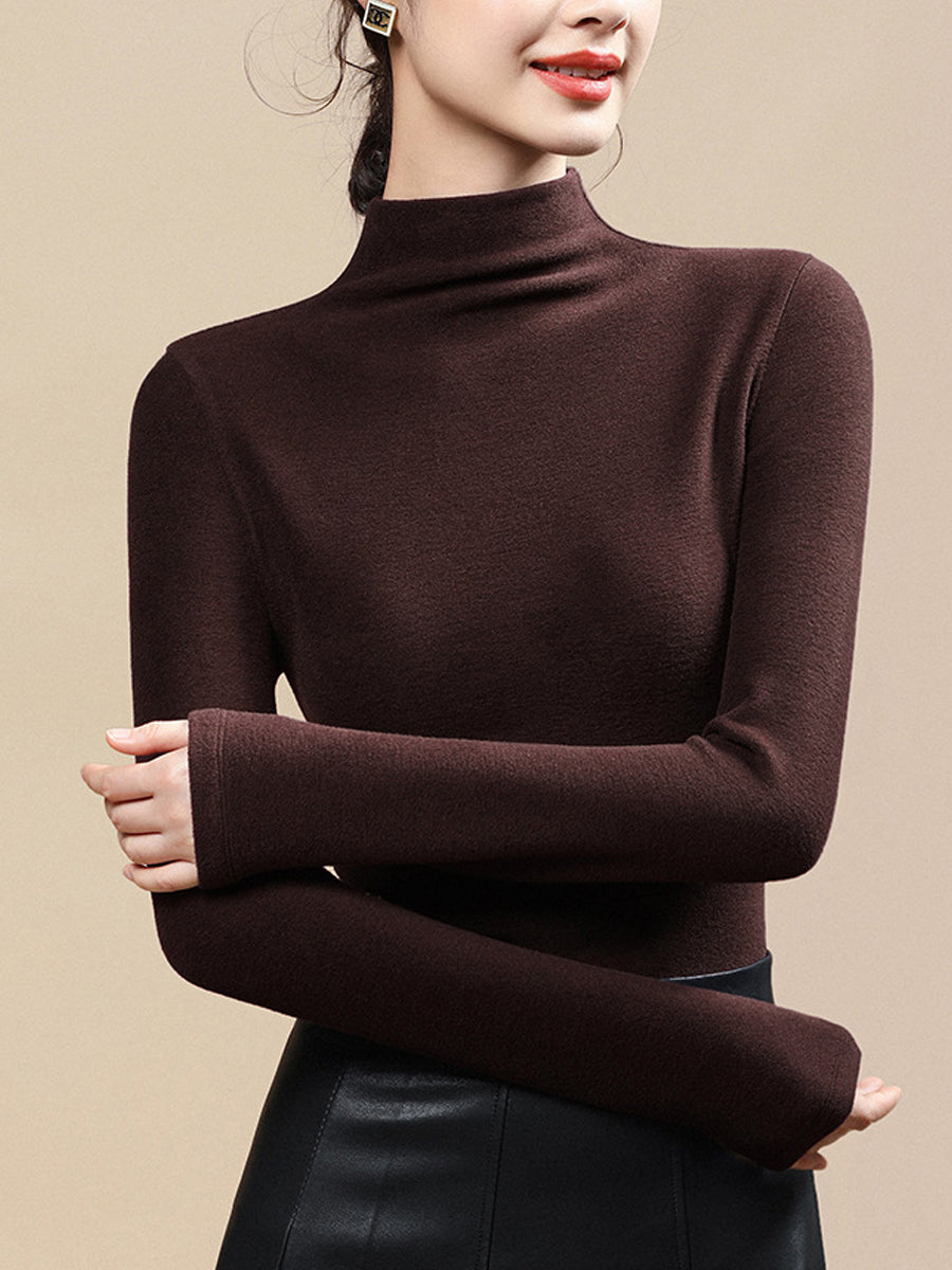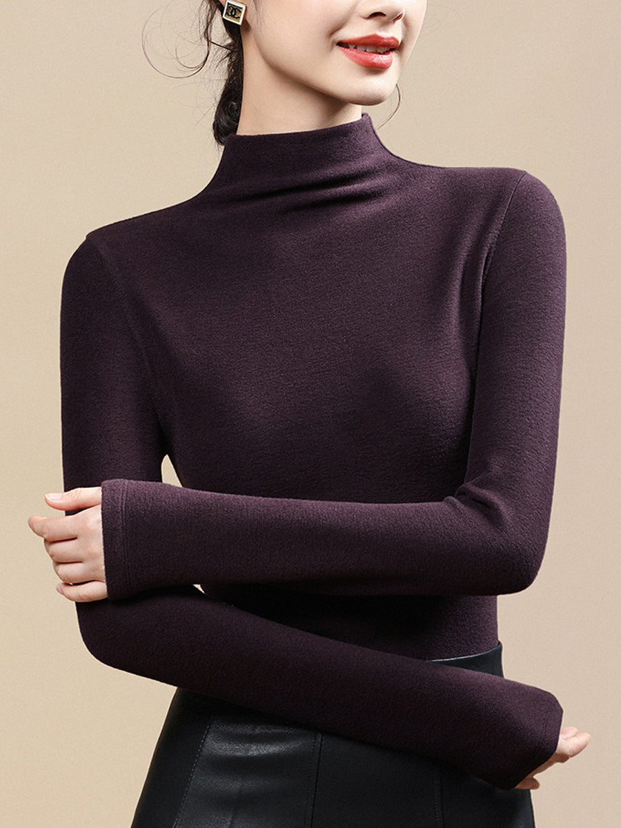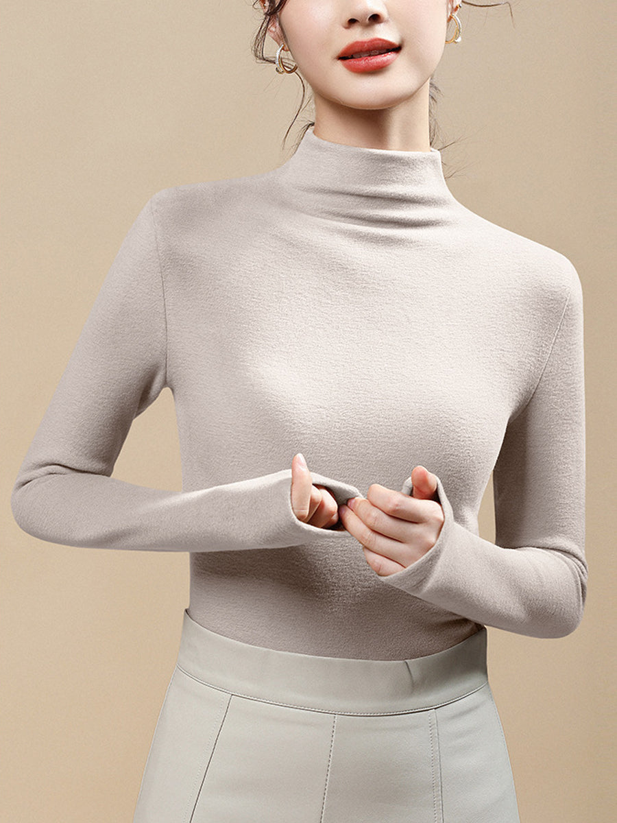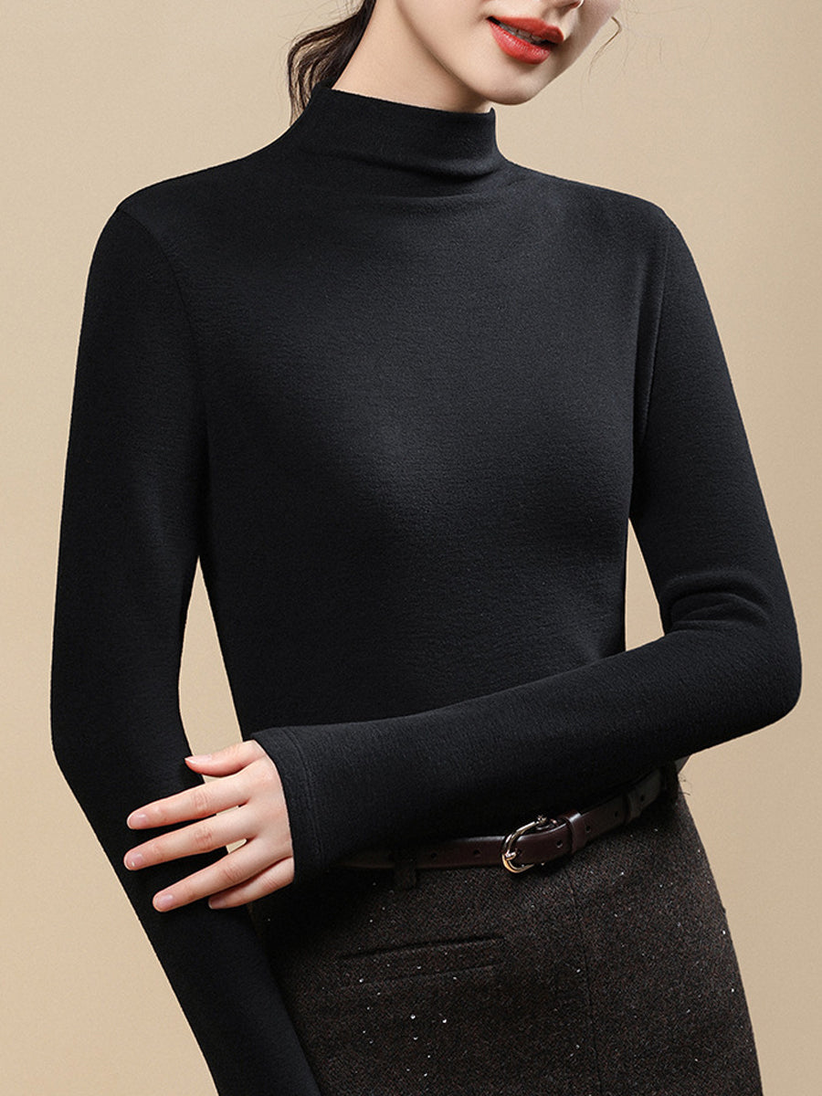 Blusa casual da donna a collo alto, colore puro, autunnale