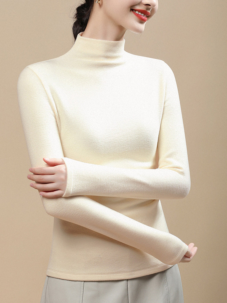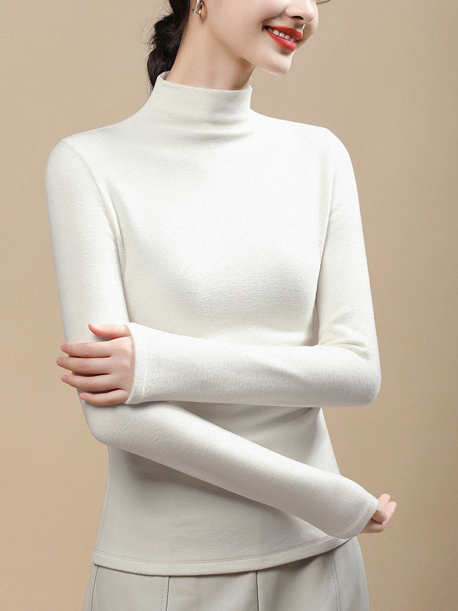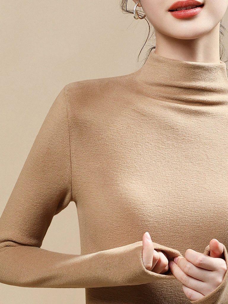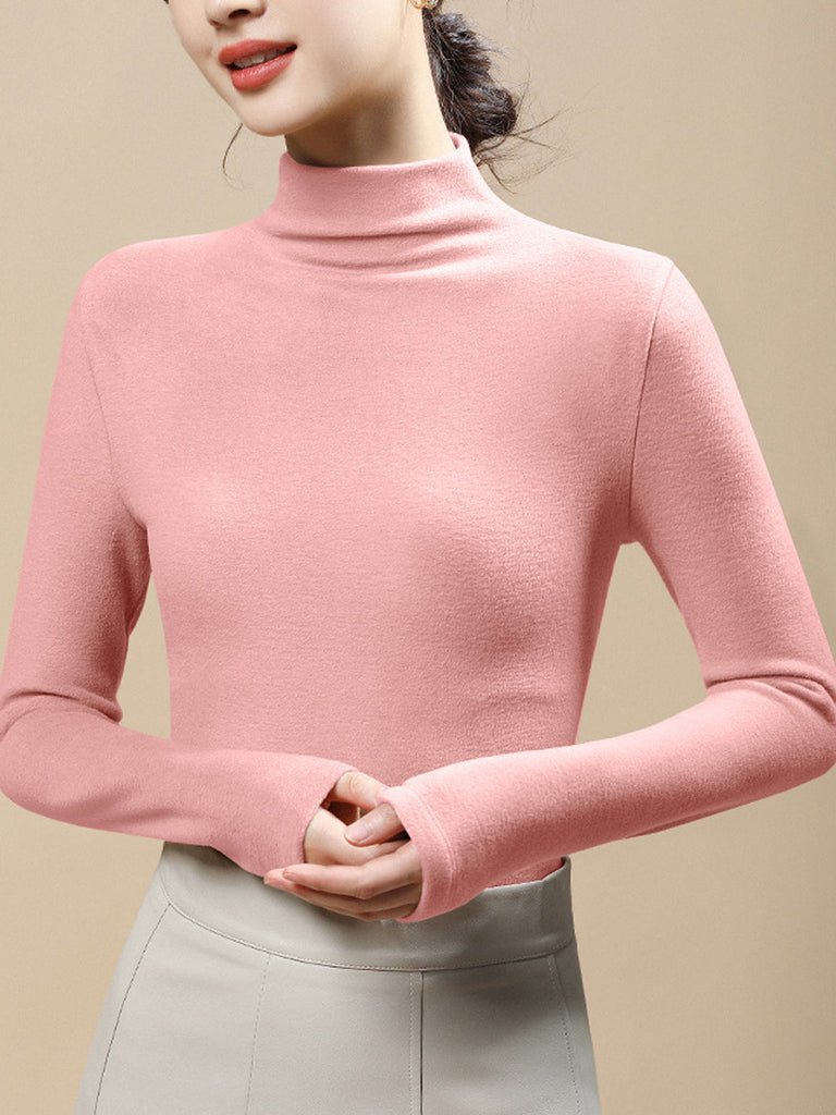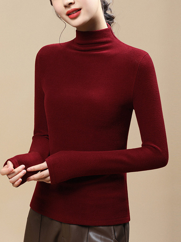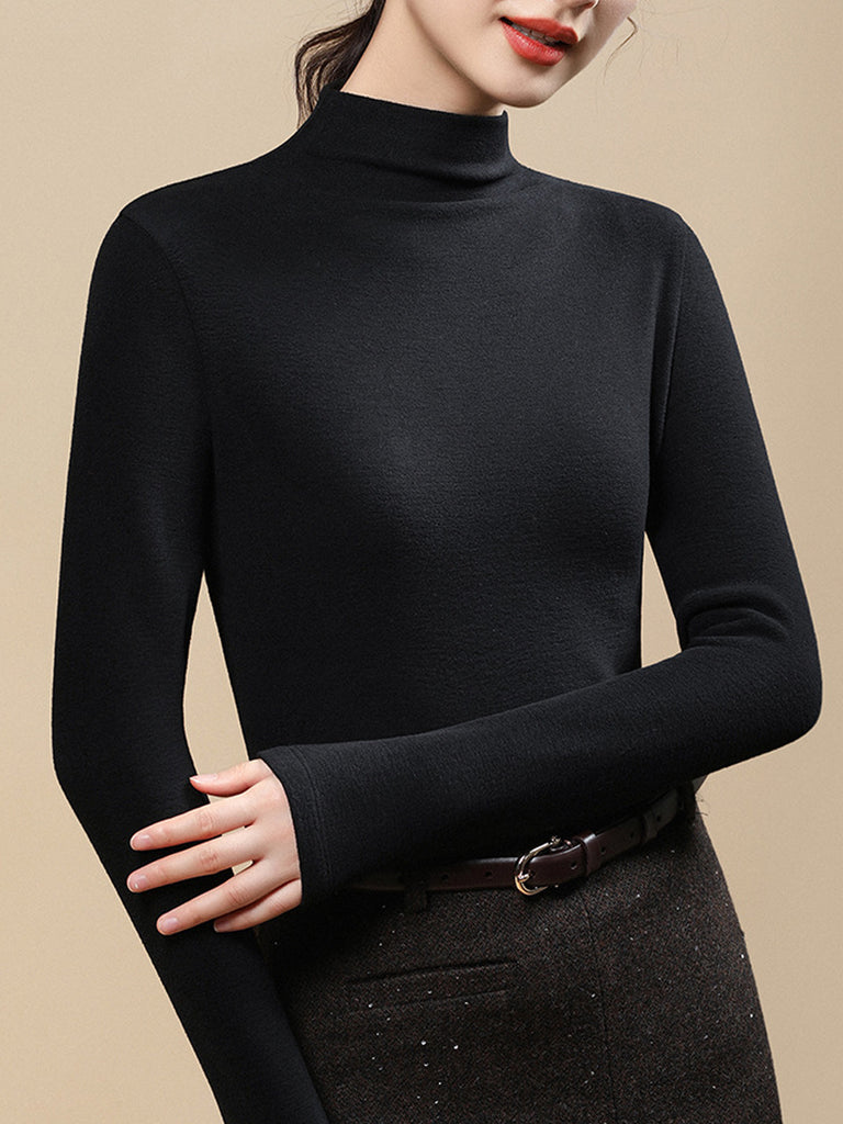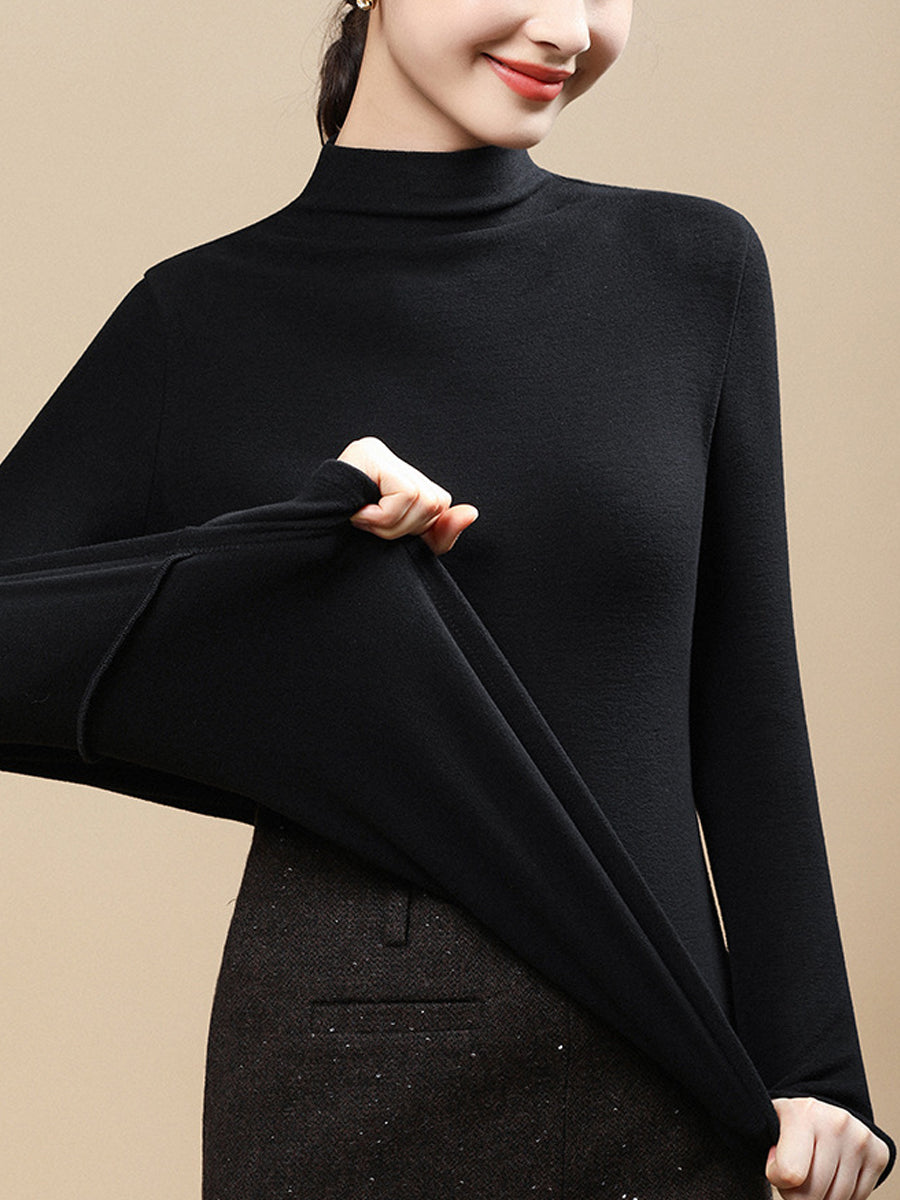 Blusa casual da donna a collo alto, colore puro, autunnale