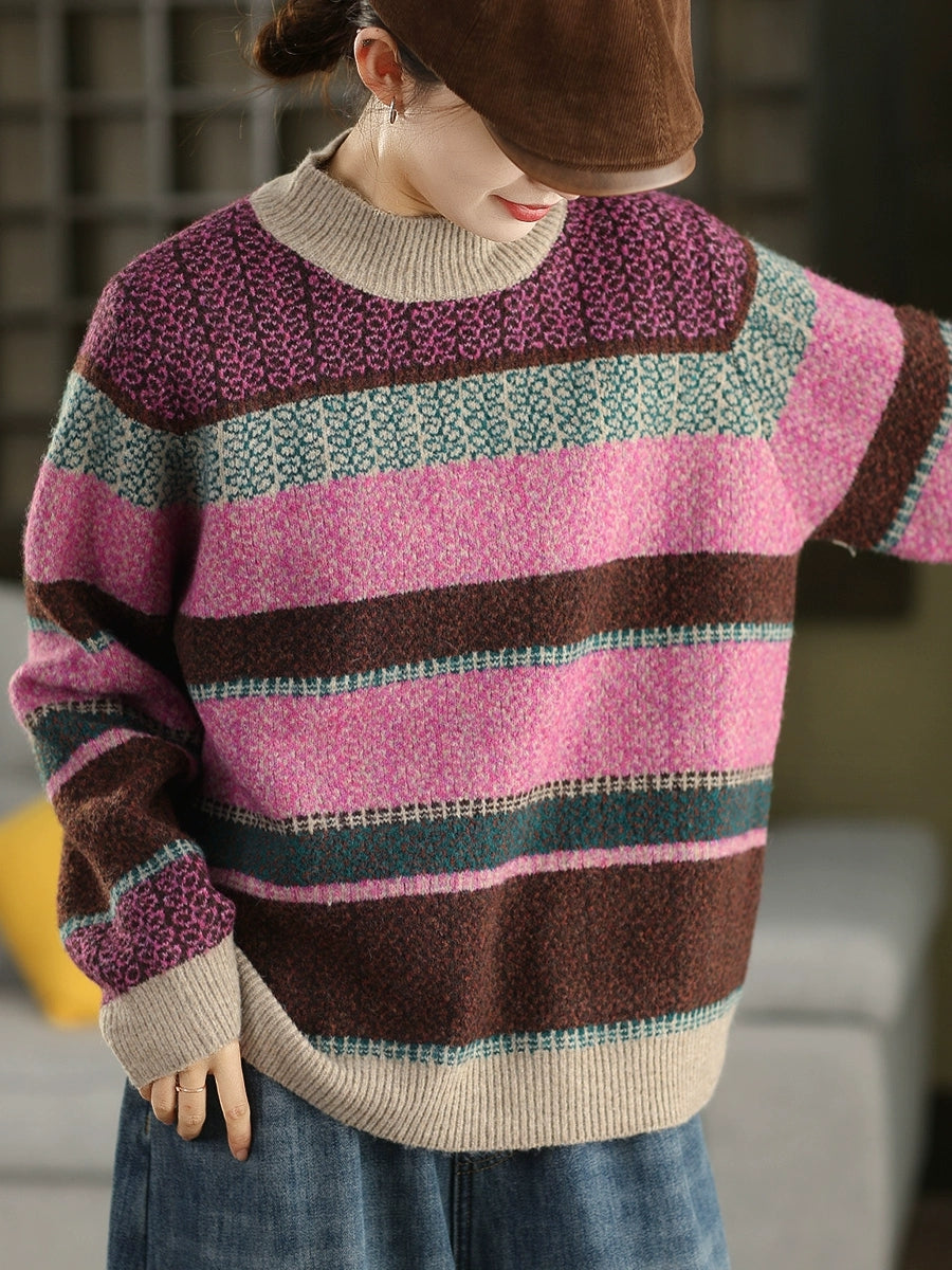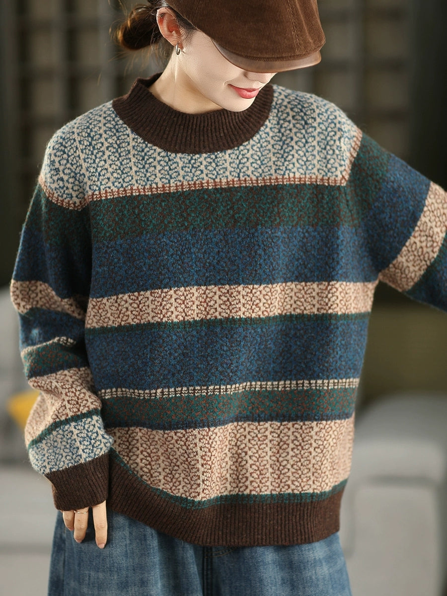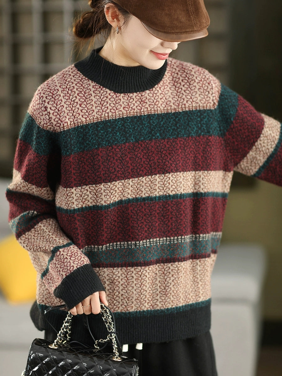 Maglione a collo alto a righe artistiche da donna, autunno