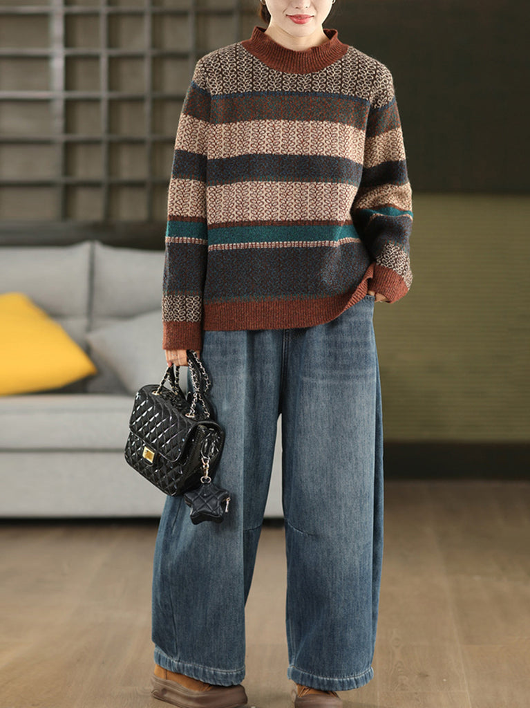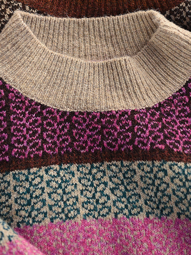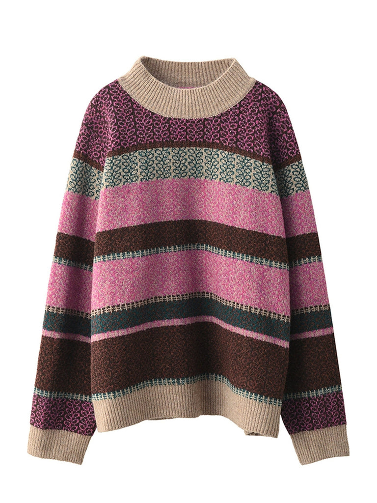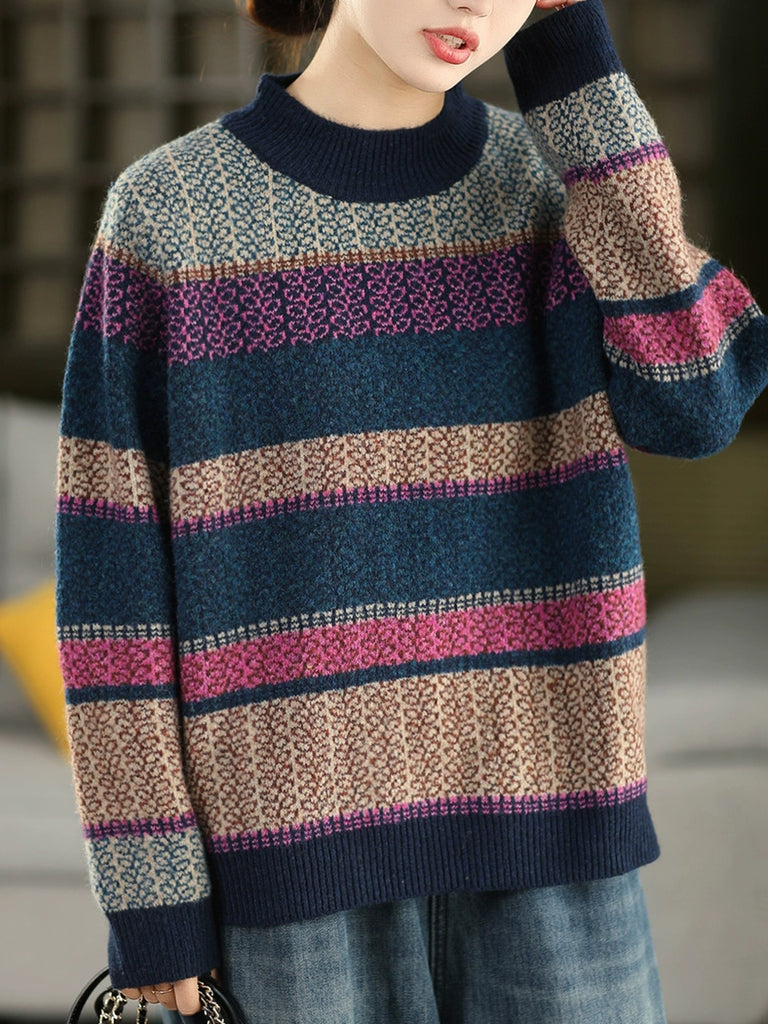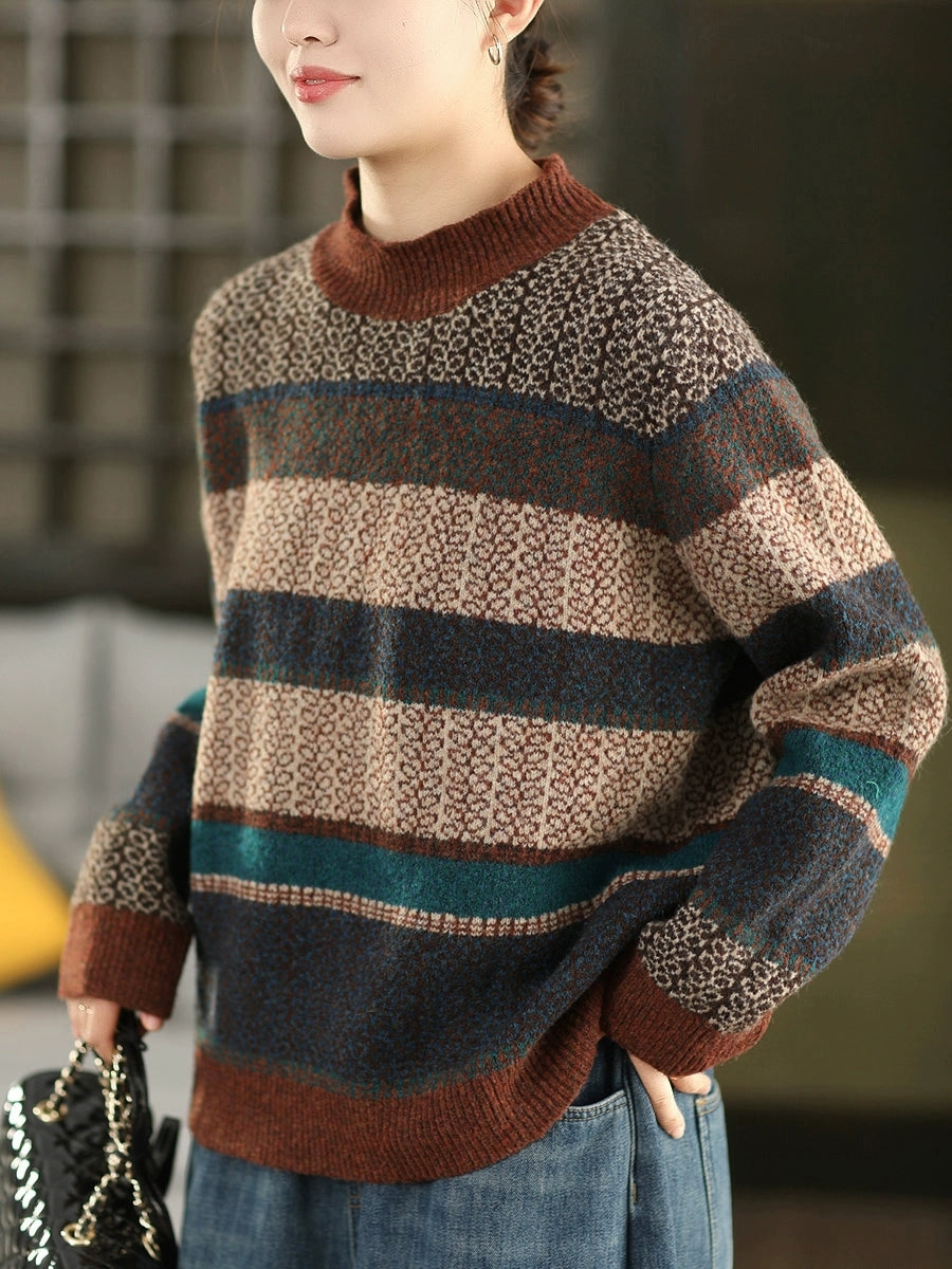 Maglione a collo alto a righe artistiche da donna, autunno