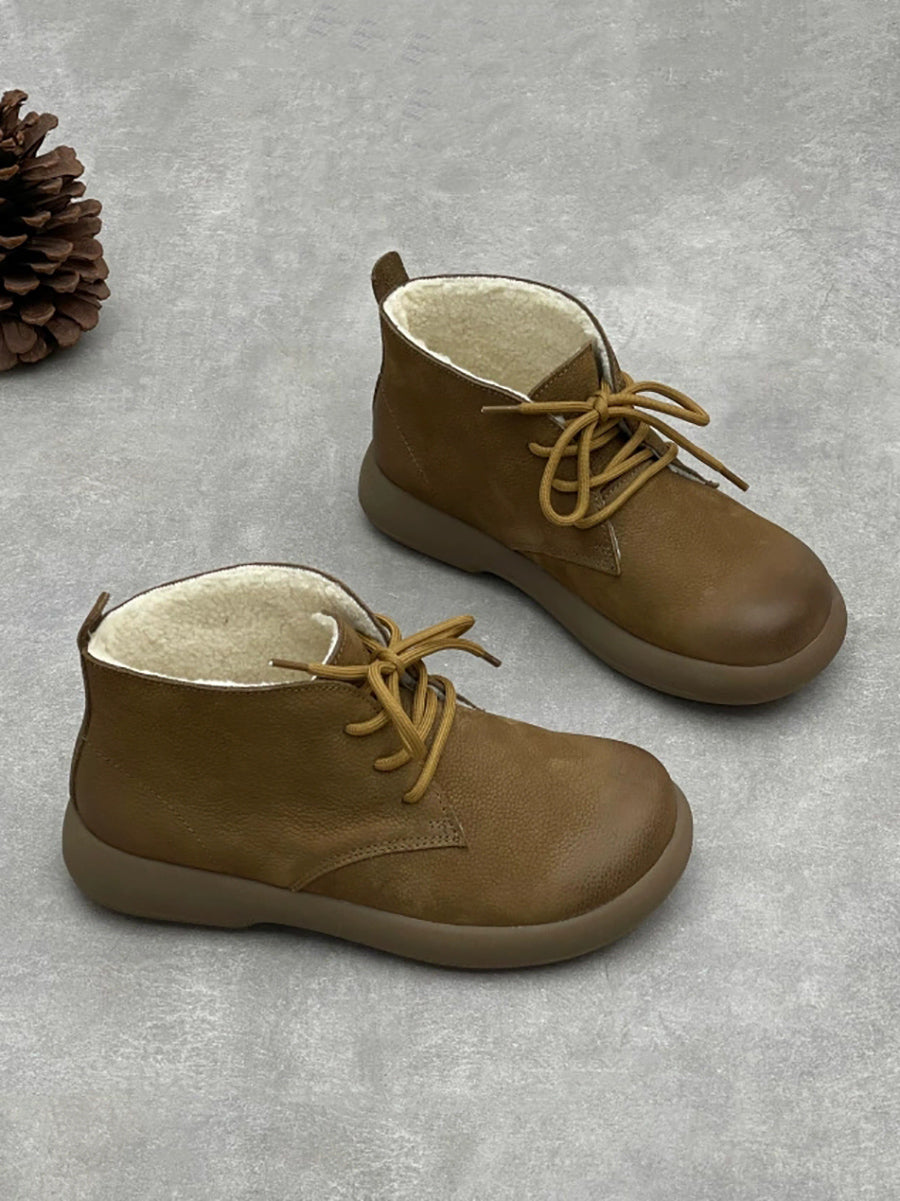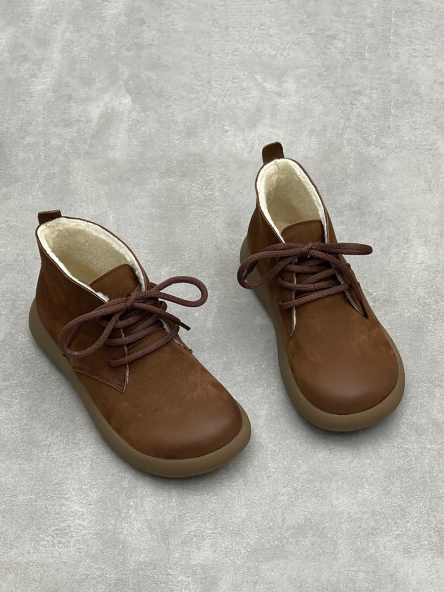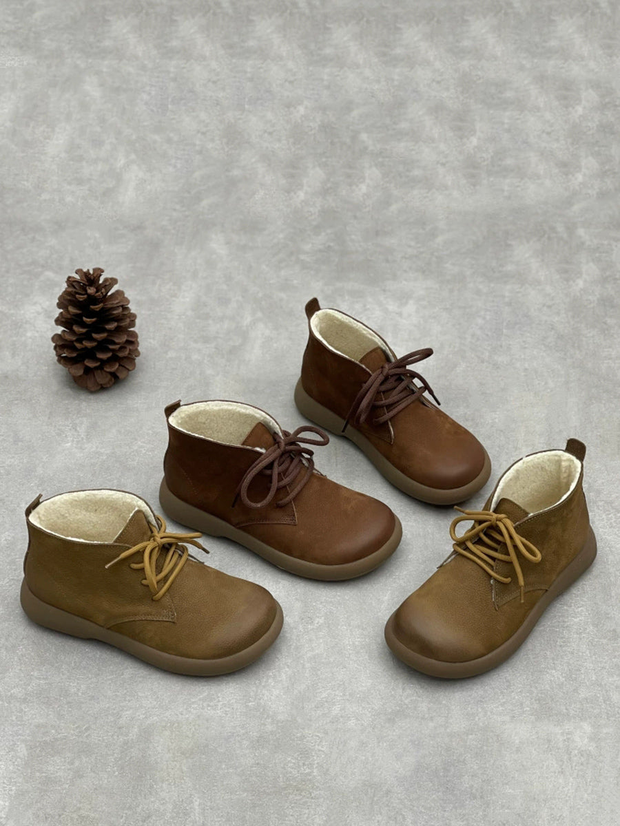 Stivaletti da donna vintage in vera pelle foderati in pile