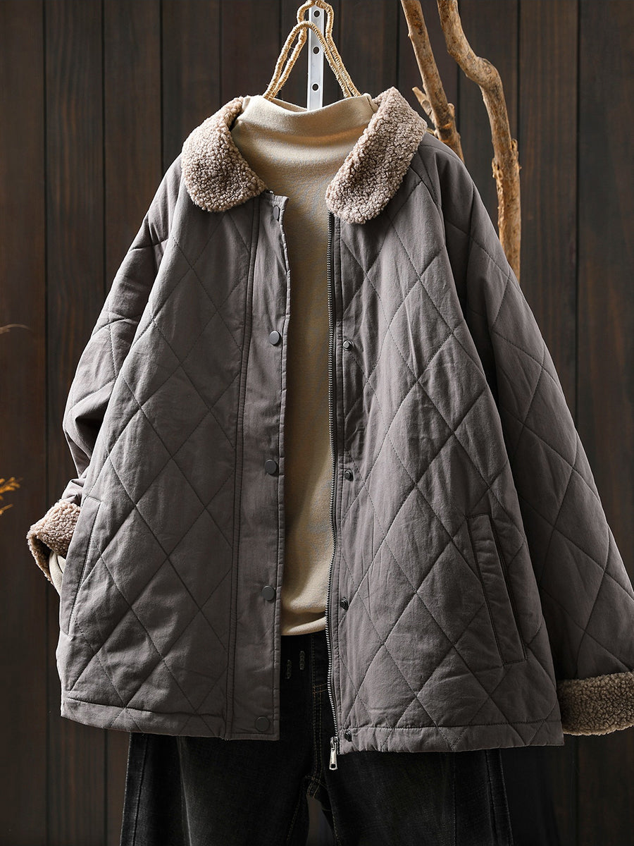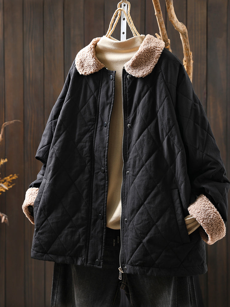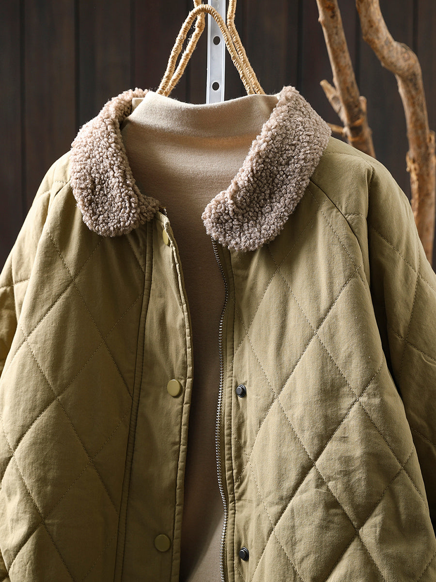 Cappotto invernale da donna in pile retrò con colletto rovesciato e cuciture