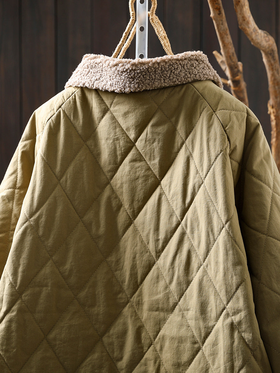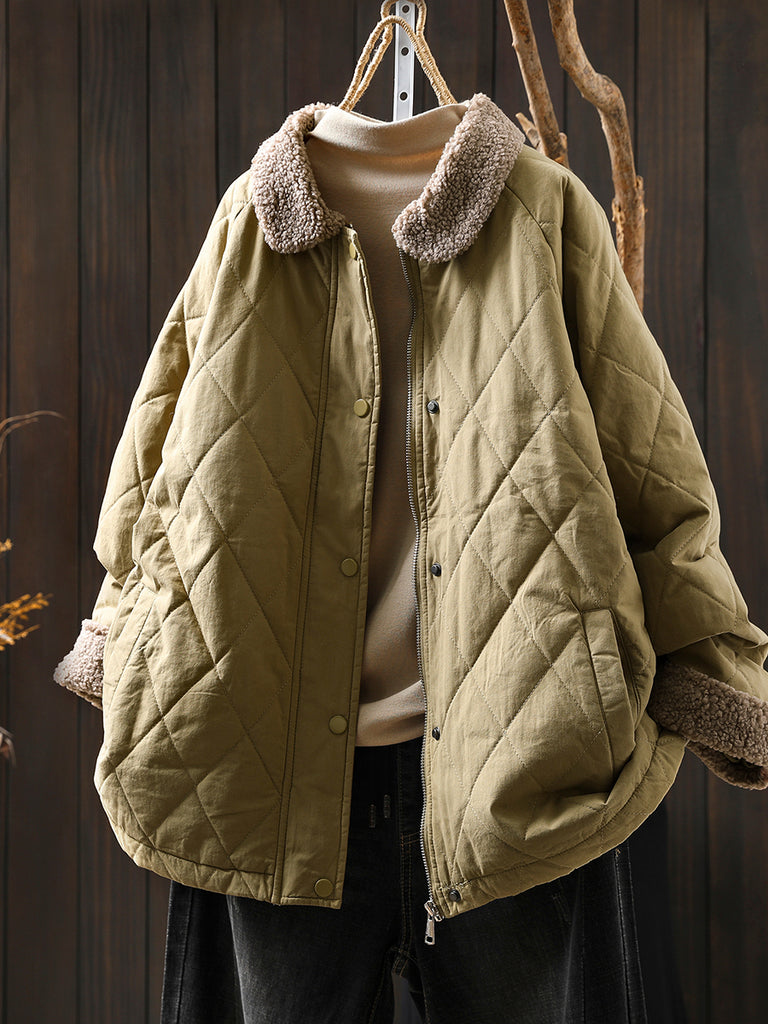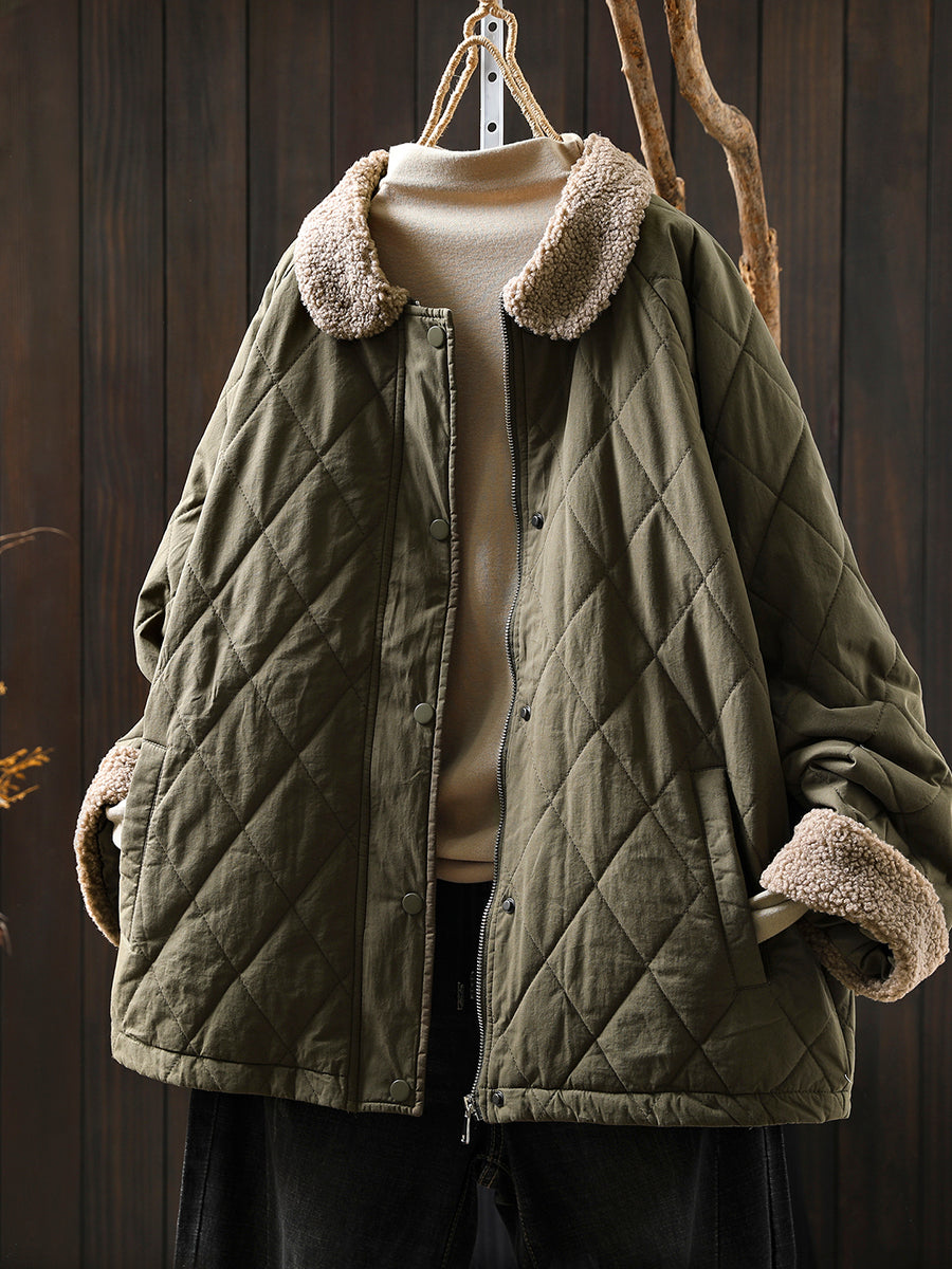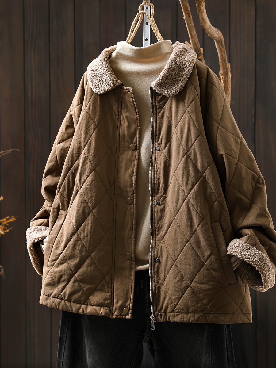 Cappotto invernale da donna in pile retrò con colletto rovesciato e cuciture