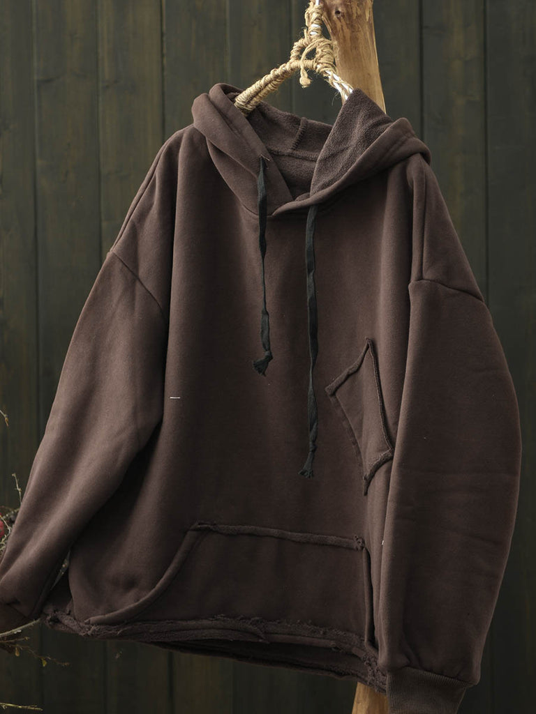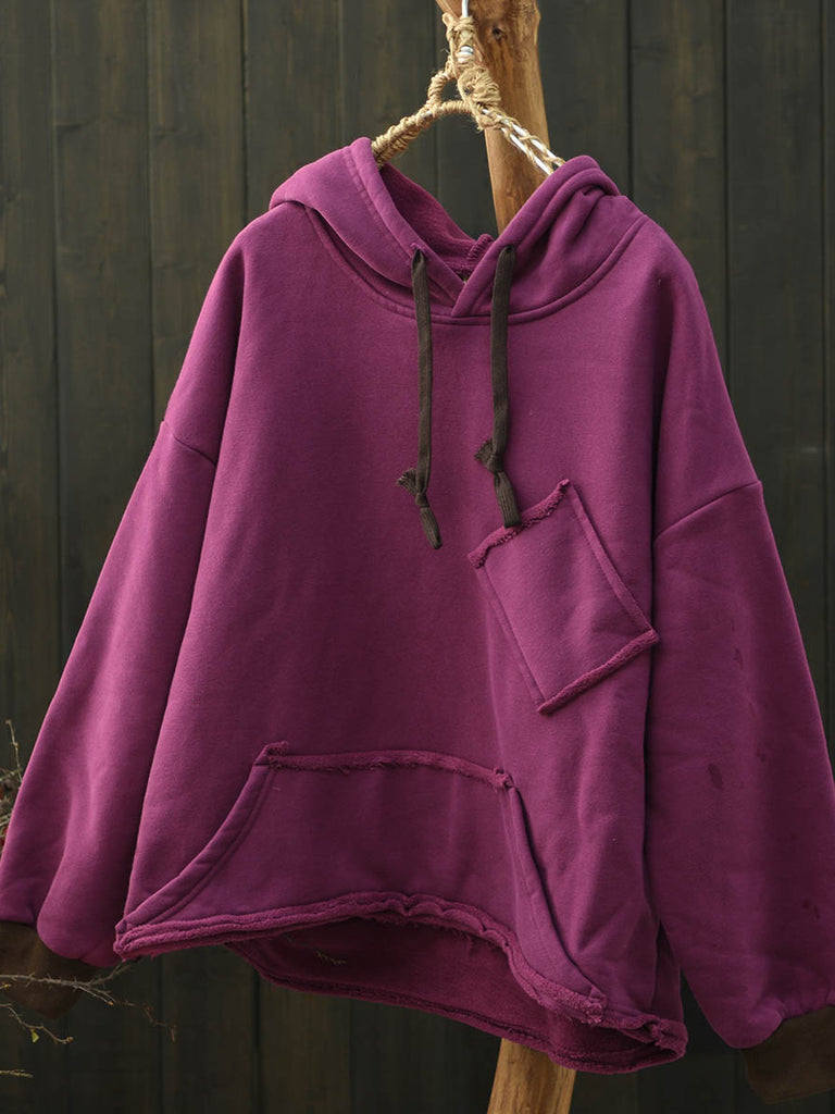Felpa con cappuccio foderata in pile casual invernale da donna, colore puro