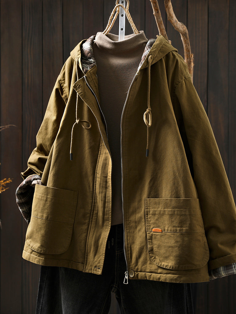 Giacca con cappuccio in cotone puro, stile retrò autunnale da donna