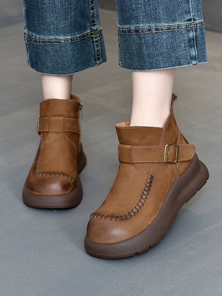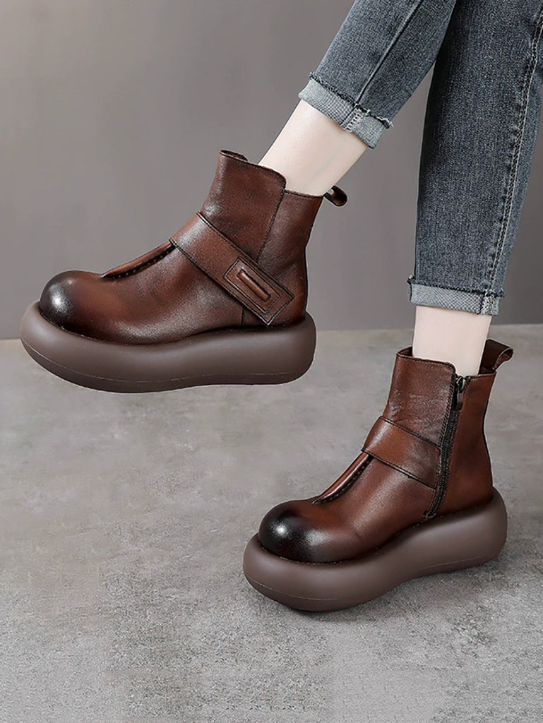 Stivali da donna vintage in vera pelle con fodera in pile e plateau