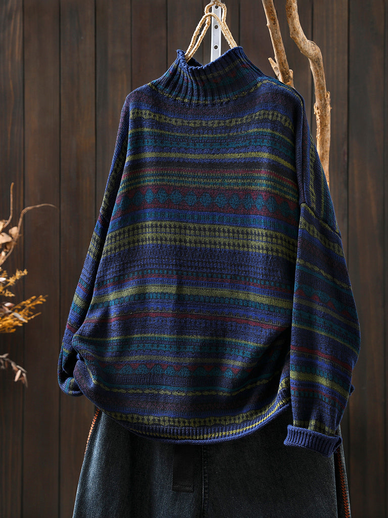 Cappotto in maglia a righe autunnali da donna con scollo a V
