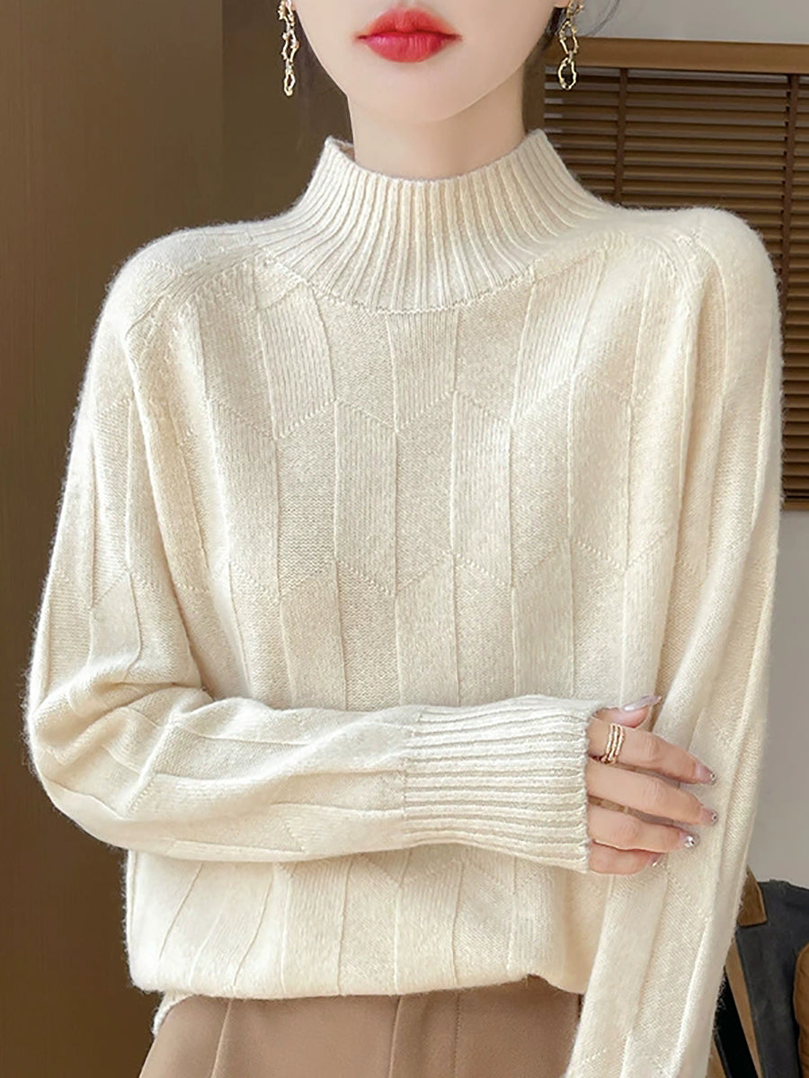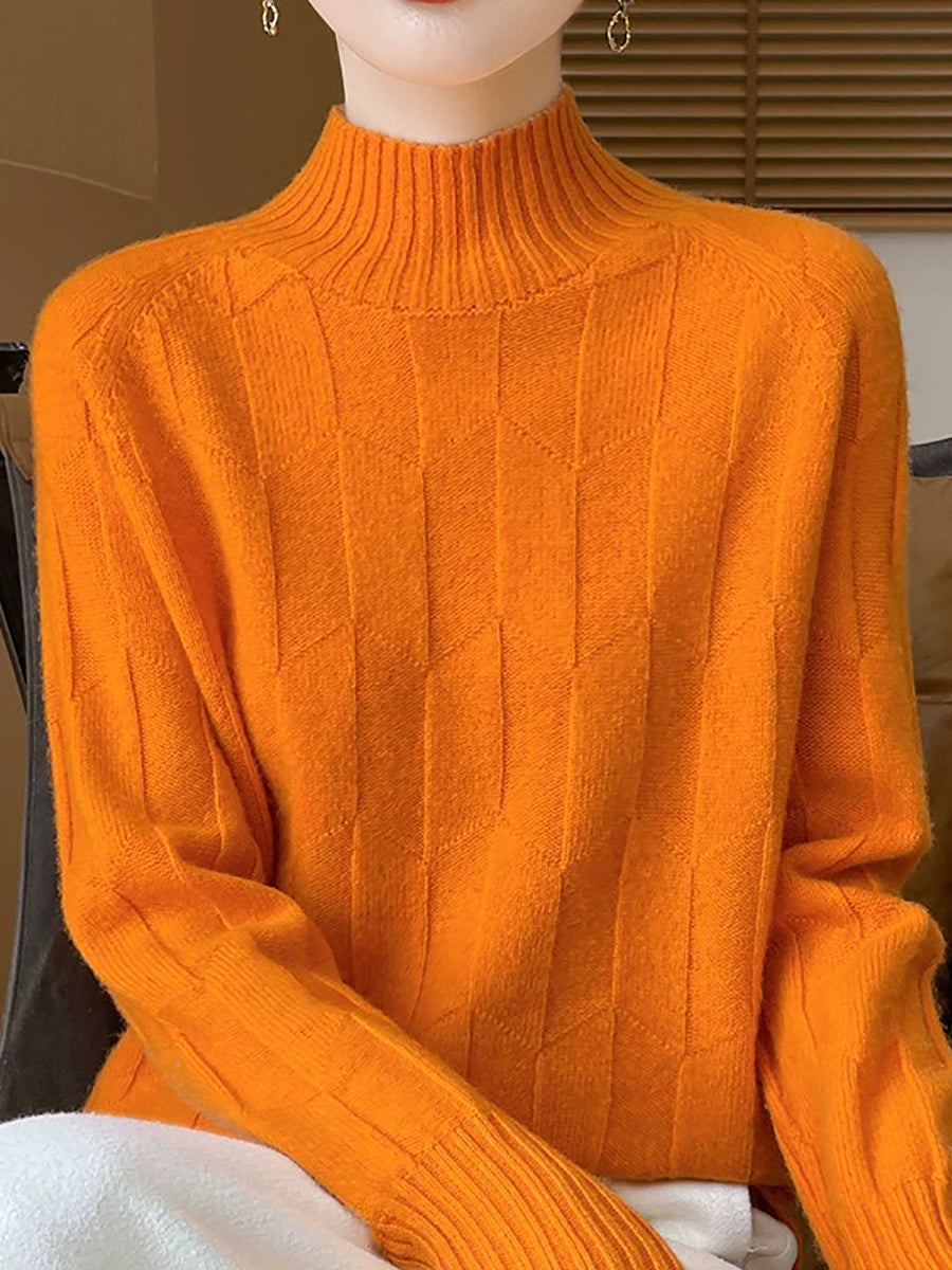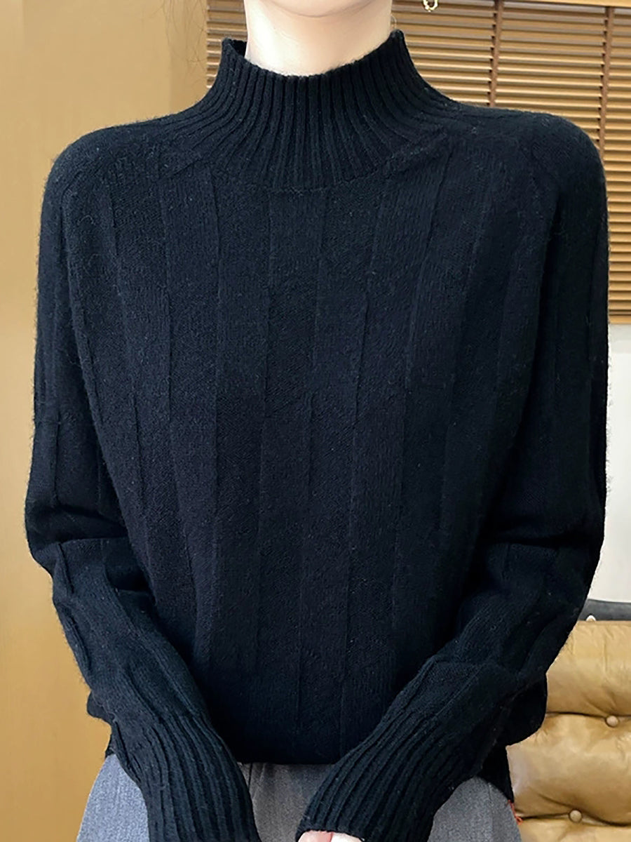 Maglione a collo alto casual primaverile da donna, colore puro