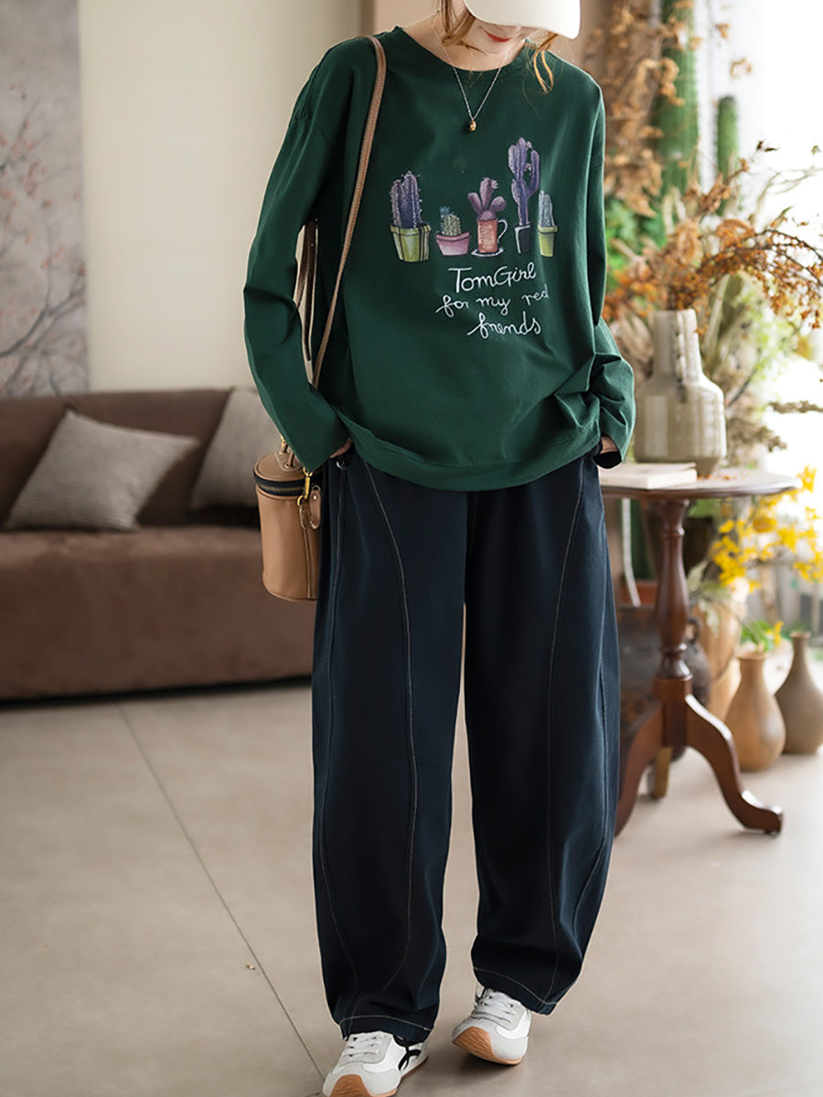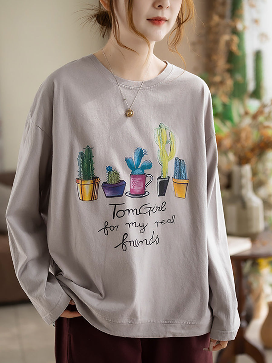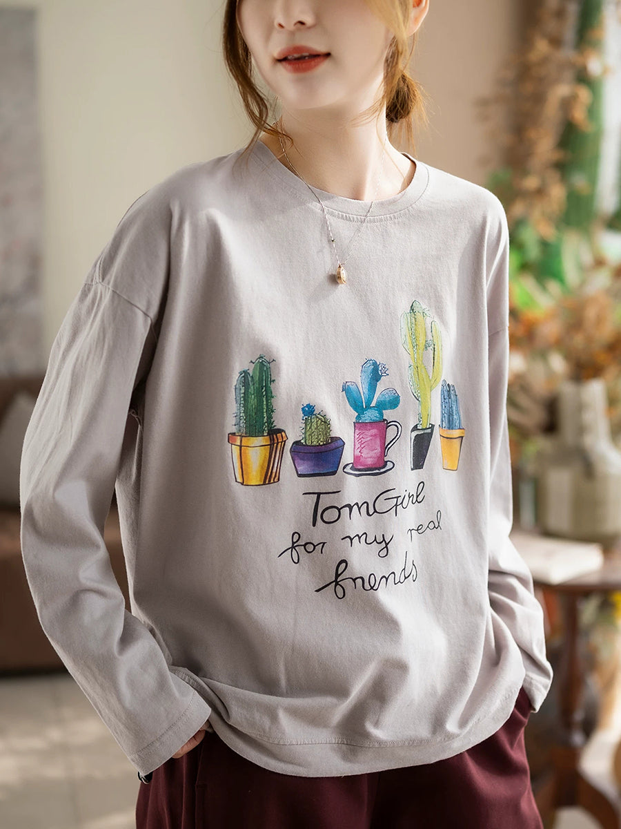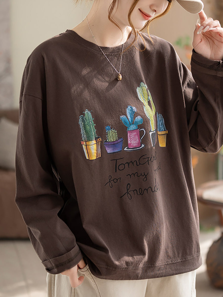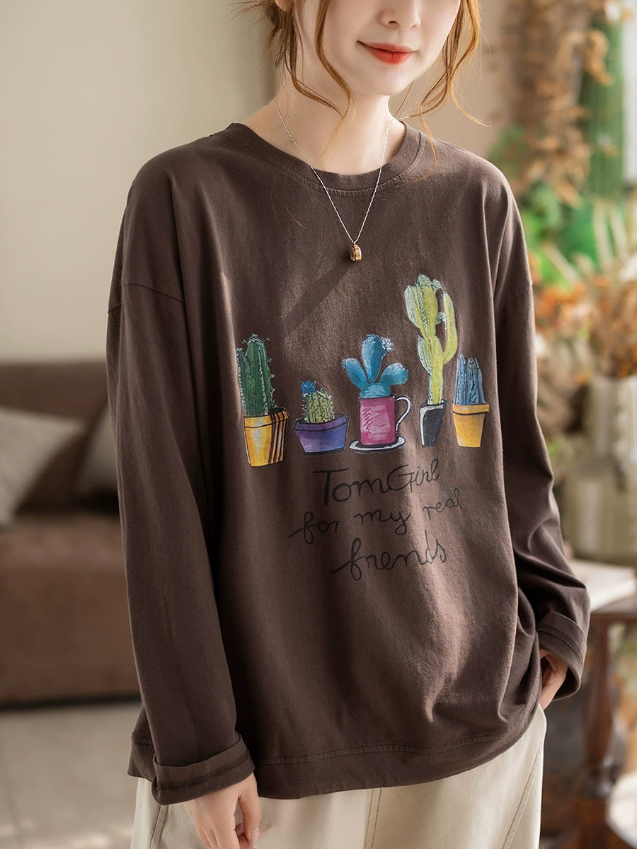 Blusa da donna in cotone con scollo a V e motivo Artsy Plants