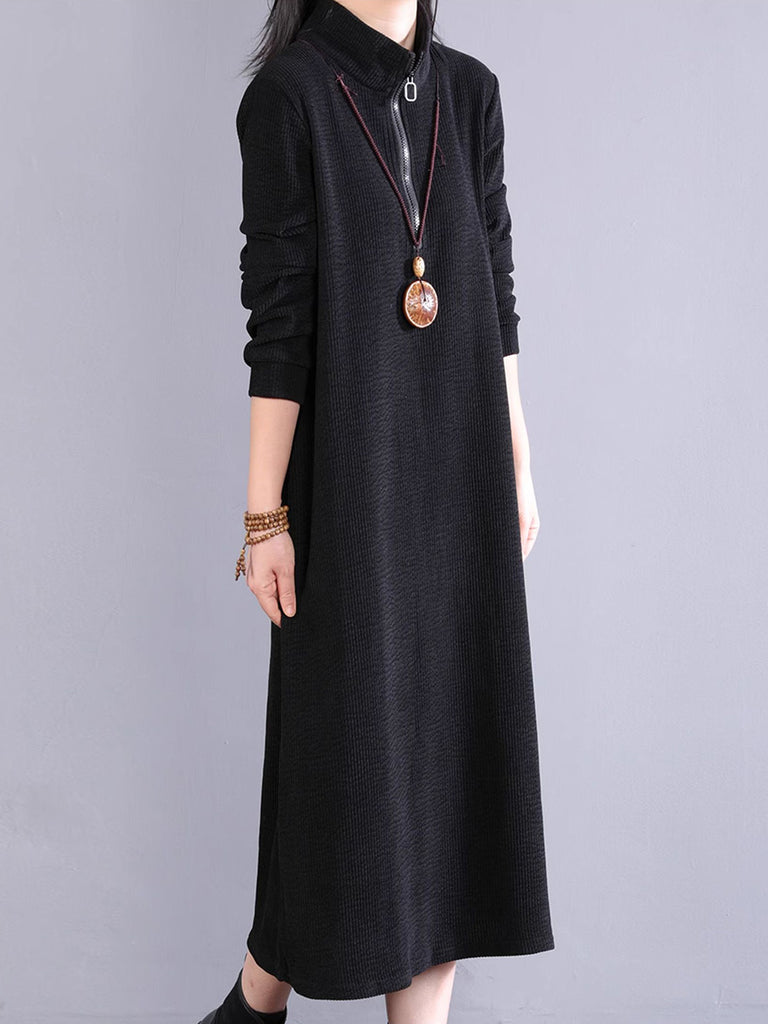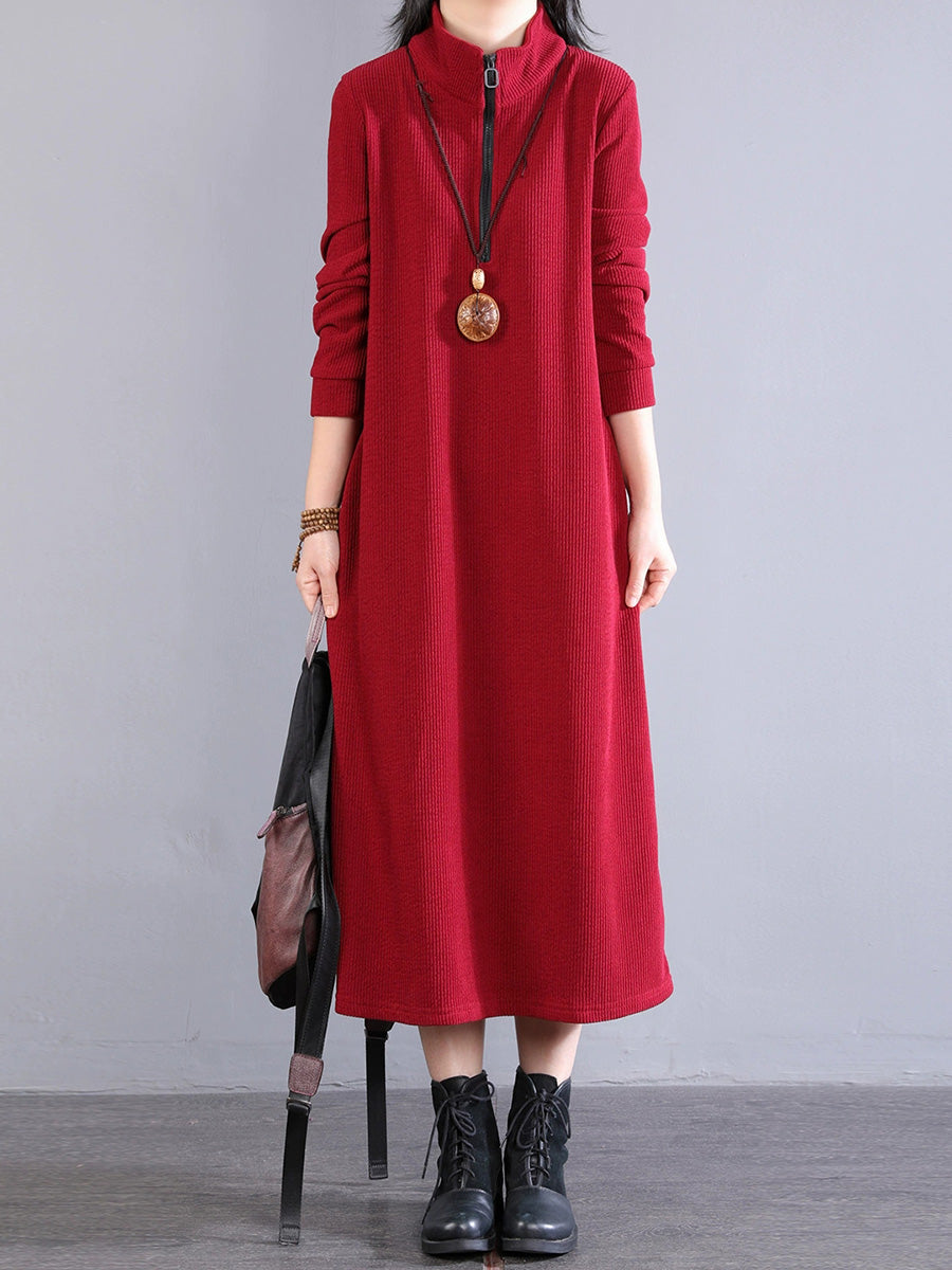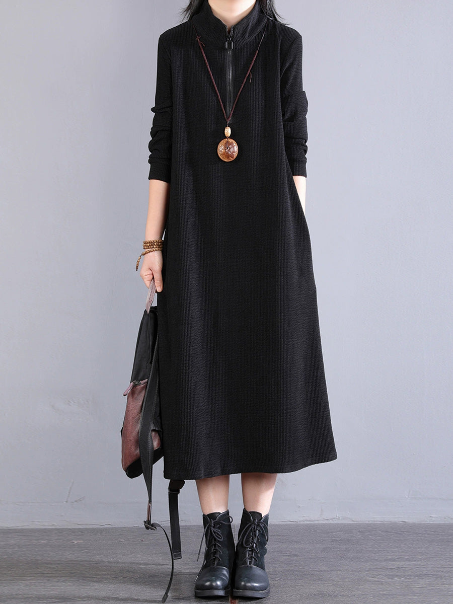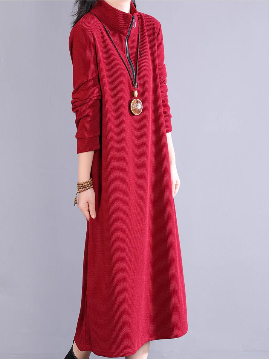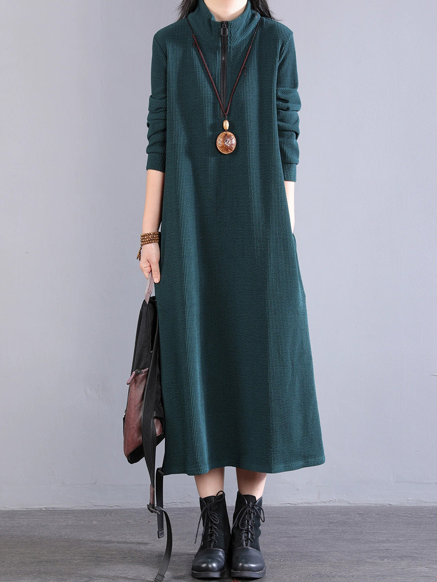 Abito da donna autunnale in puro cotone 100% con colletto rialzato