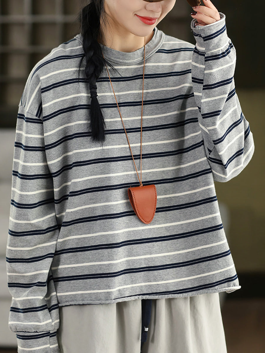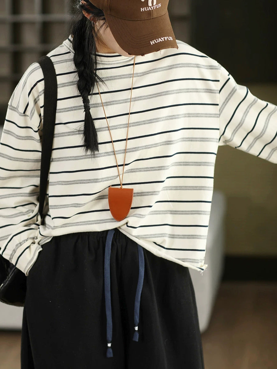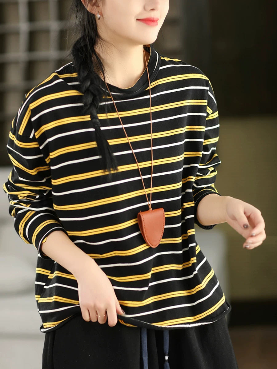 Blusa da donna in cotone con scollo a V e righe primaverili Artsy