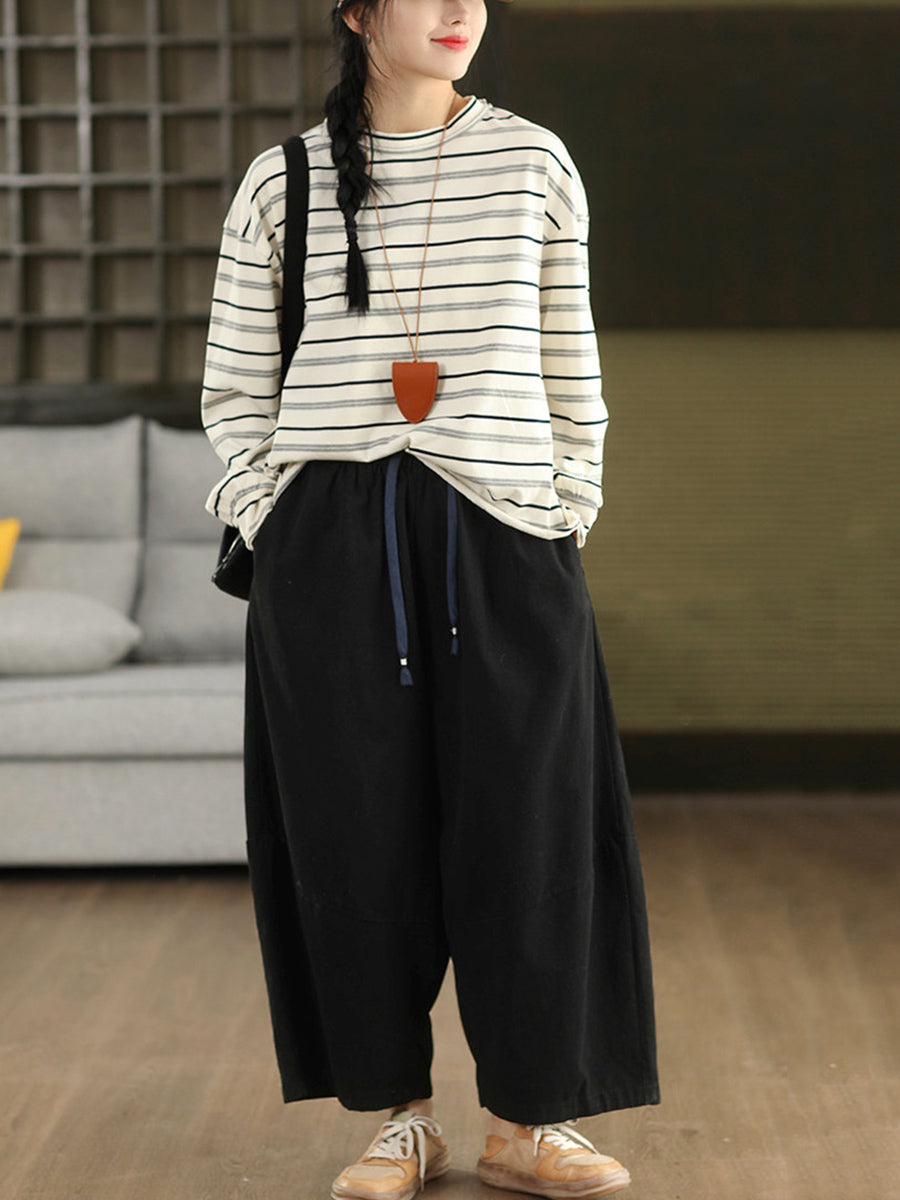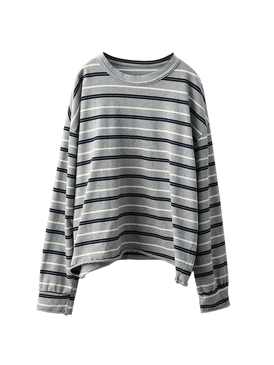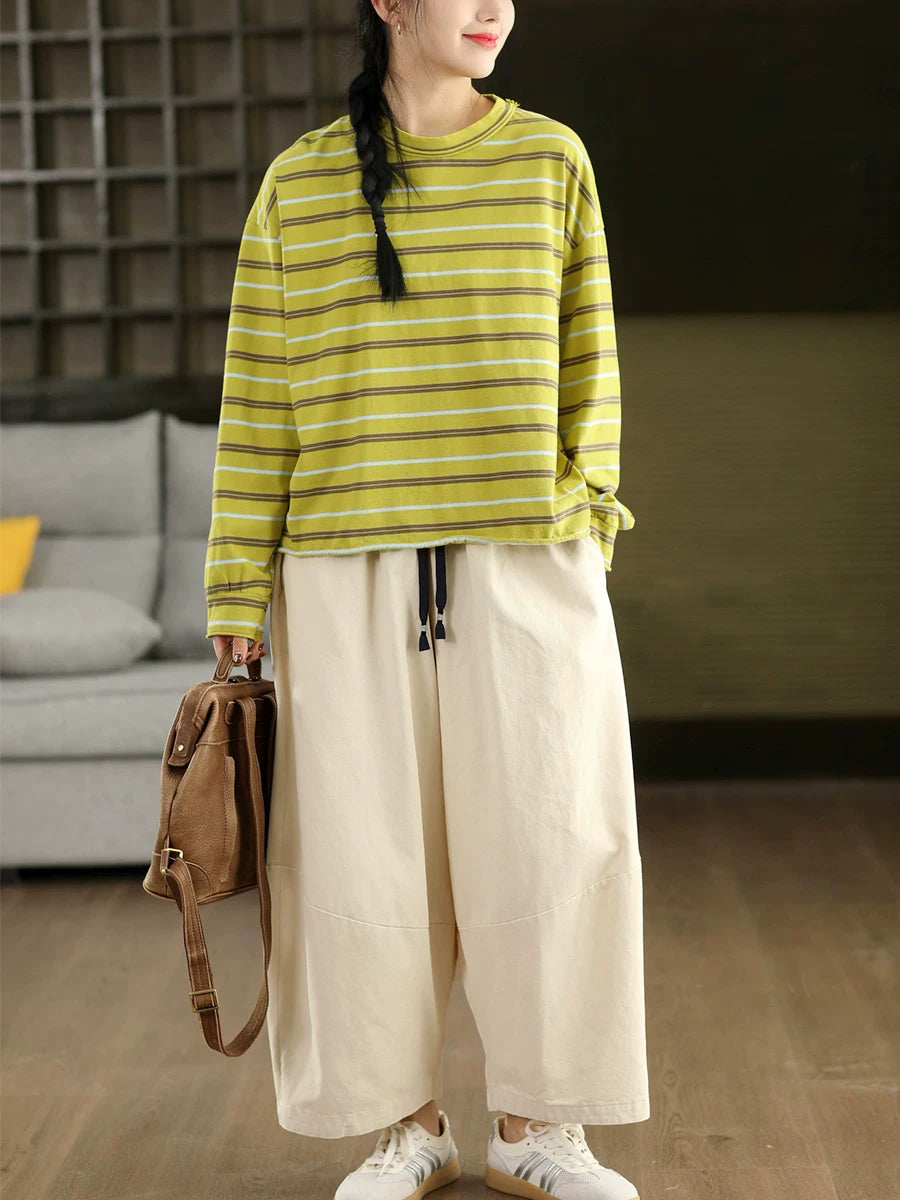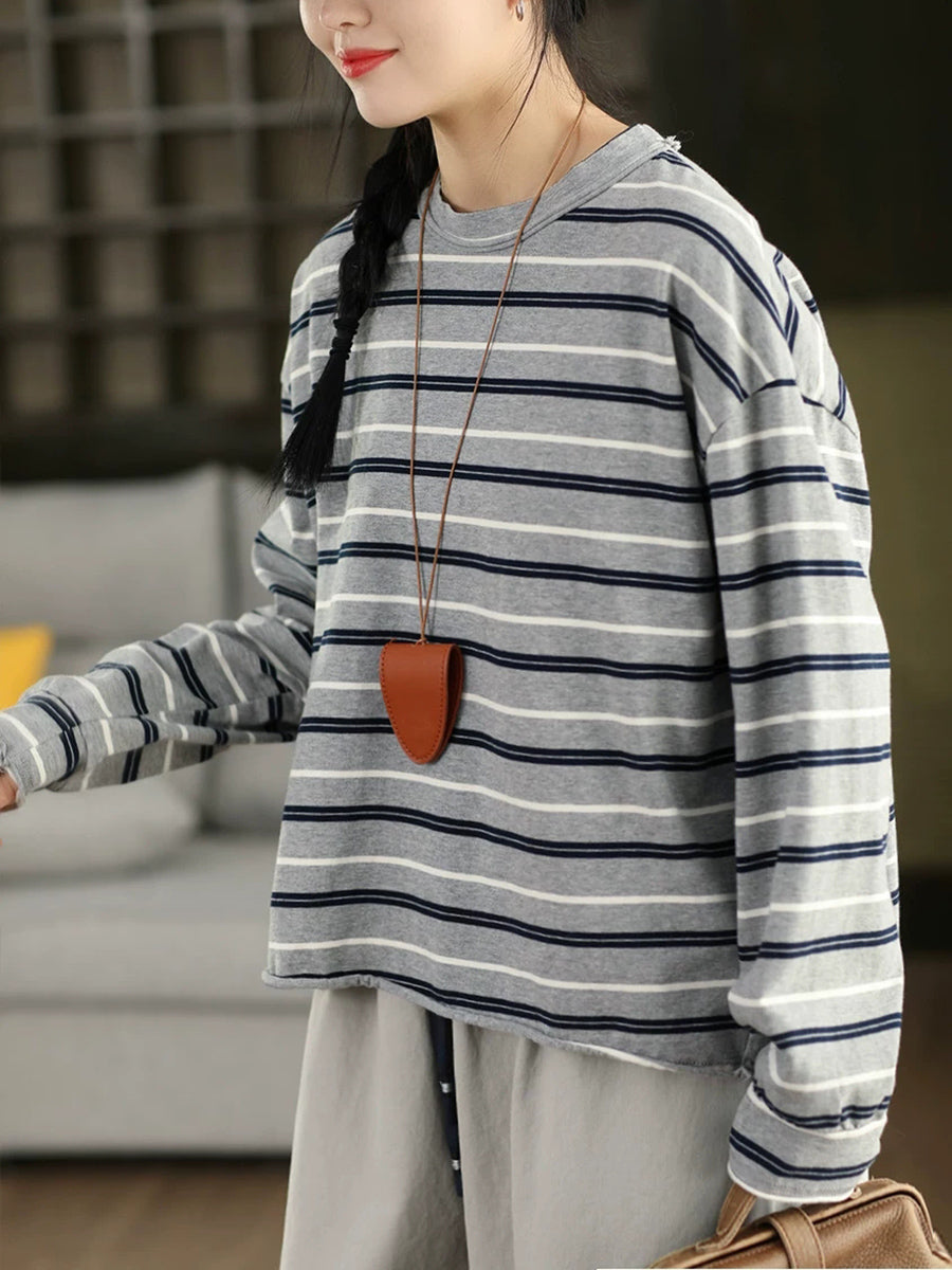 Blusa da donna in cotone con scollo a V e righe primaverili Artsy