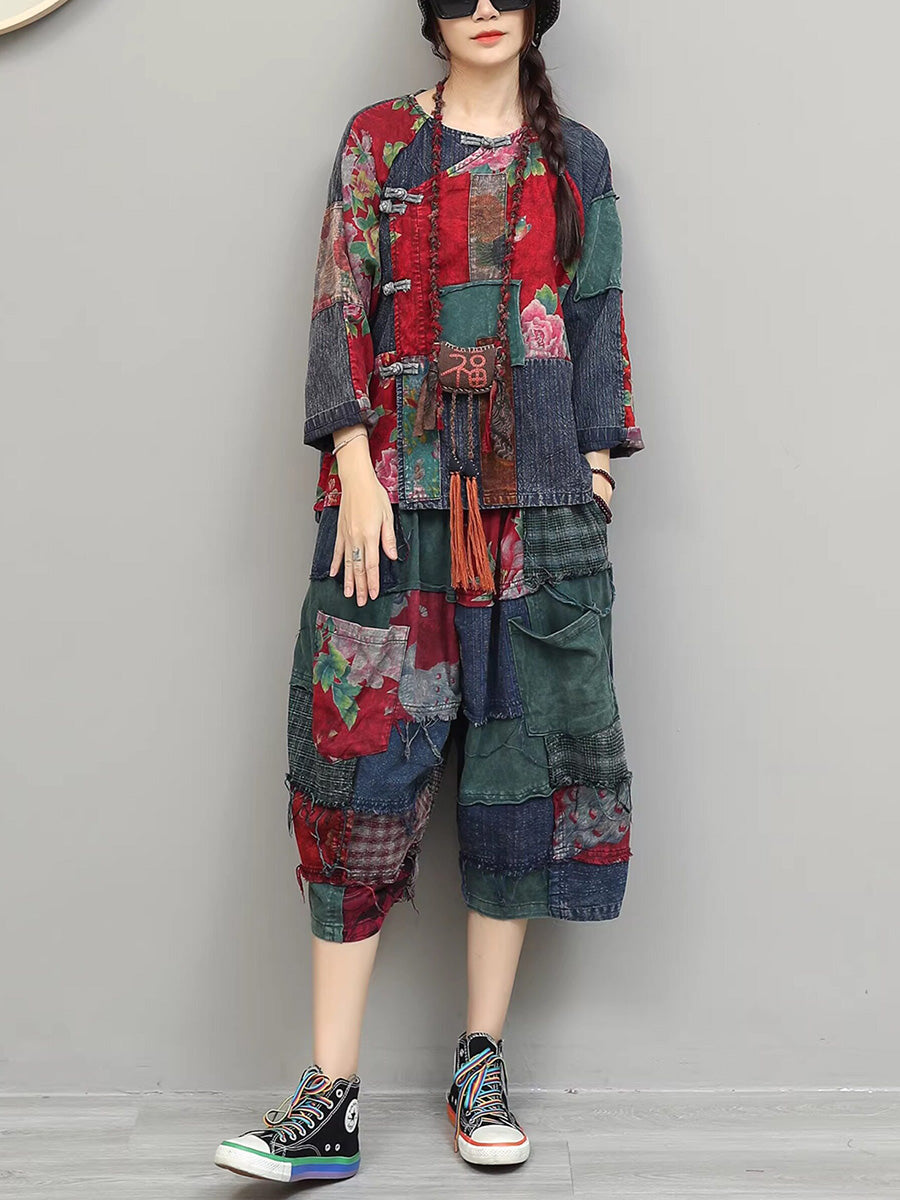 Completo estivo da donna etnico con patchwork floreale