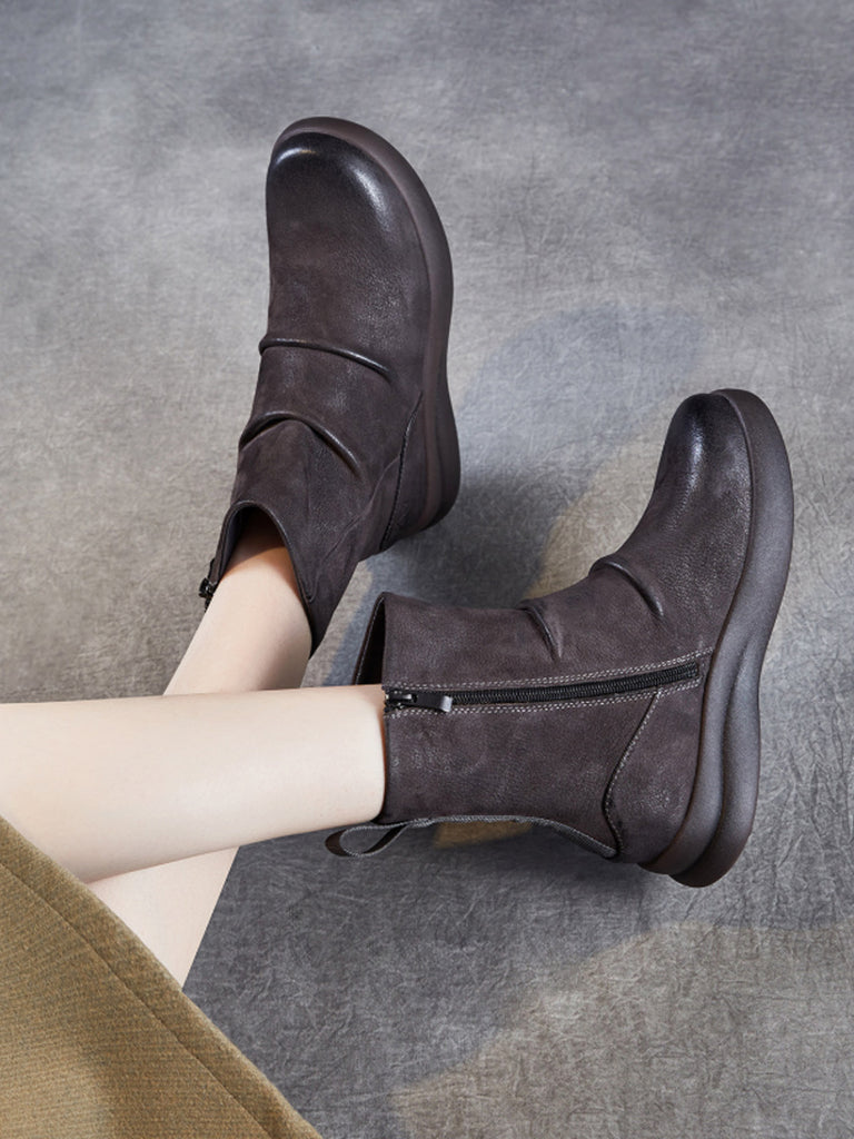 Stivali piatti invernali retrò in vera pelle da donna