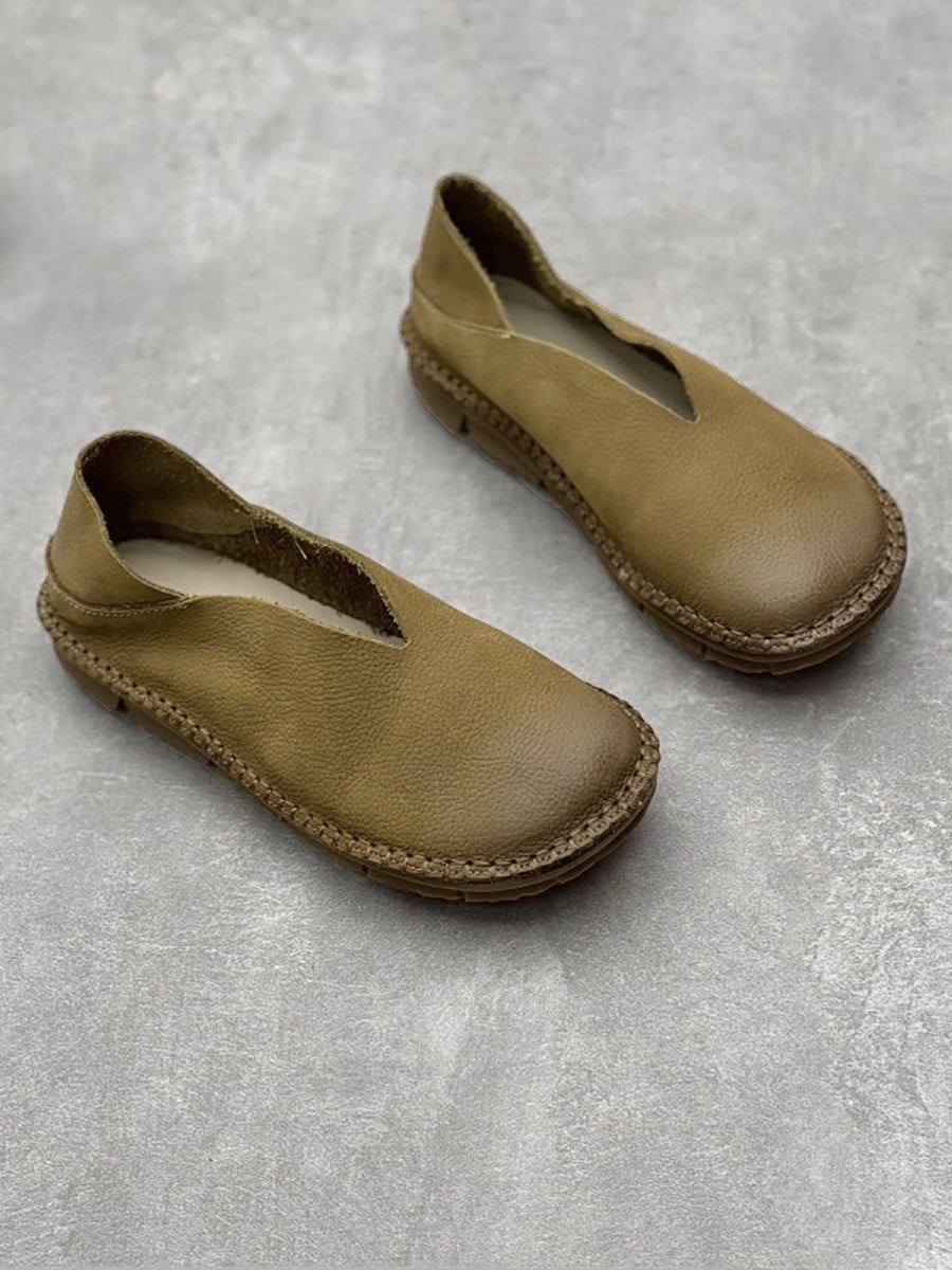 Scarpe piatte morbide in pelle solida vintage estive da donna