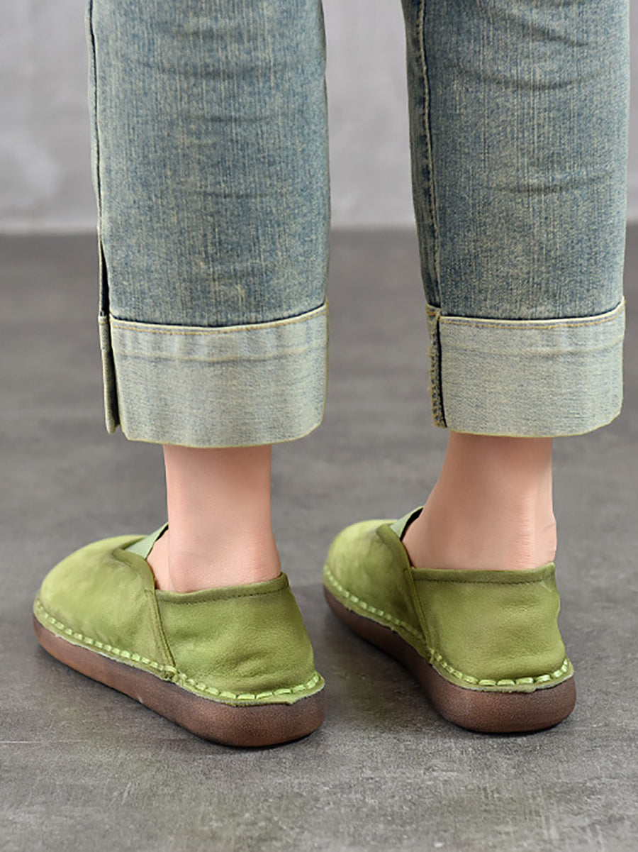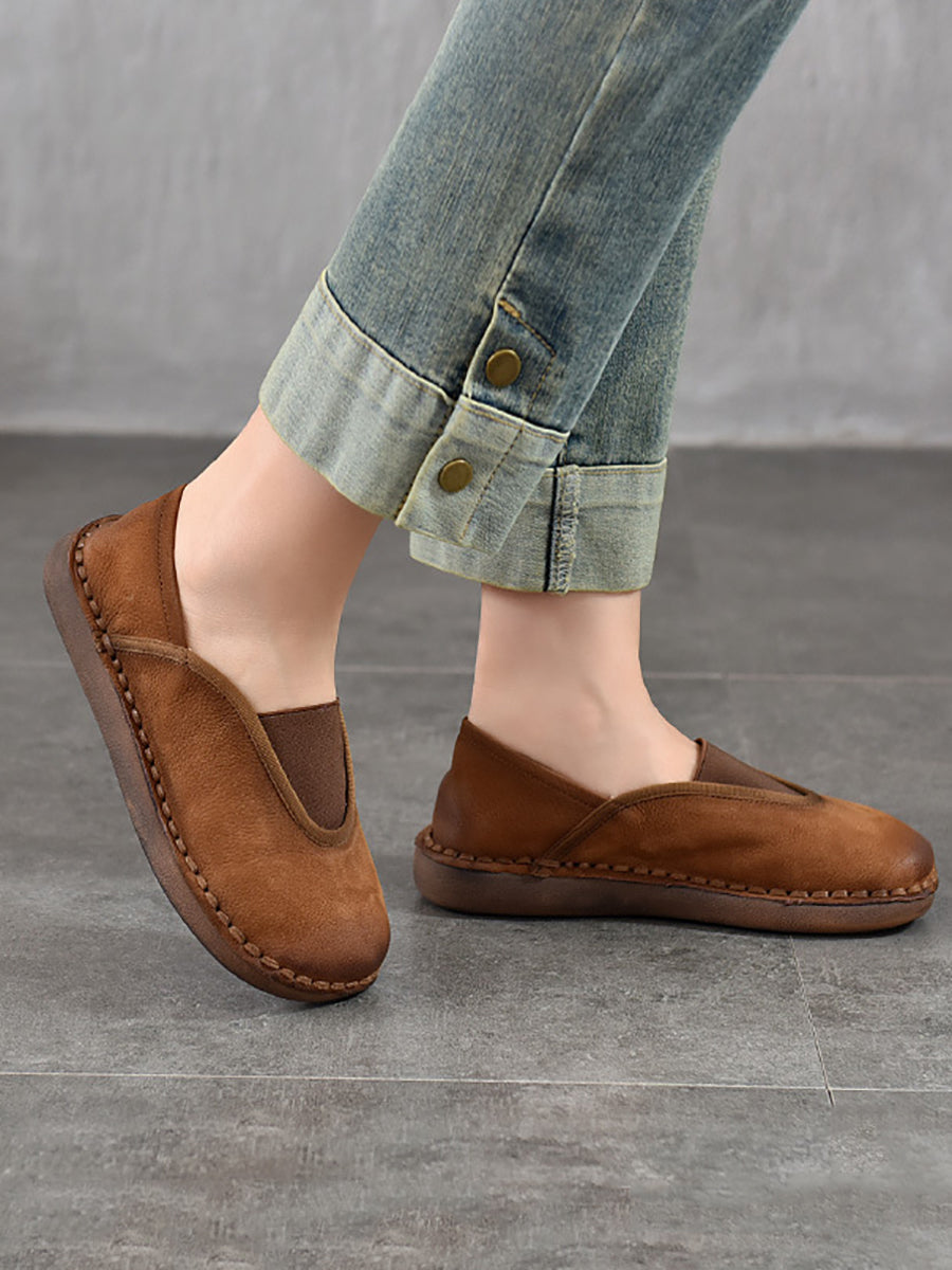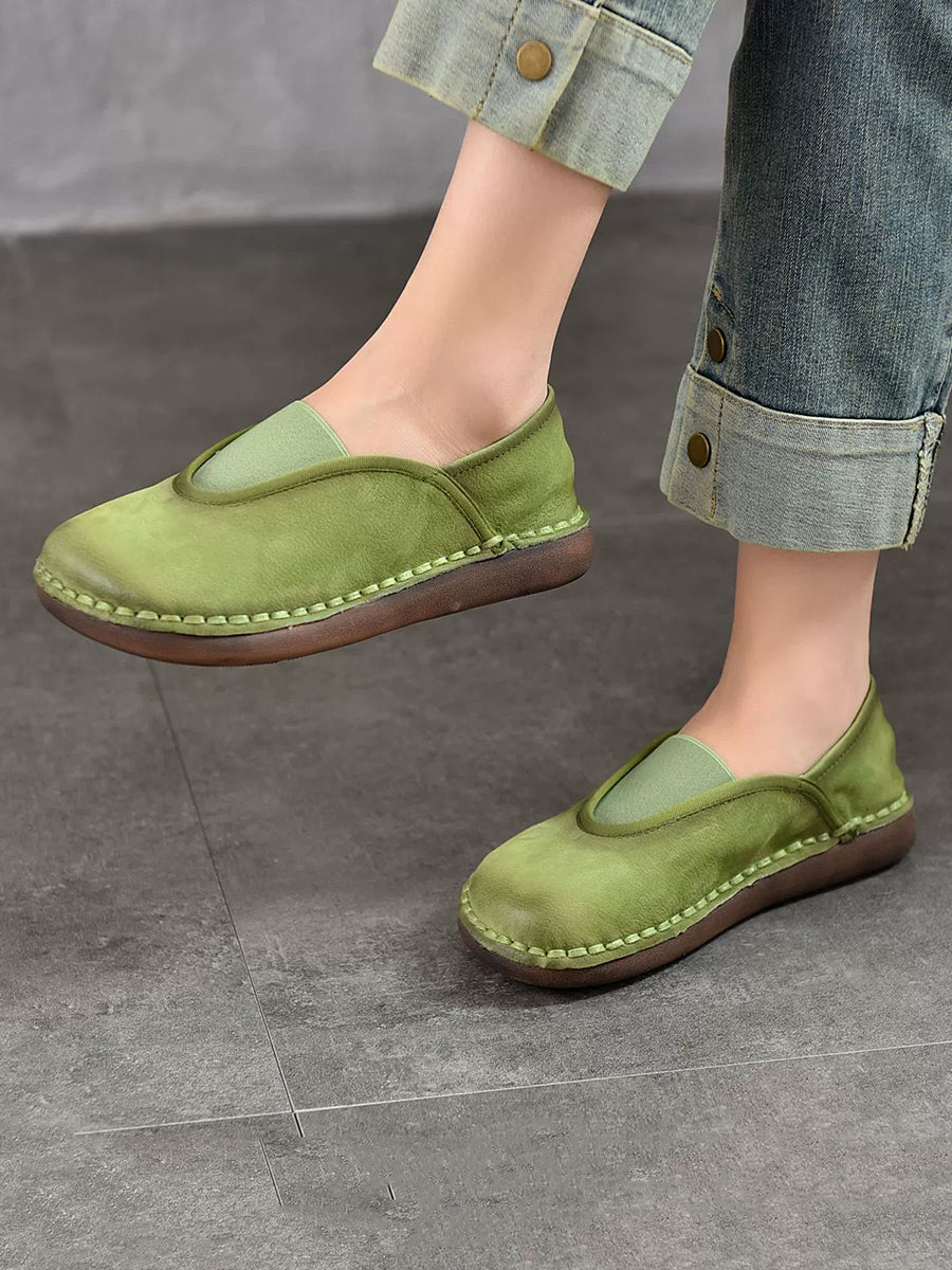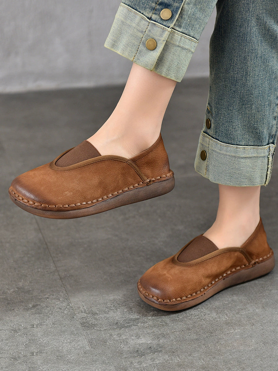 Scarpe basse vintage da donna in vera pelle con giunzioni