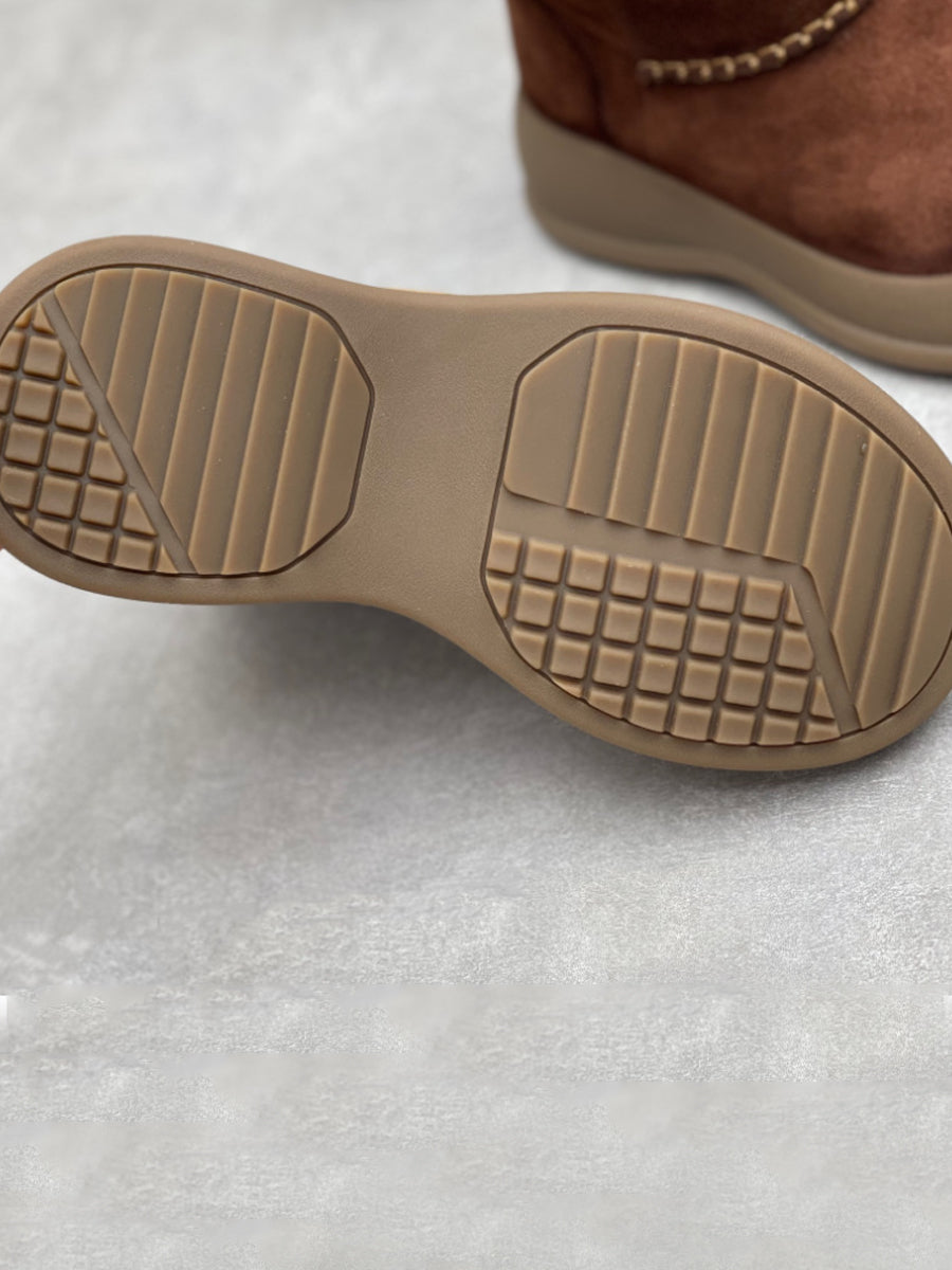 Stivali da donna in vera pelle con fodera in pile e plateau