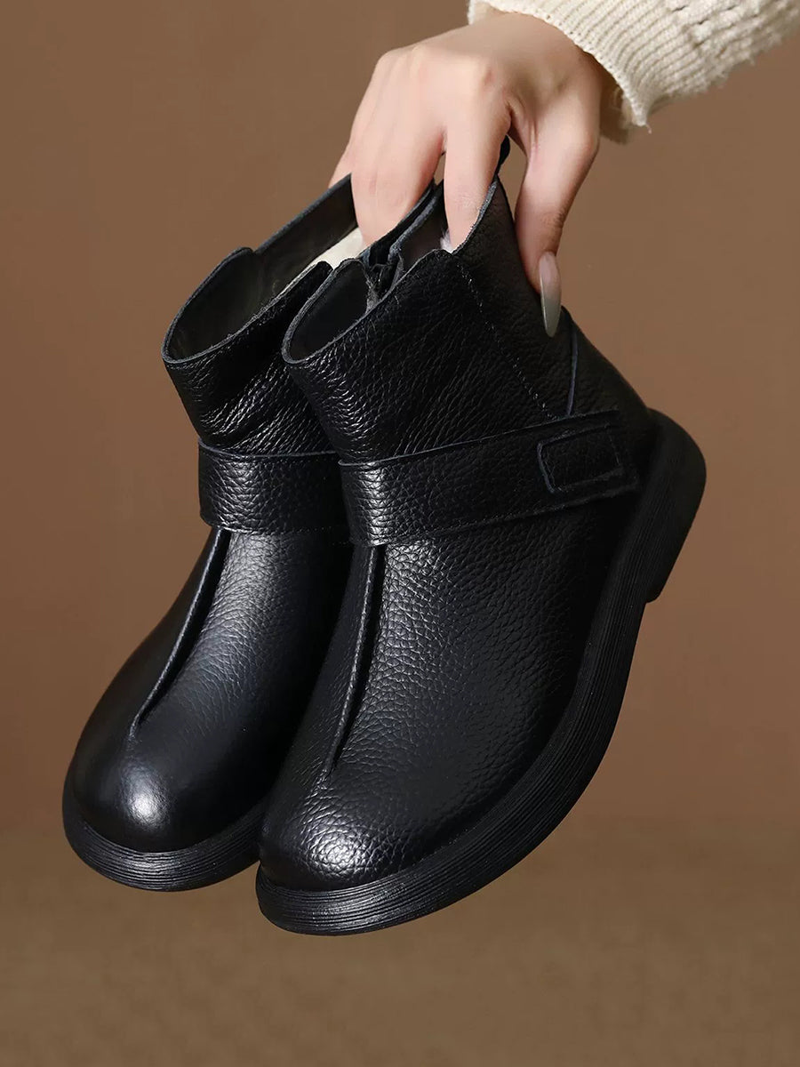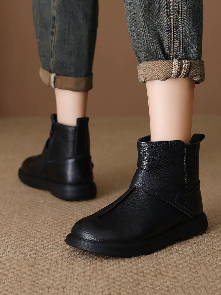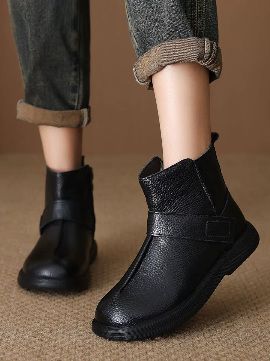 Stivaletti da donna vintage in vera pelle con fodera in pile