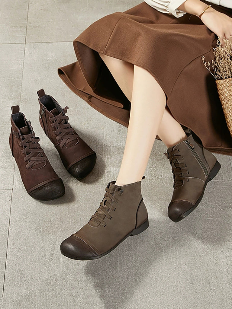 Stivaletti da donna vintage in vera pelle con tacco basso