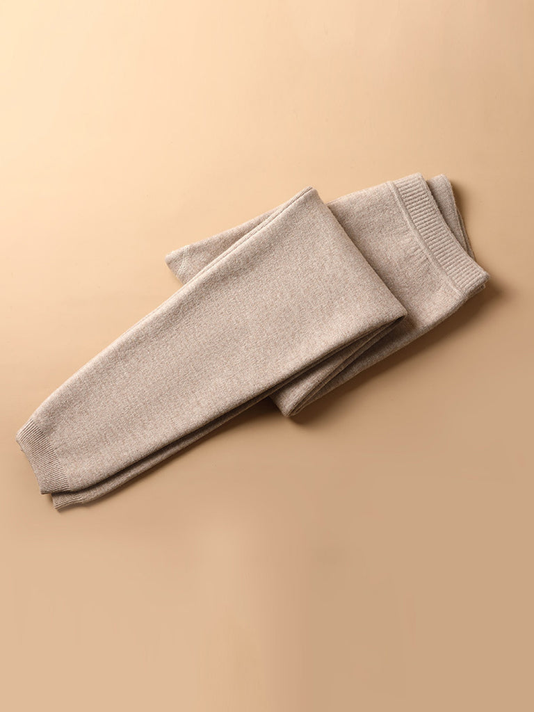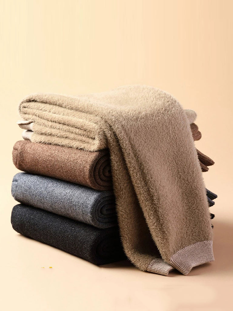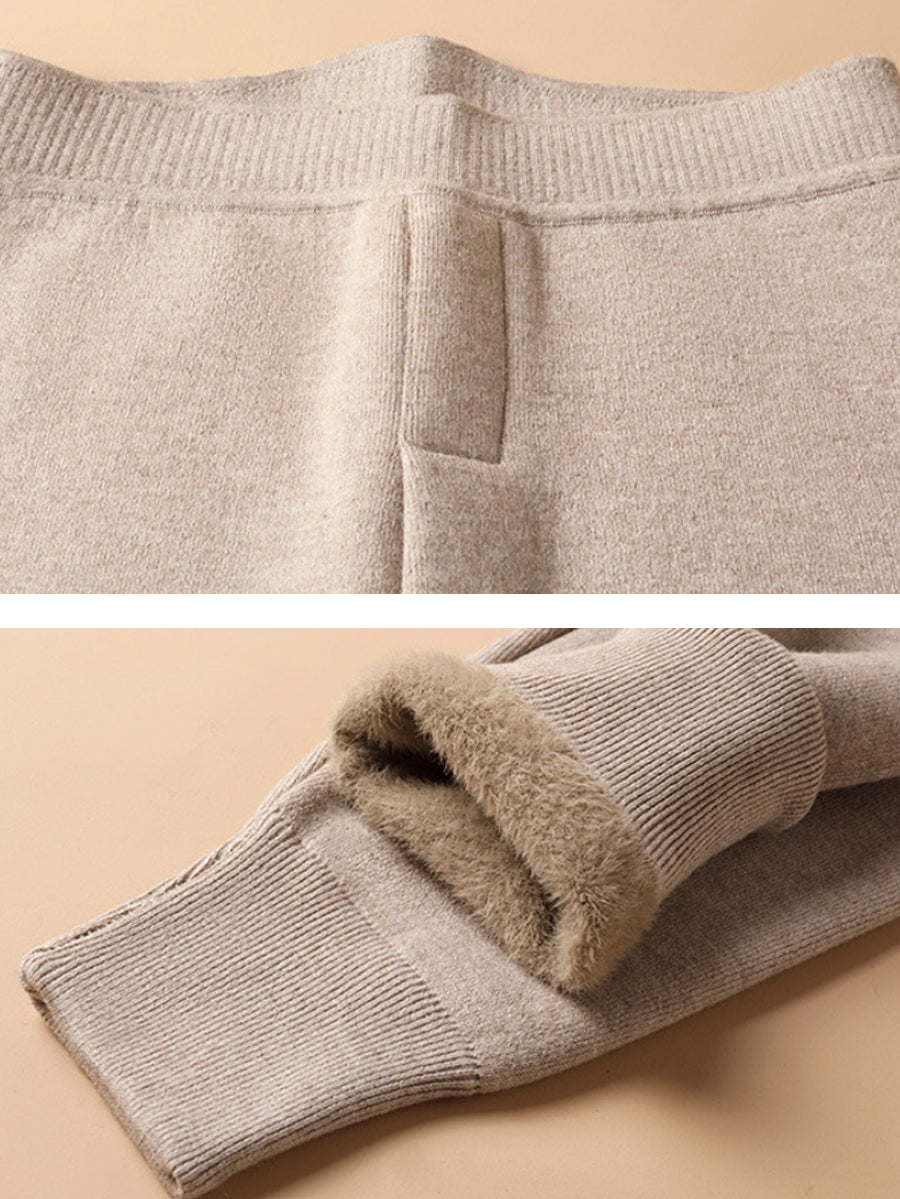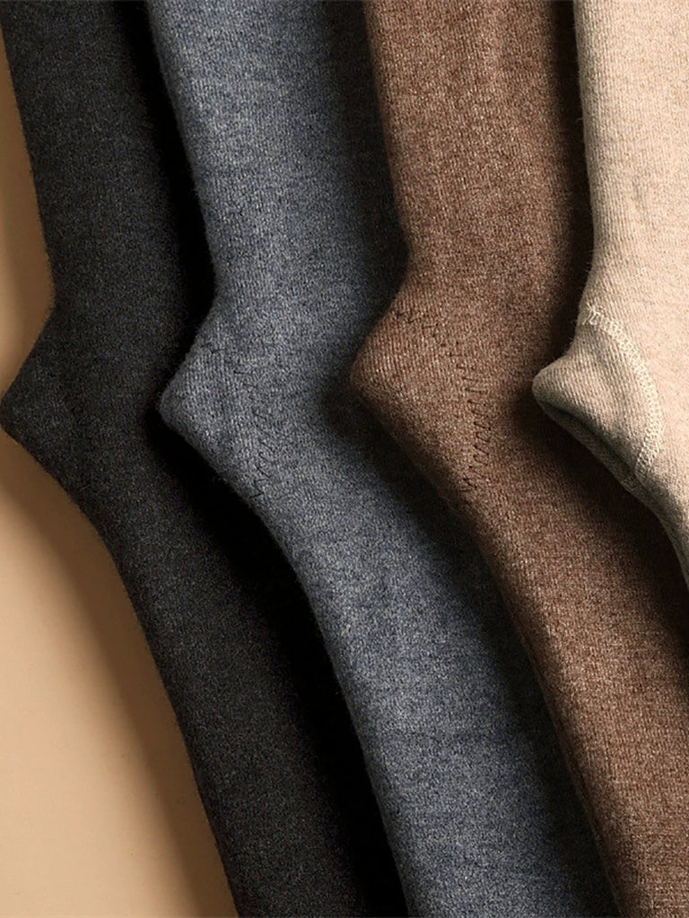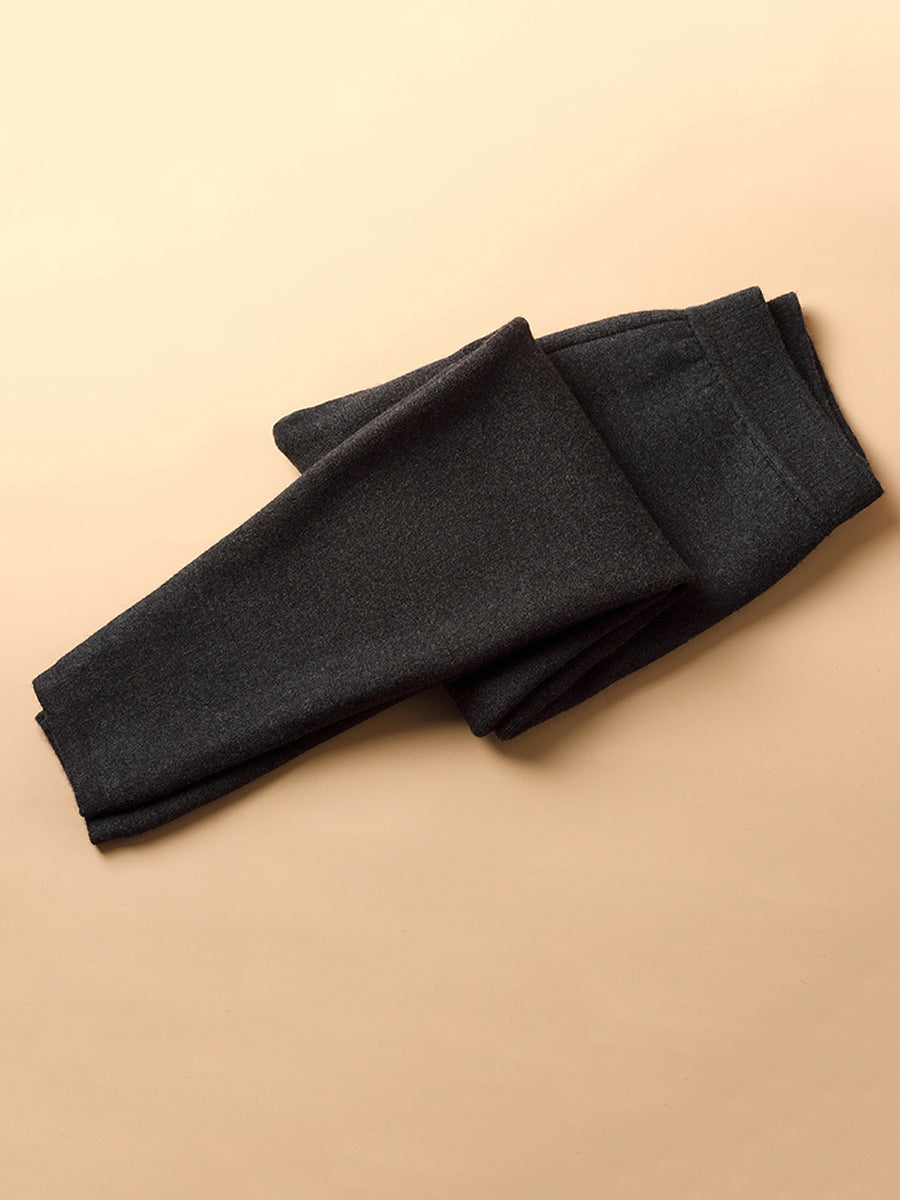 Leggings invernali caldi in lana foderati in pile di colore puro