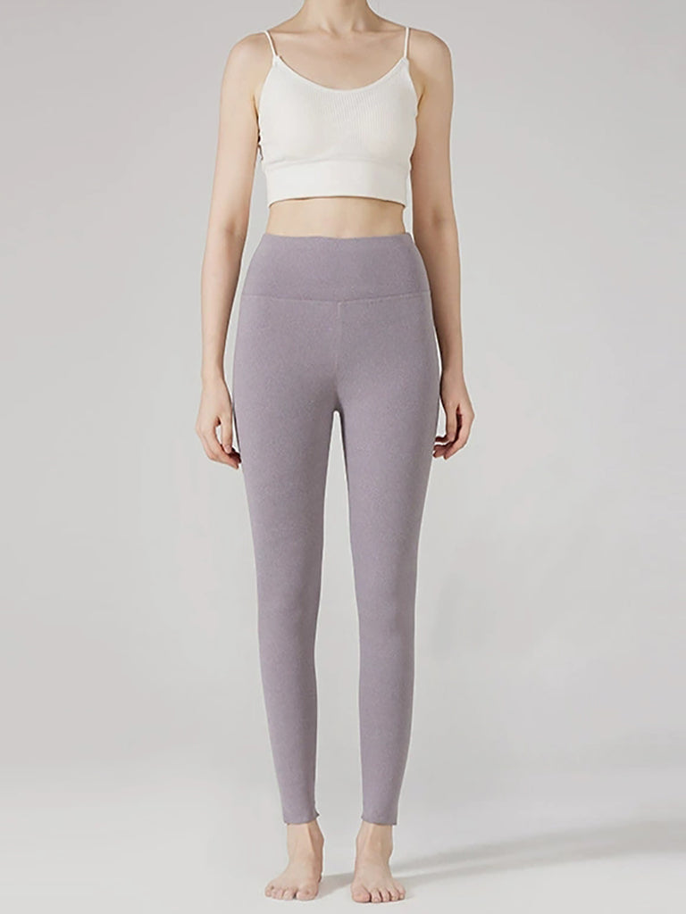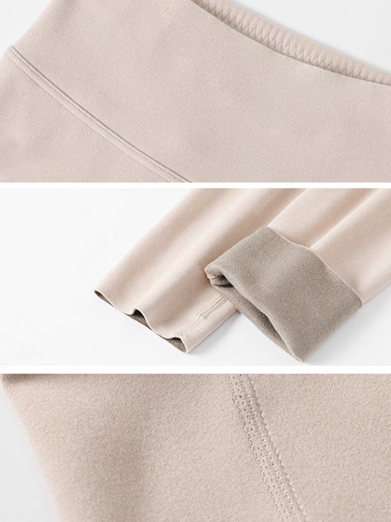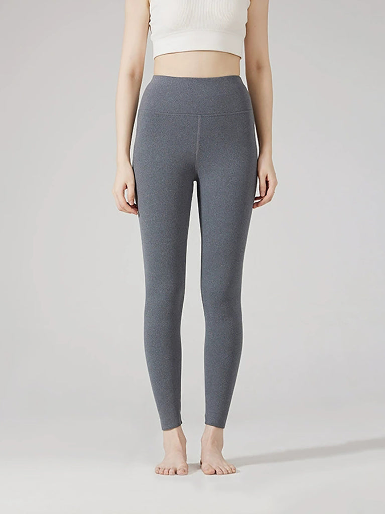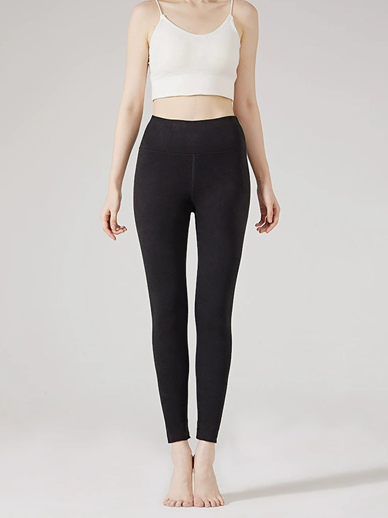 Leggings invernali caldi da donna, a vita alta, di colore puro