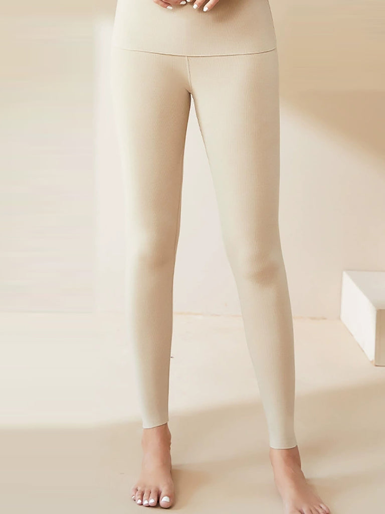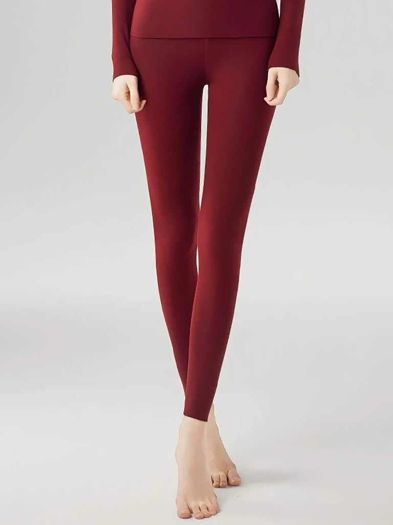 Leggings invernali caldi da donna, a vita alta, di colore puro