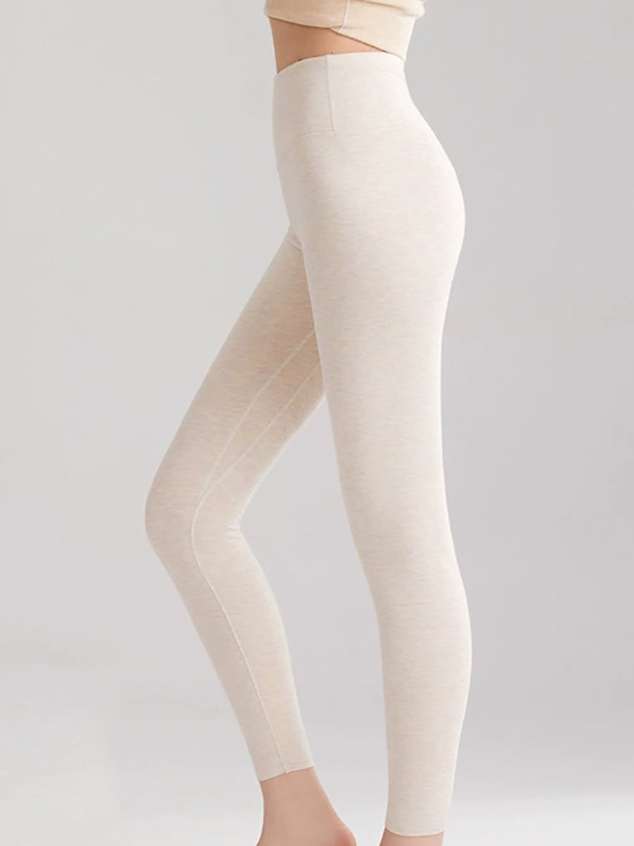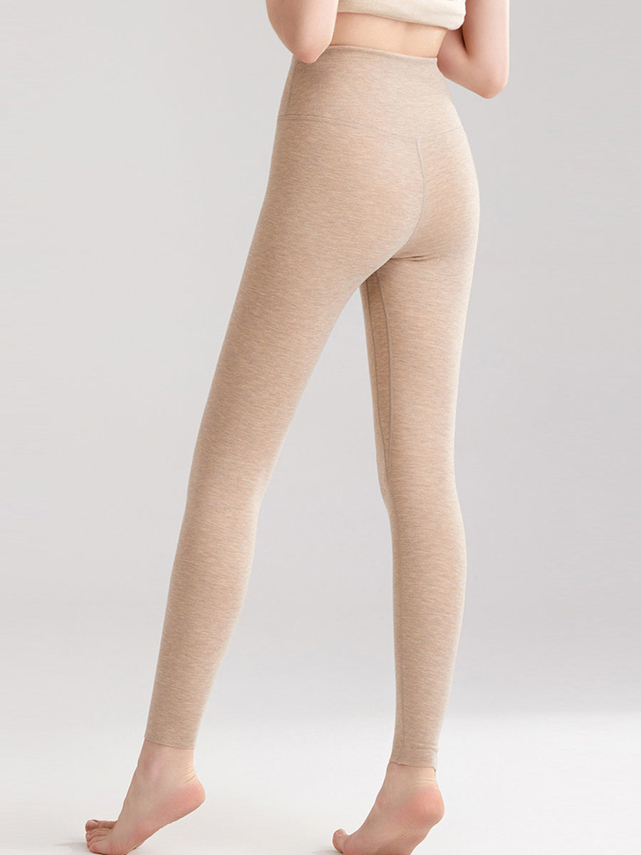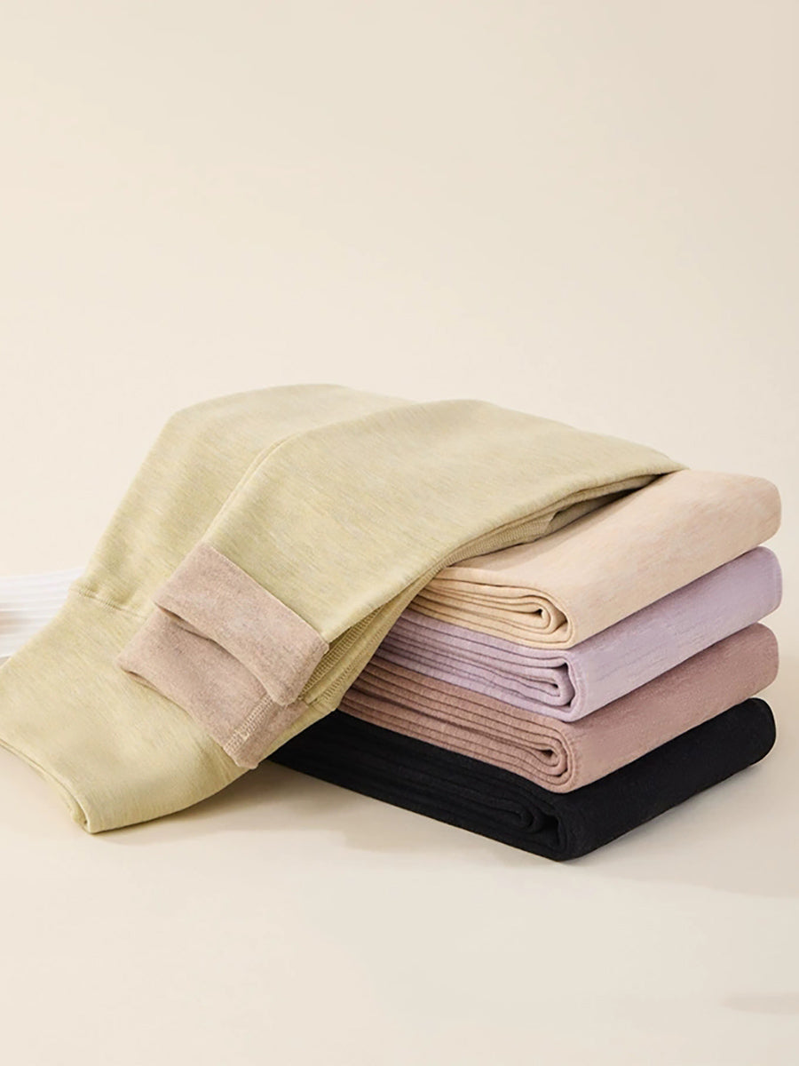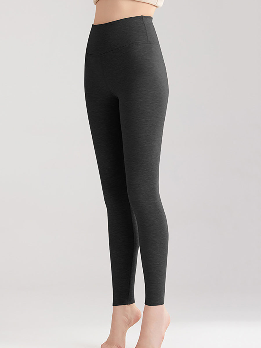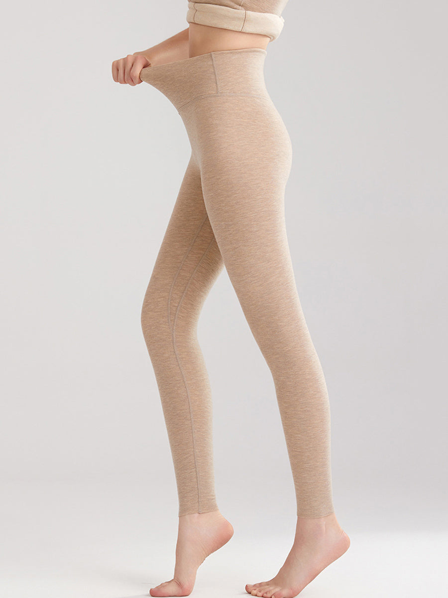 Leggings invernali caldi da donna, a vita alta, di colore puro