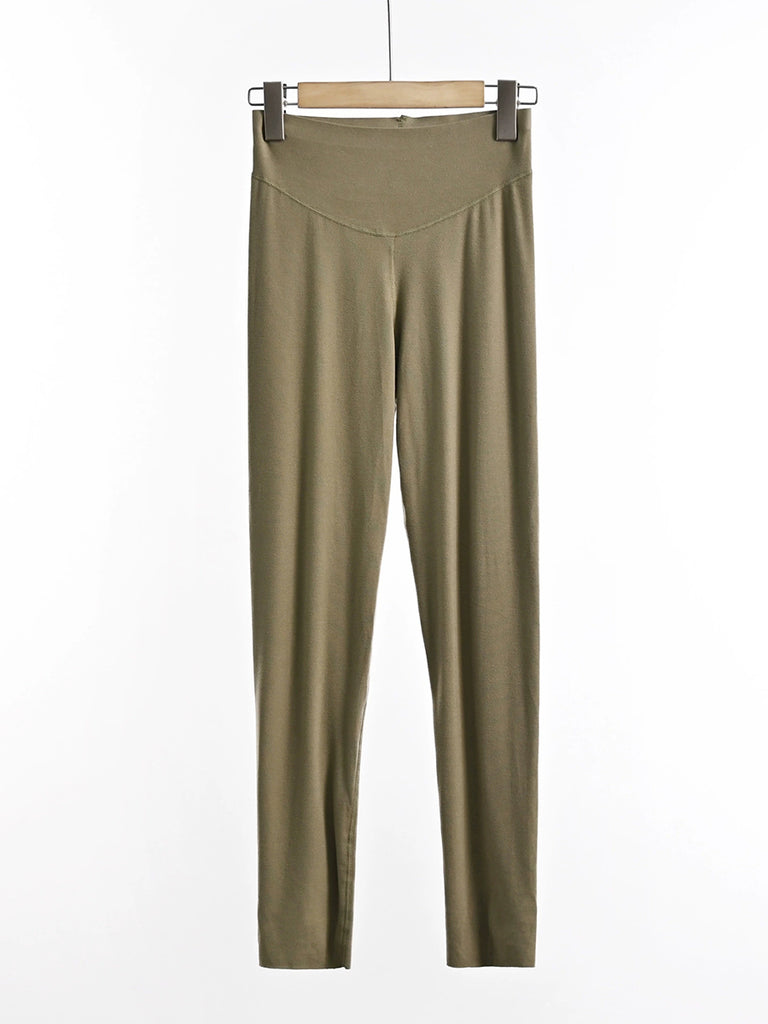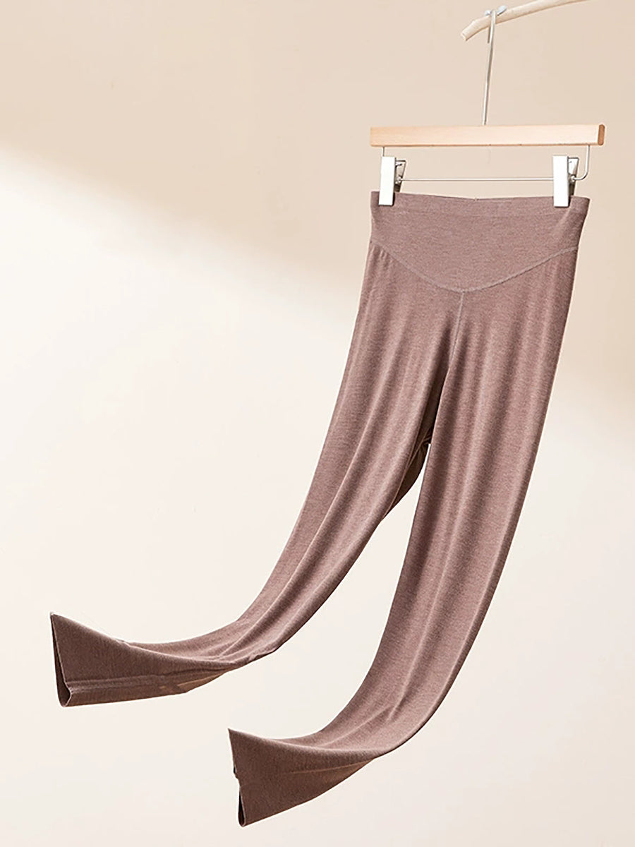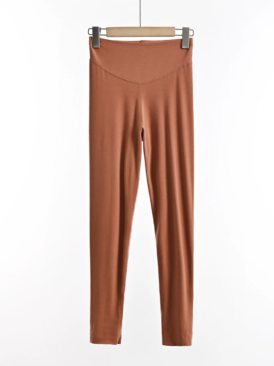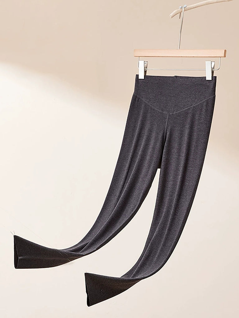 Leggings invernali caldi da donna, a vita alta, di colore puro