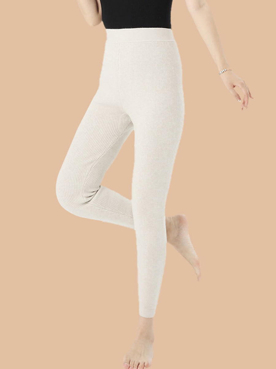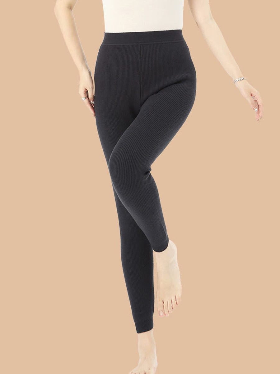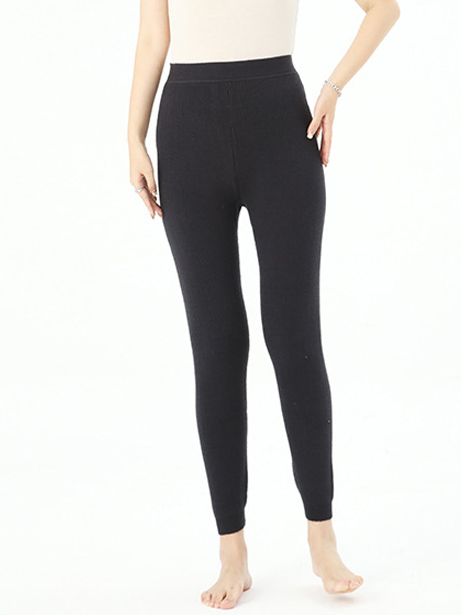 Leggings invernali caldi da donna, a vita alta, di colore puro