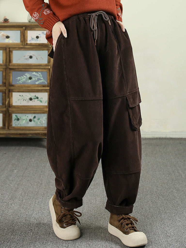 Pantaloni harem da donna vintage in puro colore con fodera in pile