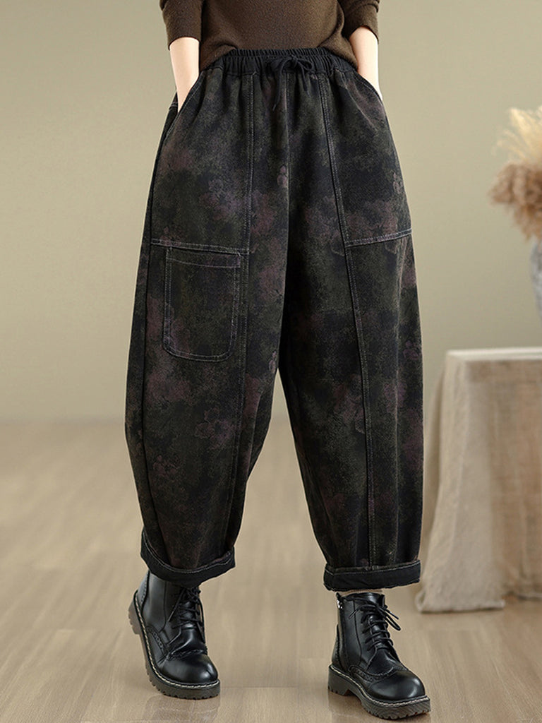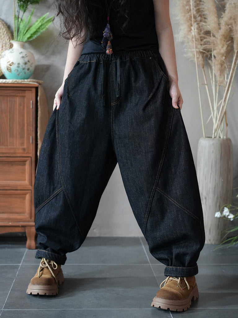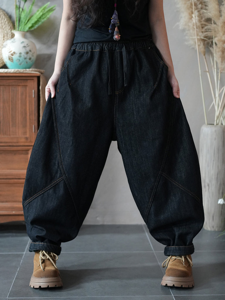 Pantaloni harem in denim vintage invernali da donna, di colore puro