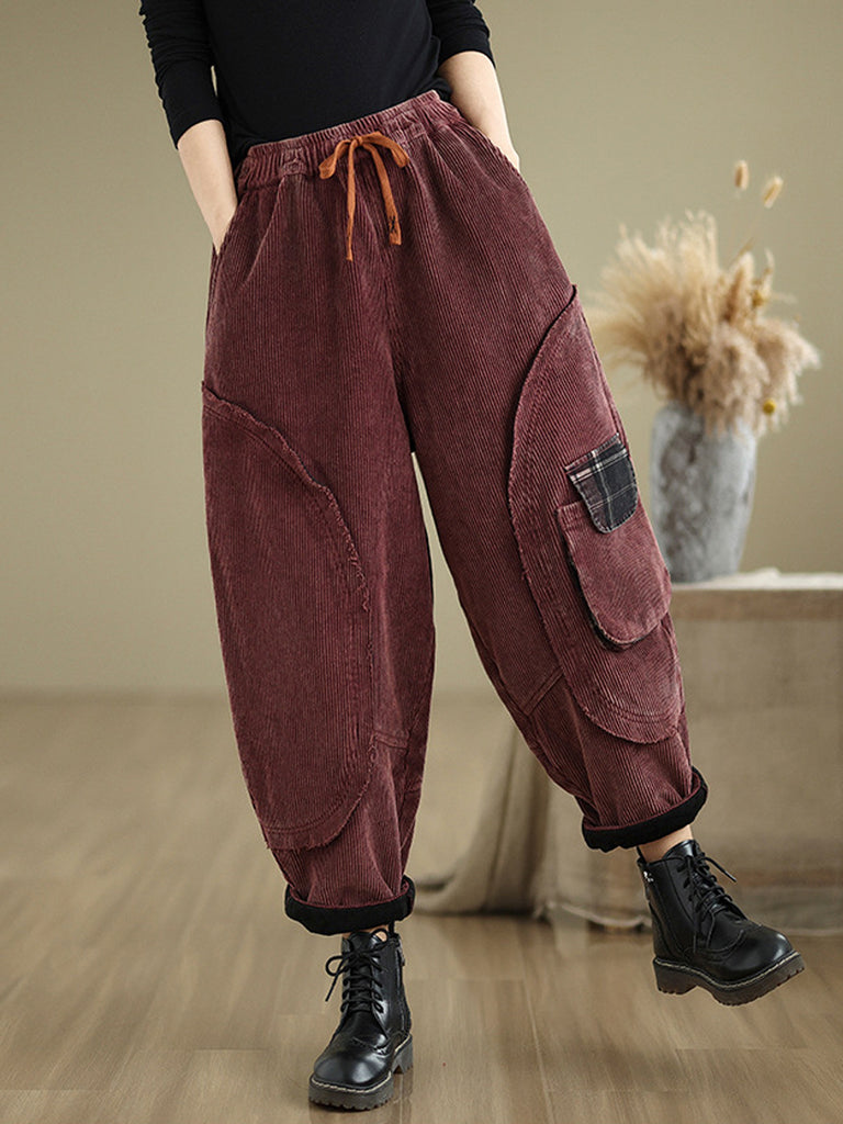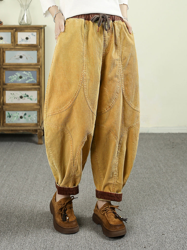 Pantaloni harem in velluto a coste color puro retrò autunnali da donna