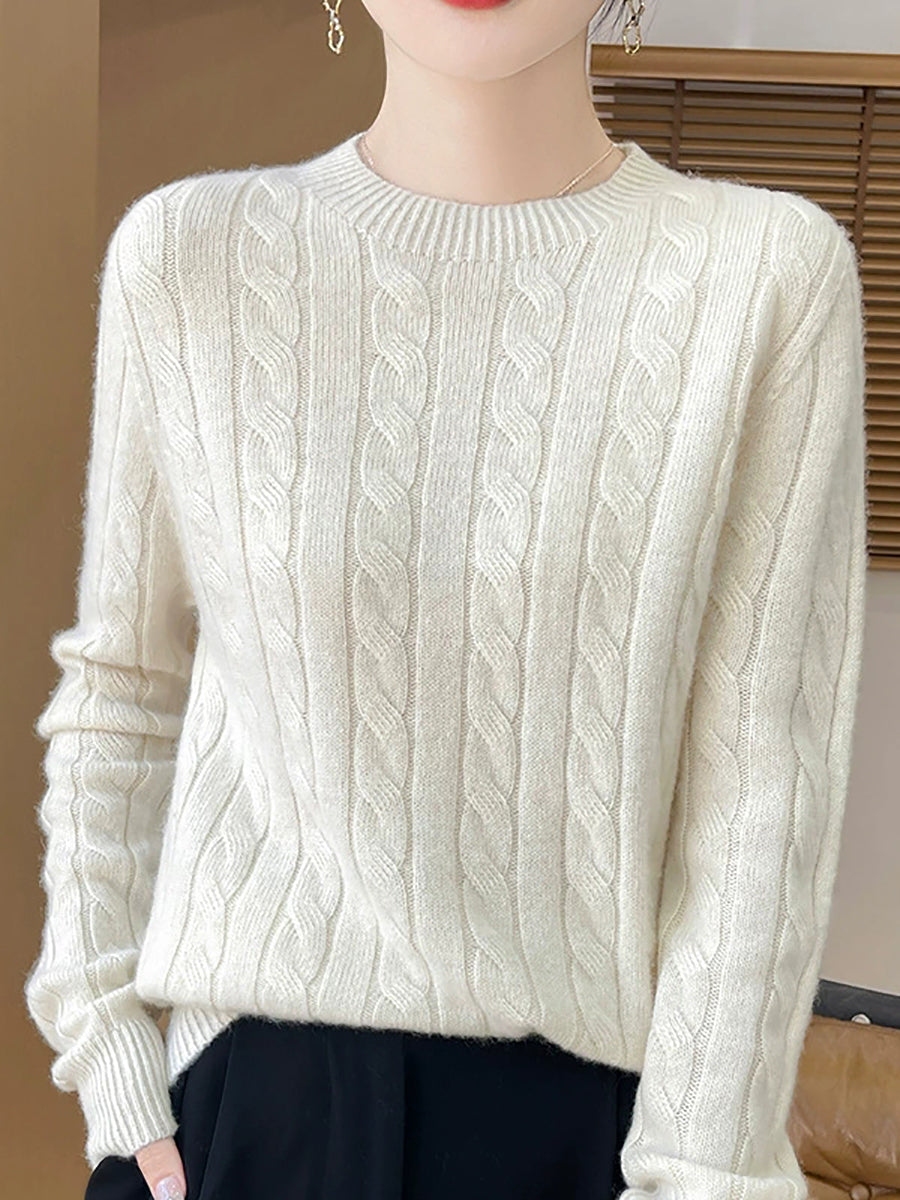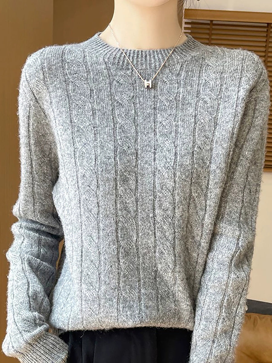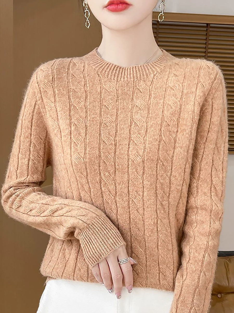 Maglione casual primaverile da donna con scollo rotondo lavorato a maglia a trecce